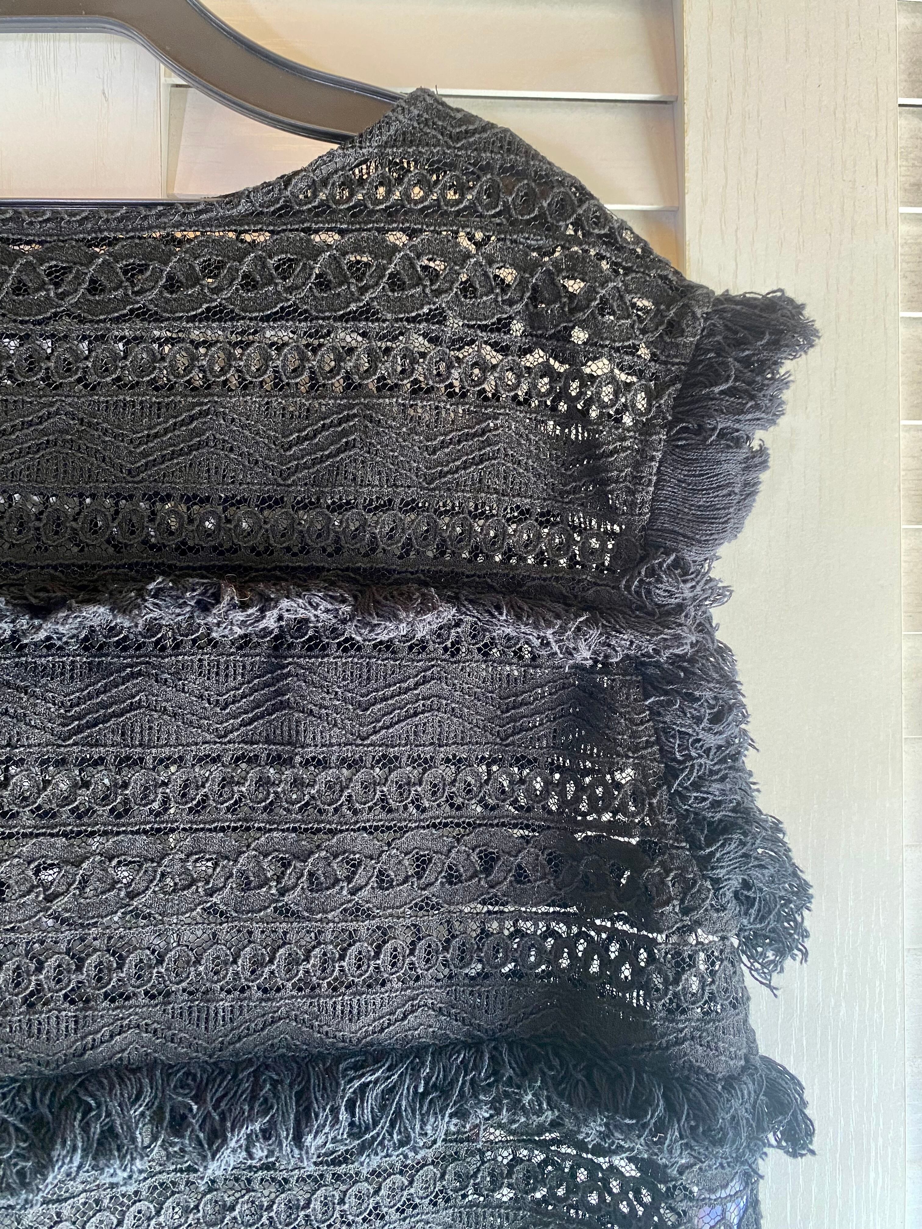 #30 Mila Owen ケミカルレース&フリンジボーダー ノースリーブブラウス ブラック