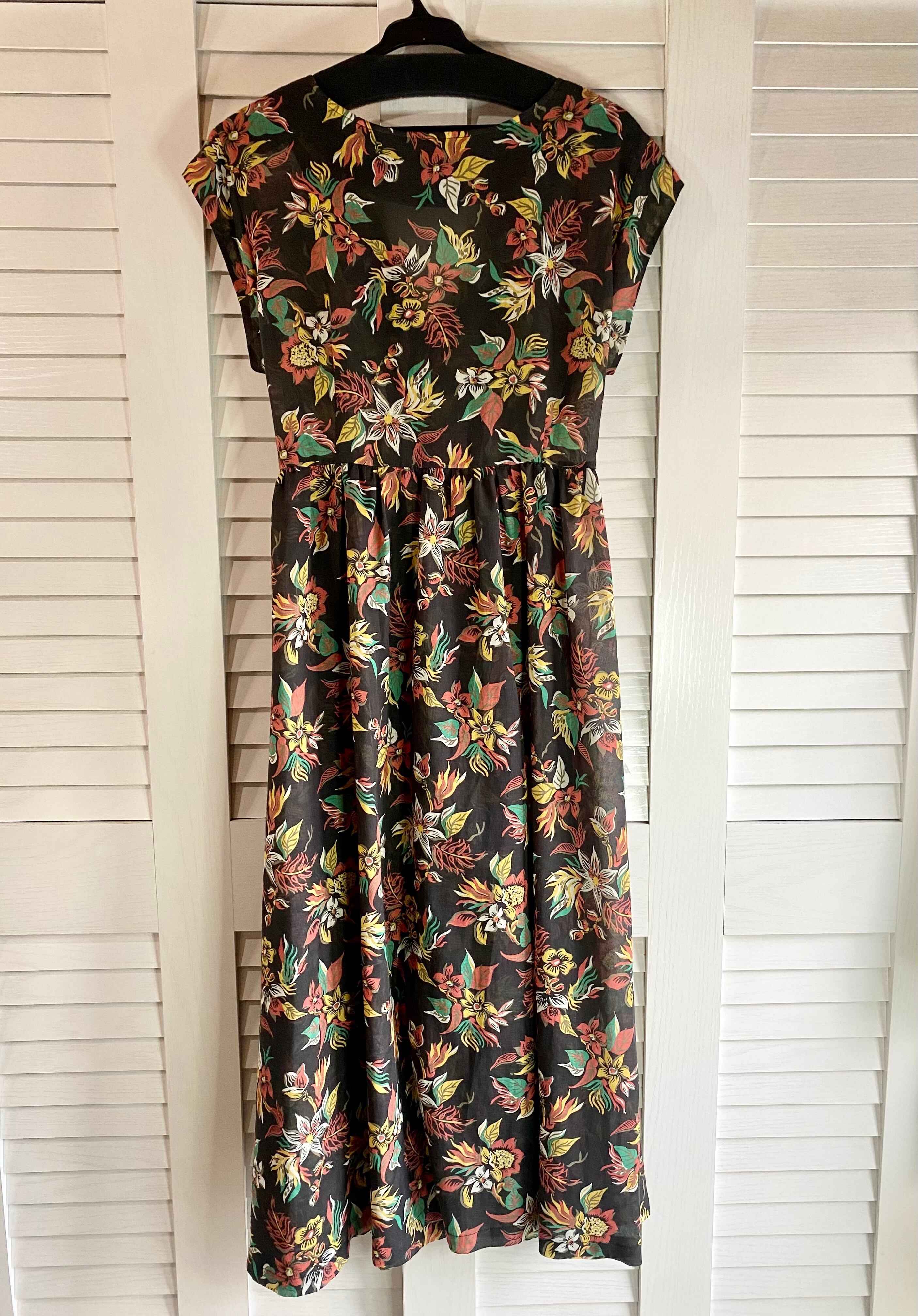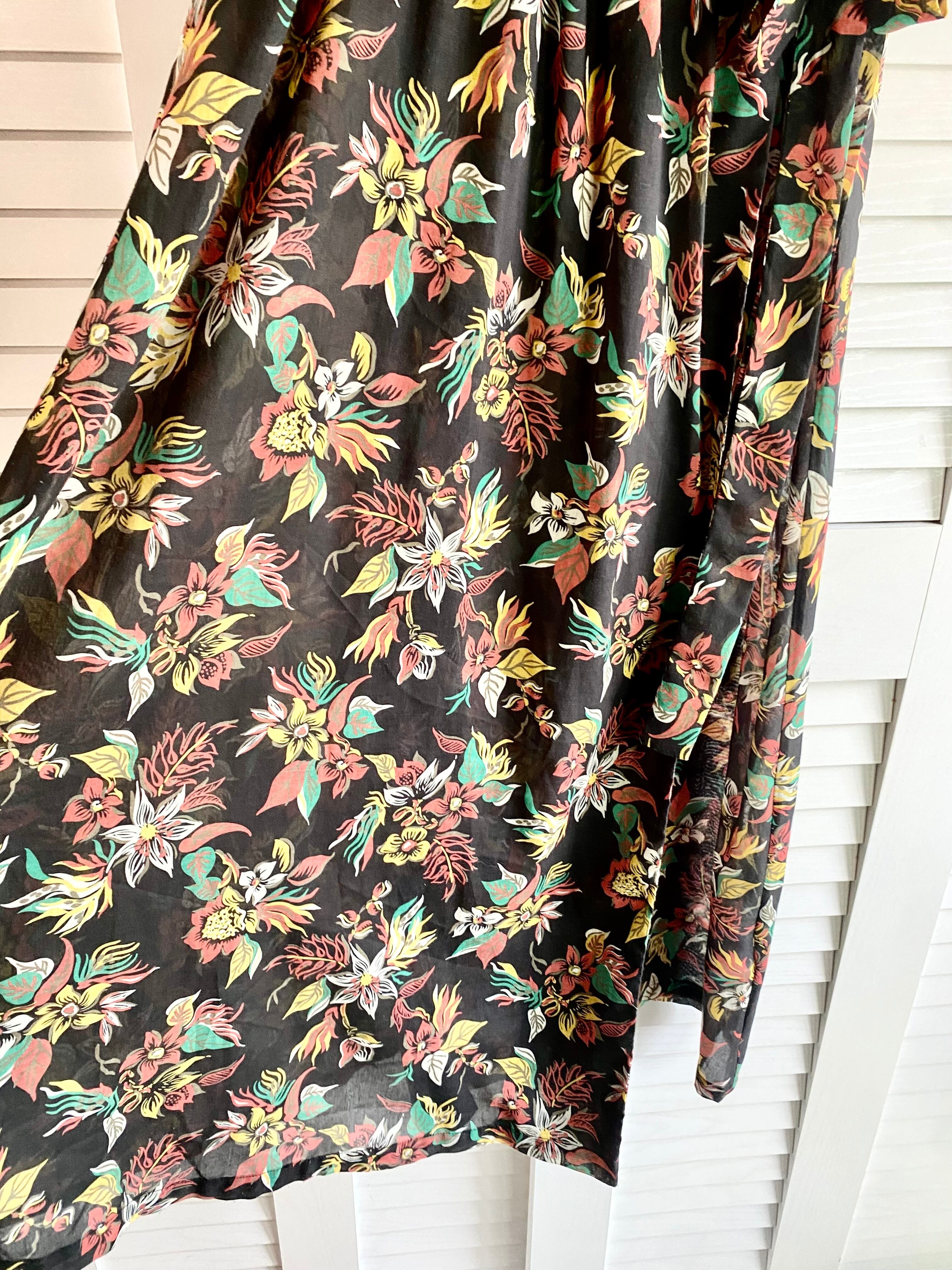 #31 FREAK'S STORE ヴィンテージアロハ柄 フレンチスリーブ カシュクールロングワンピ スミクロ