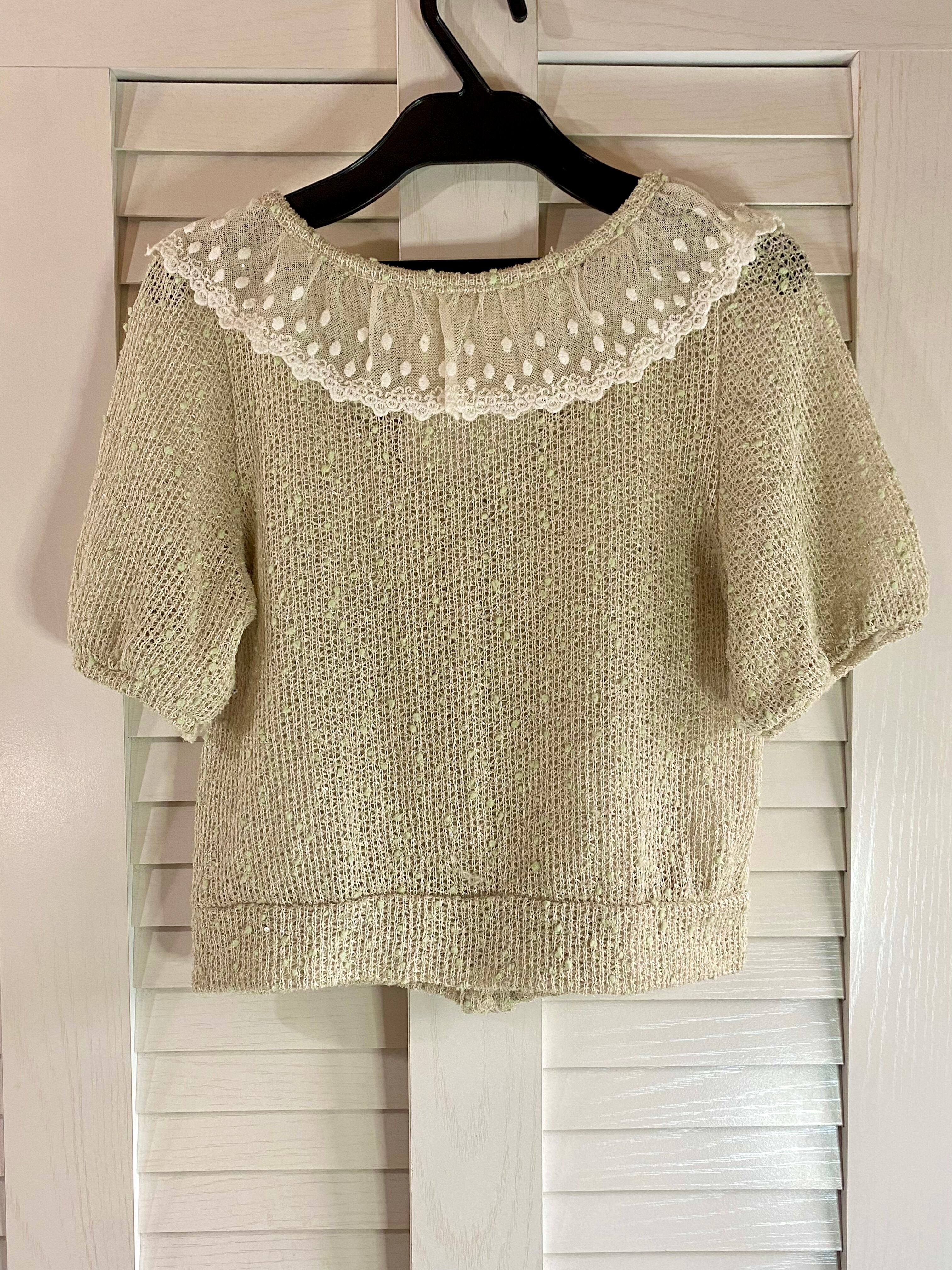 #31 Symphonique Neon ドット刺繍レースカラー ポップコーンヤーンボレロ ミントグリーン