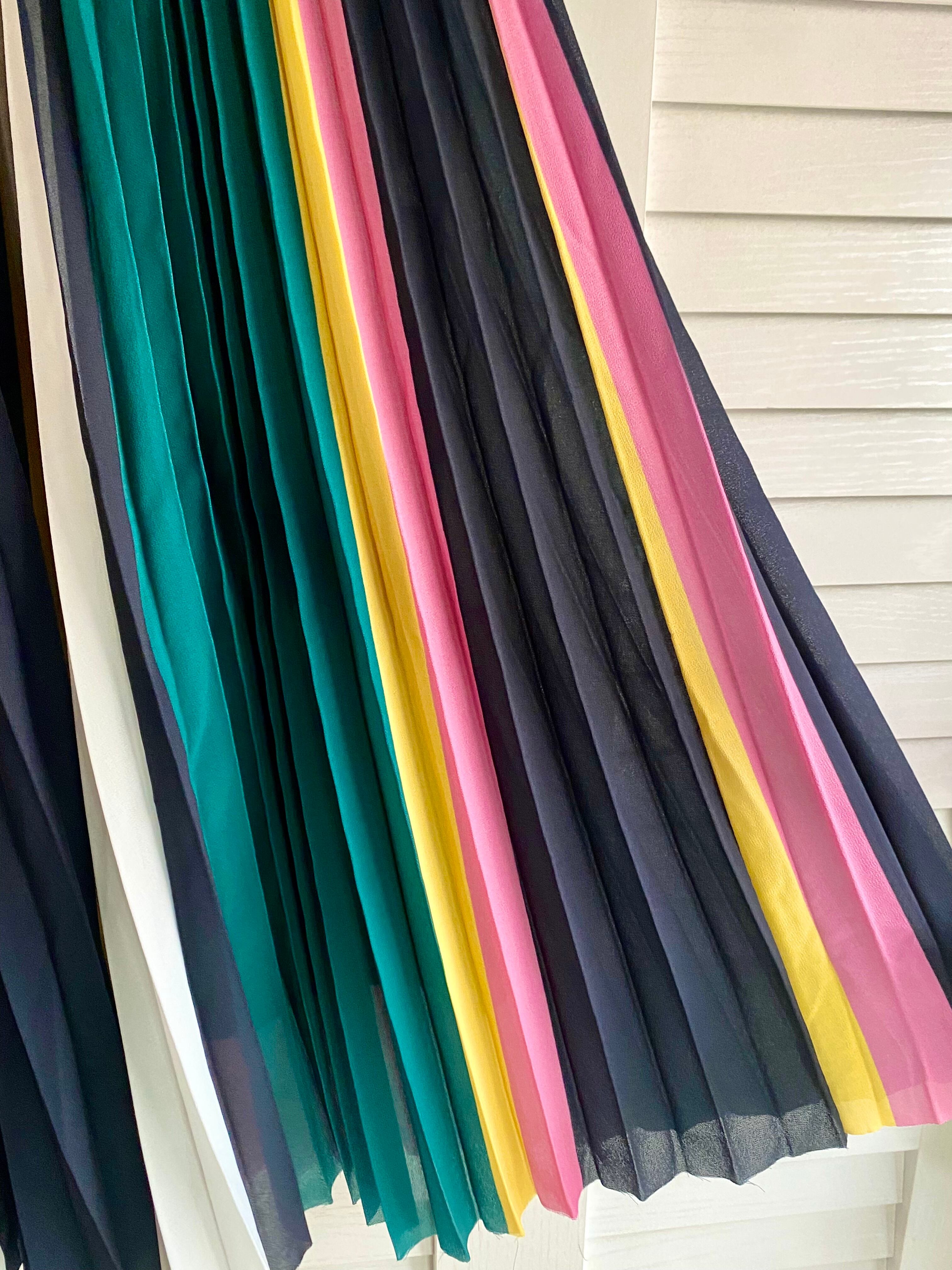#31 ZARA マルチストライプ シフォンジョーゼット プリーツスカート マルチカラー