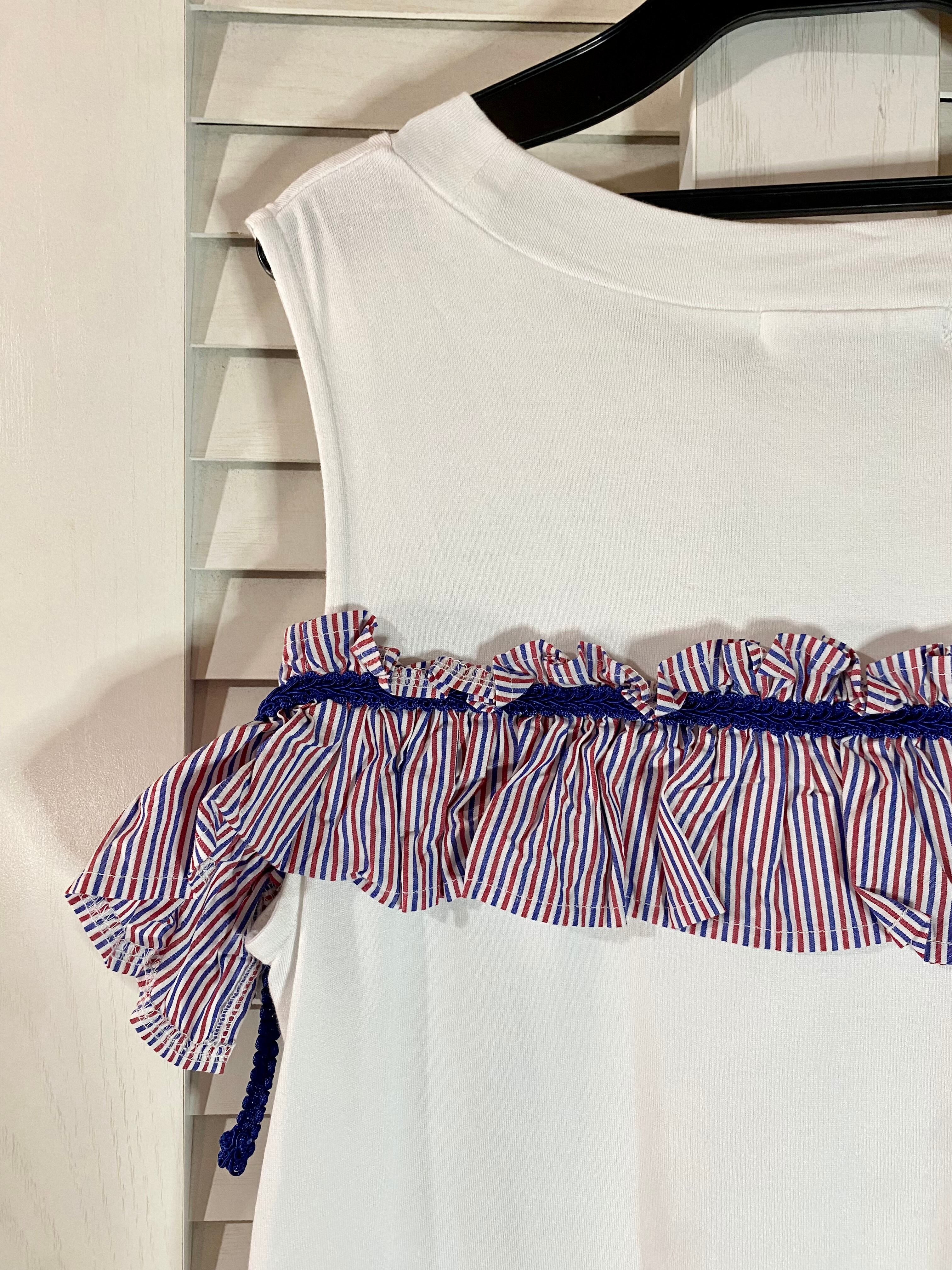 #32 RODEO CROWNS トリコロールフリル ノースリーブカットソー オフホワイト