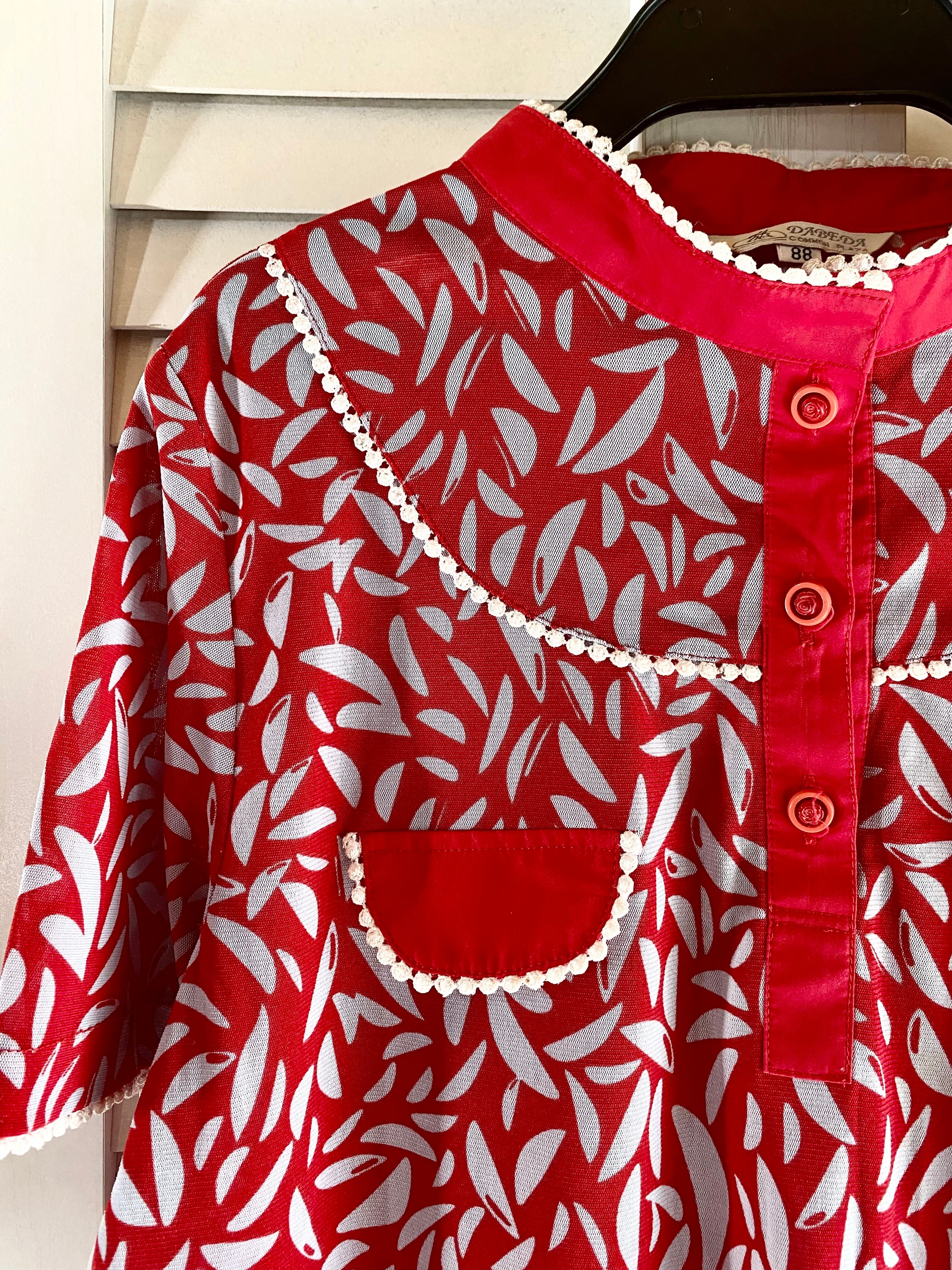 #32【国産古着】70Sヴィンテージ 総柄メッシュ カントリーガールブラウス レッド | お洋服屋さん 『GOKKO』