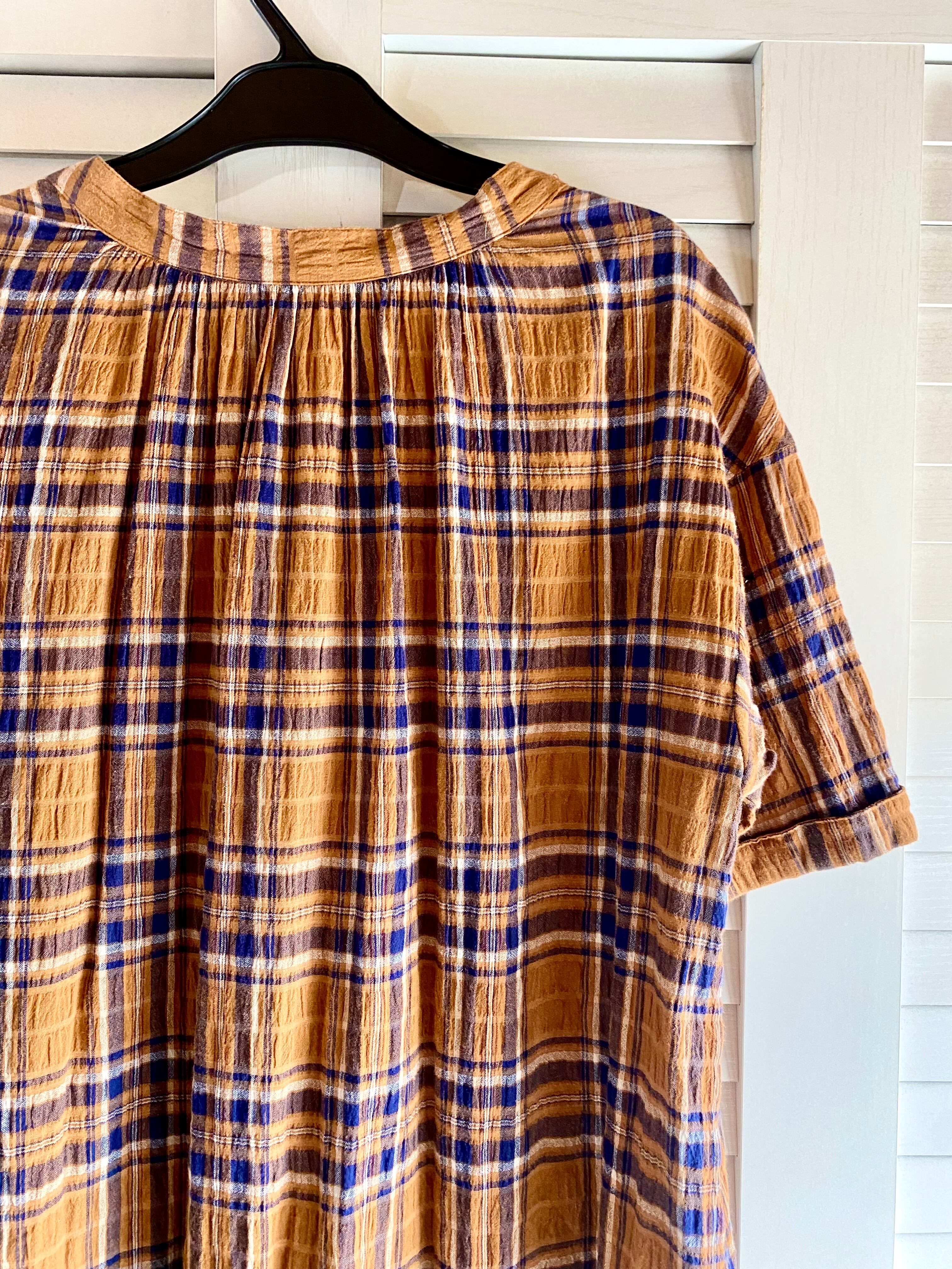 #32 studioCLIP タータンチェック リップル楊柳ストレッチコットン オーバーサイズワンピ キャメル×ネイビー