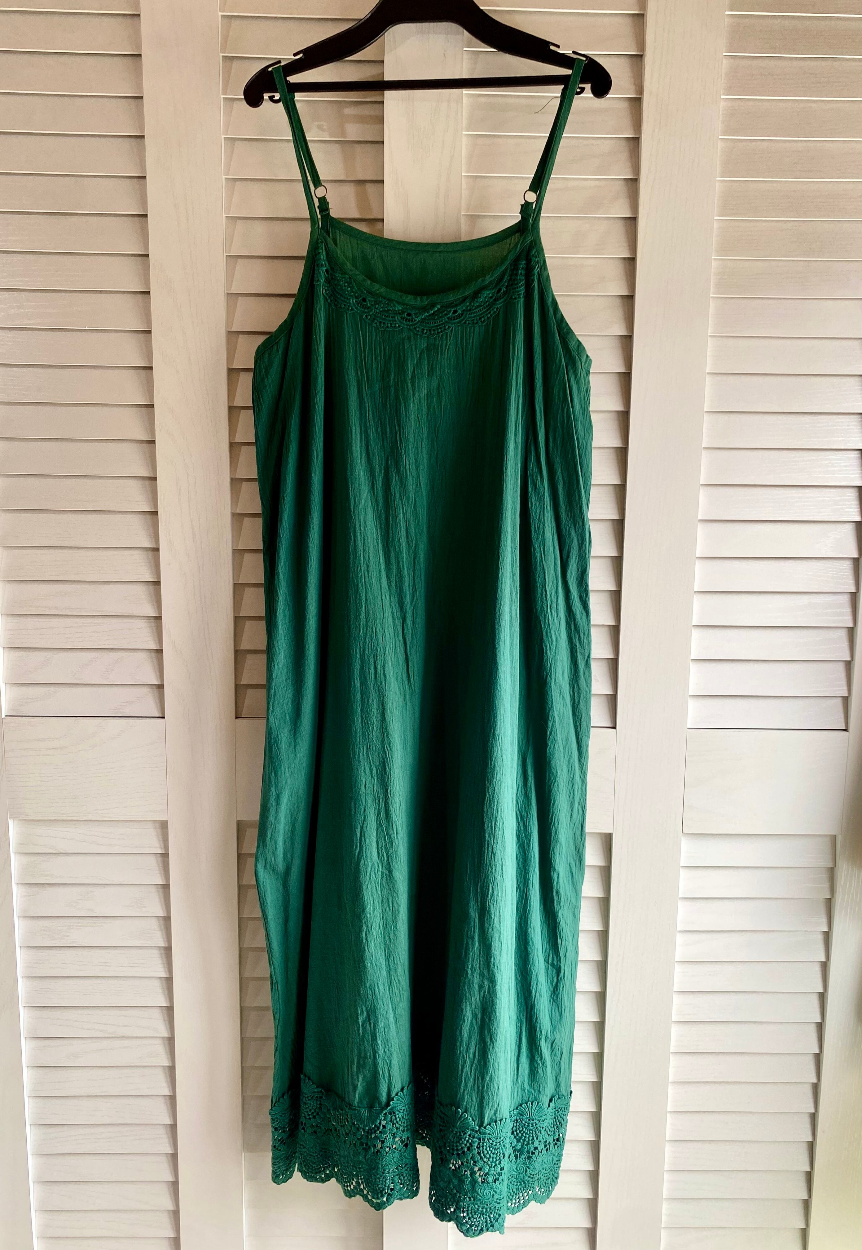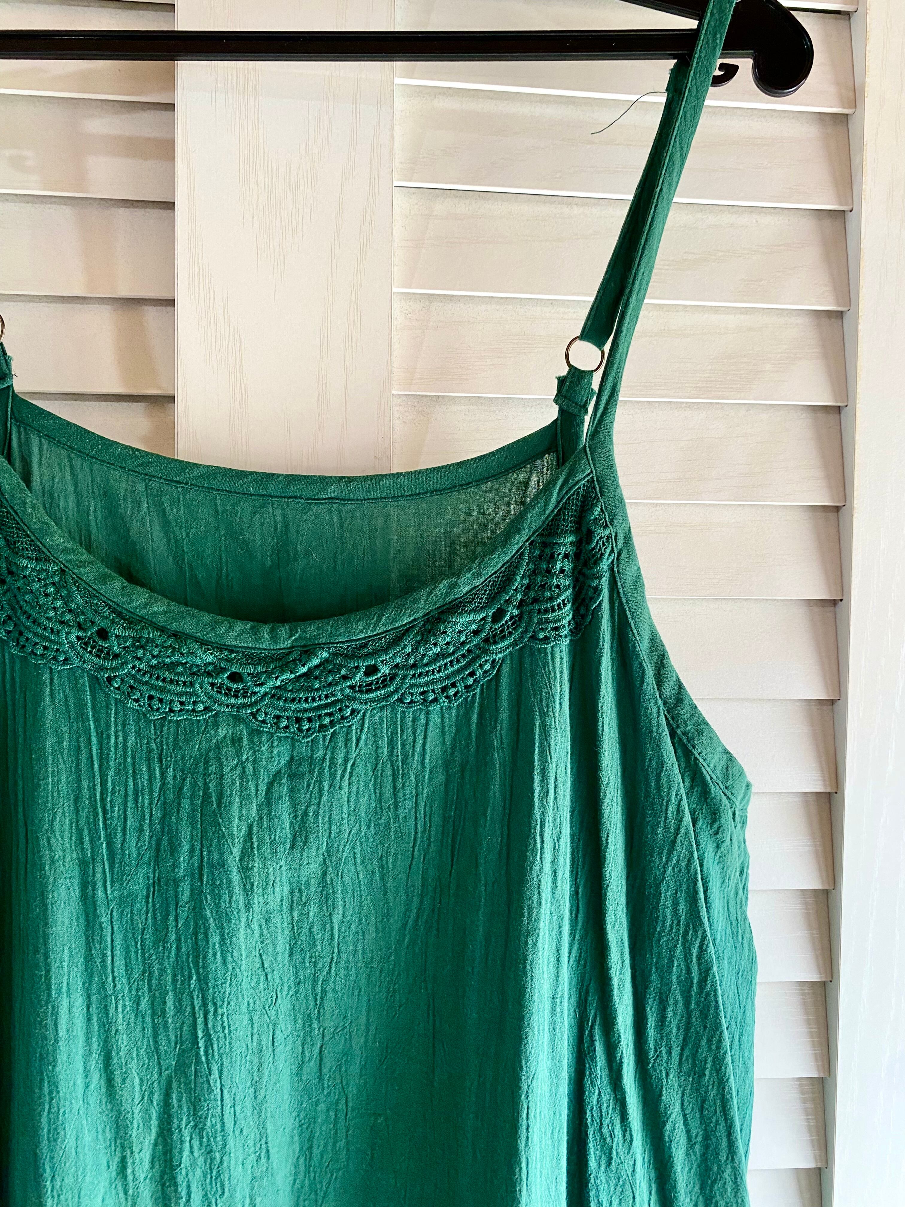 #32 n'Or LABEL レース使い シワ加工コットンキャミソールワンピ モスグリーン