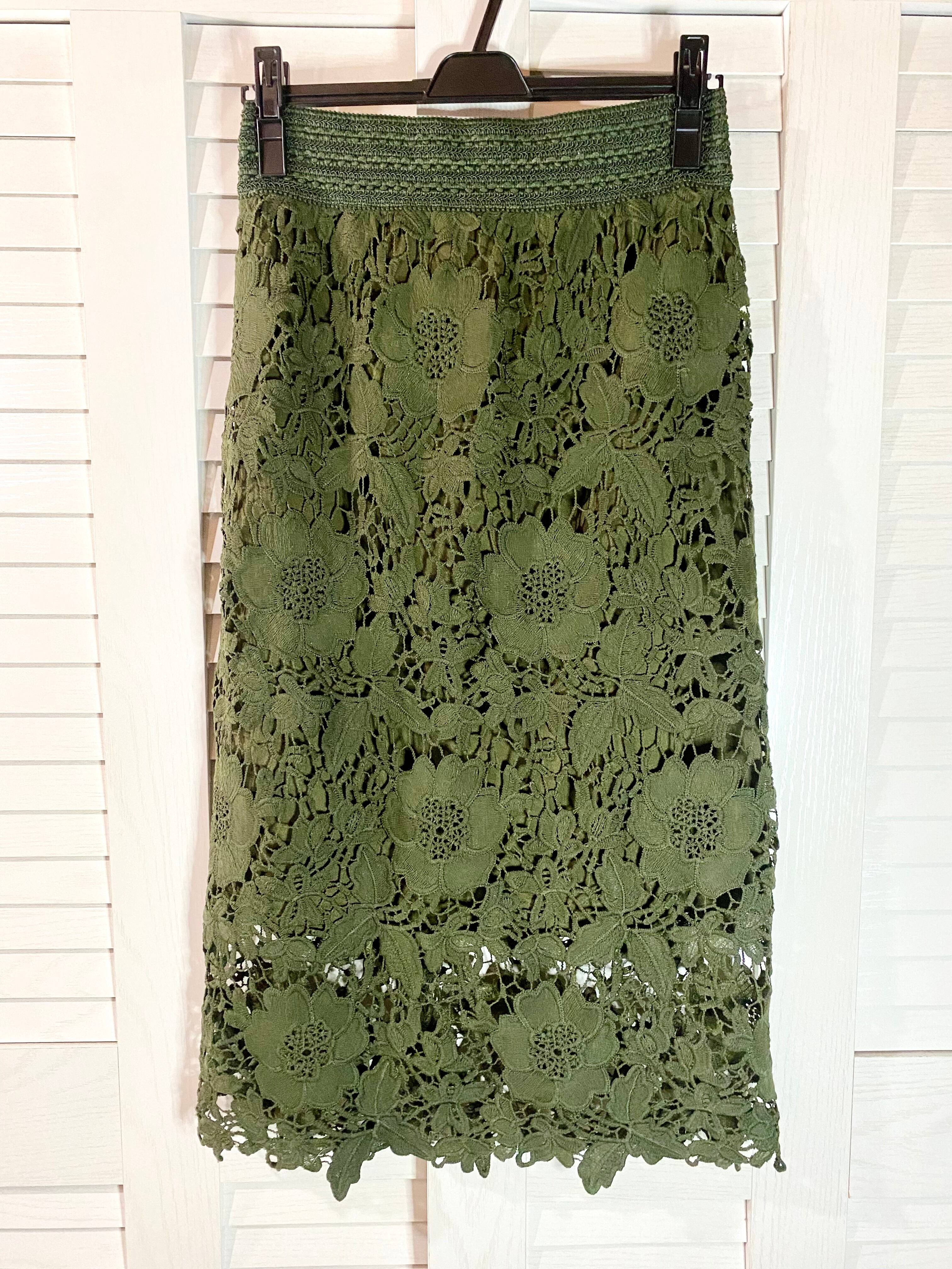 #32 ANTIQUA BIGフラワーレース ナロースカート カーキ