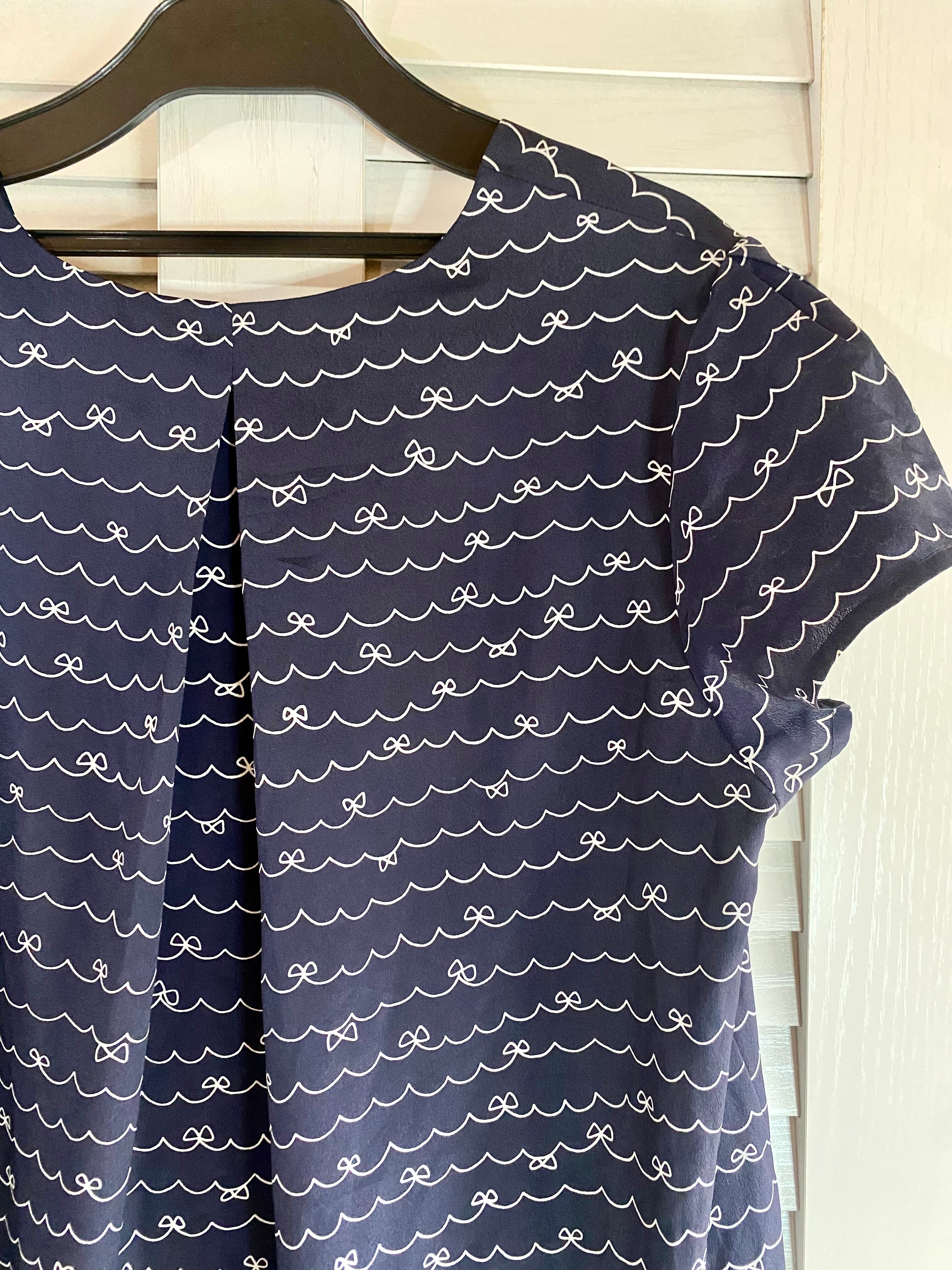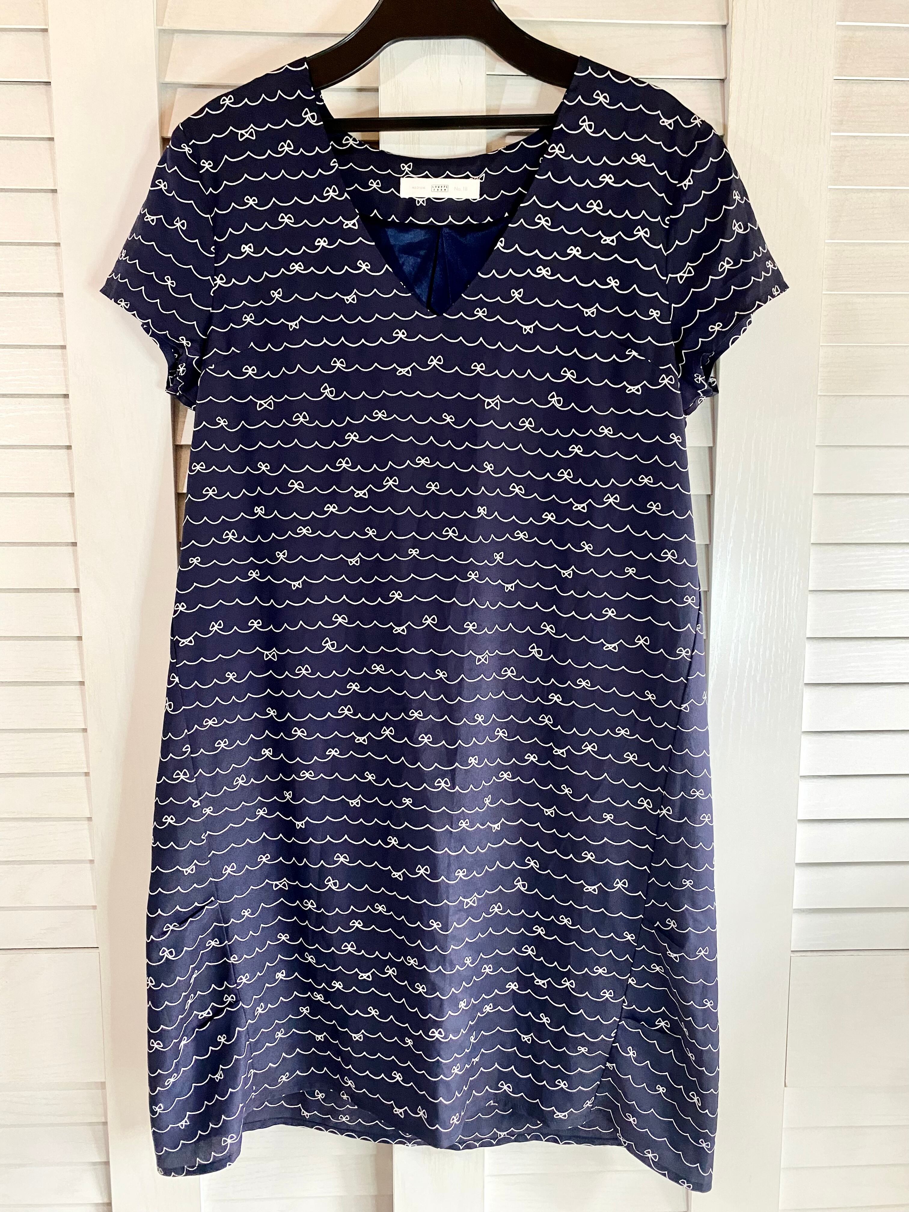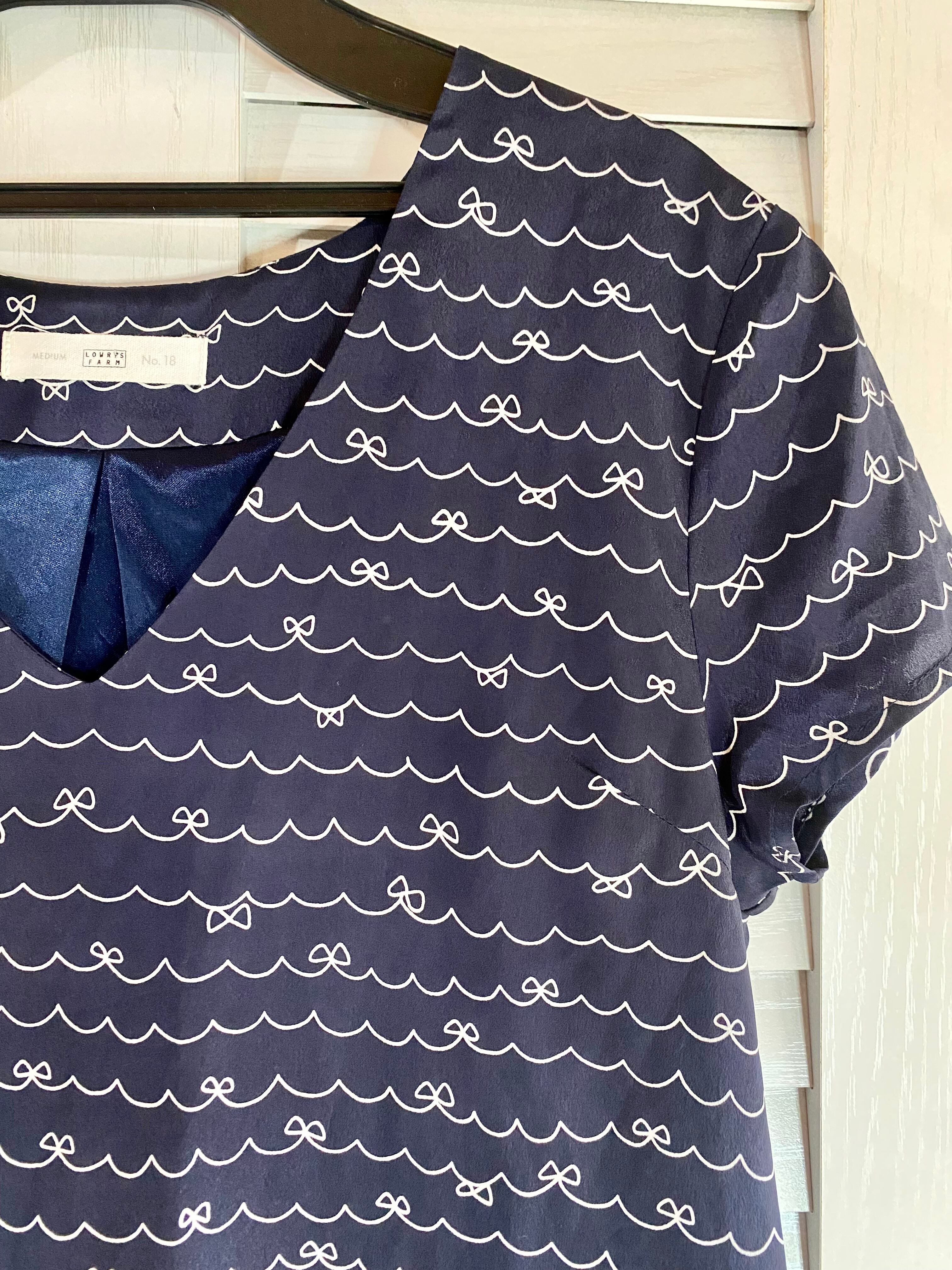 #33 LOWRYS FARM ドローイングレース&リボン ジョーゼットチュニックワンピ ネイビー