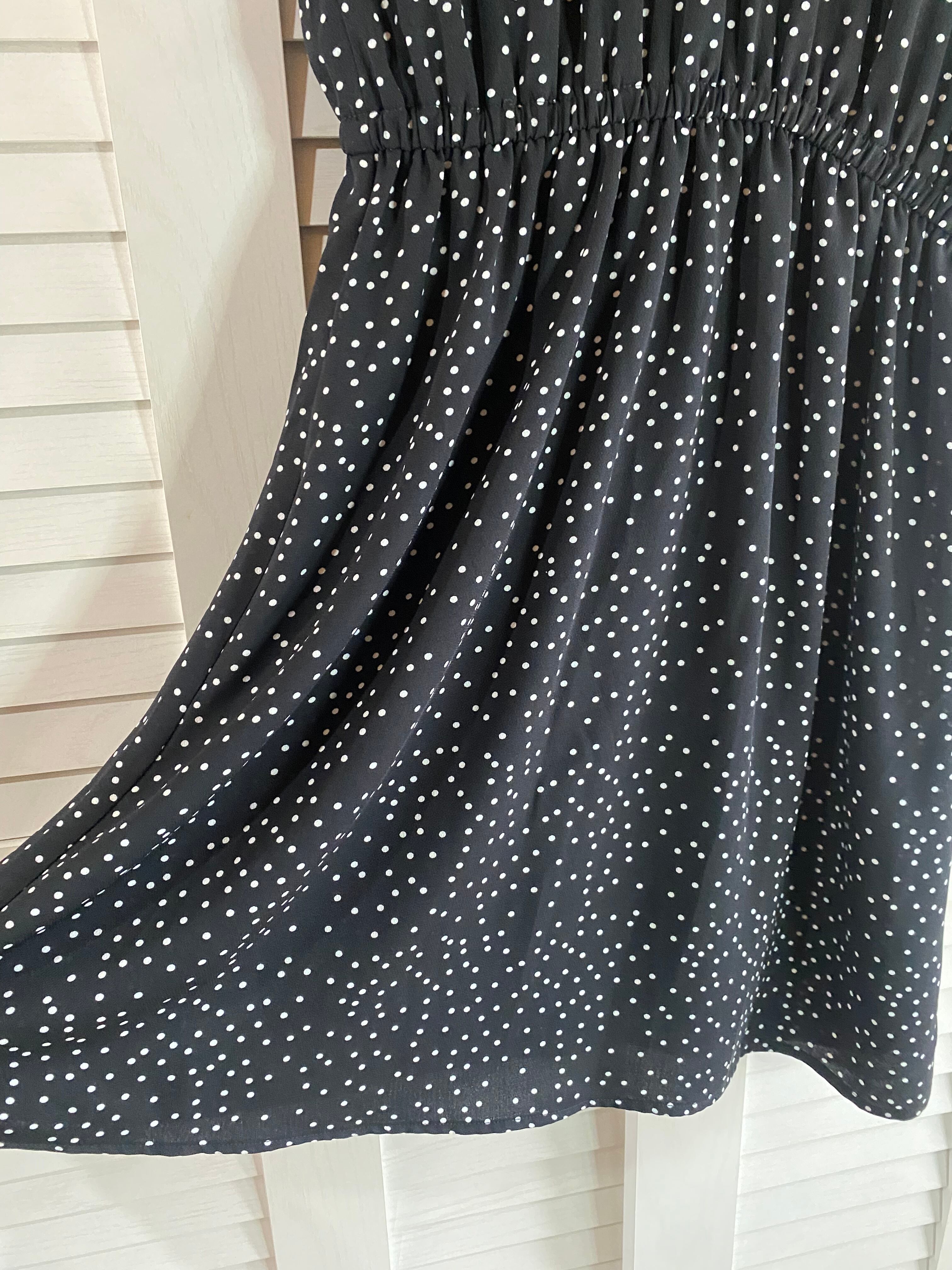 #34 asknowas レトロシャツカラー フレンチスリーブ ドットジョーゼットワンピ ブラック
