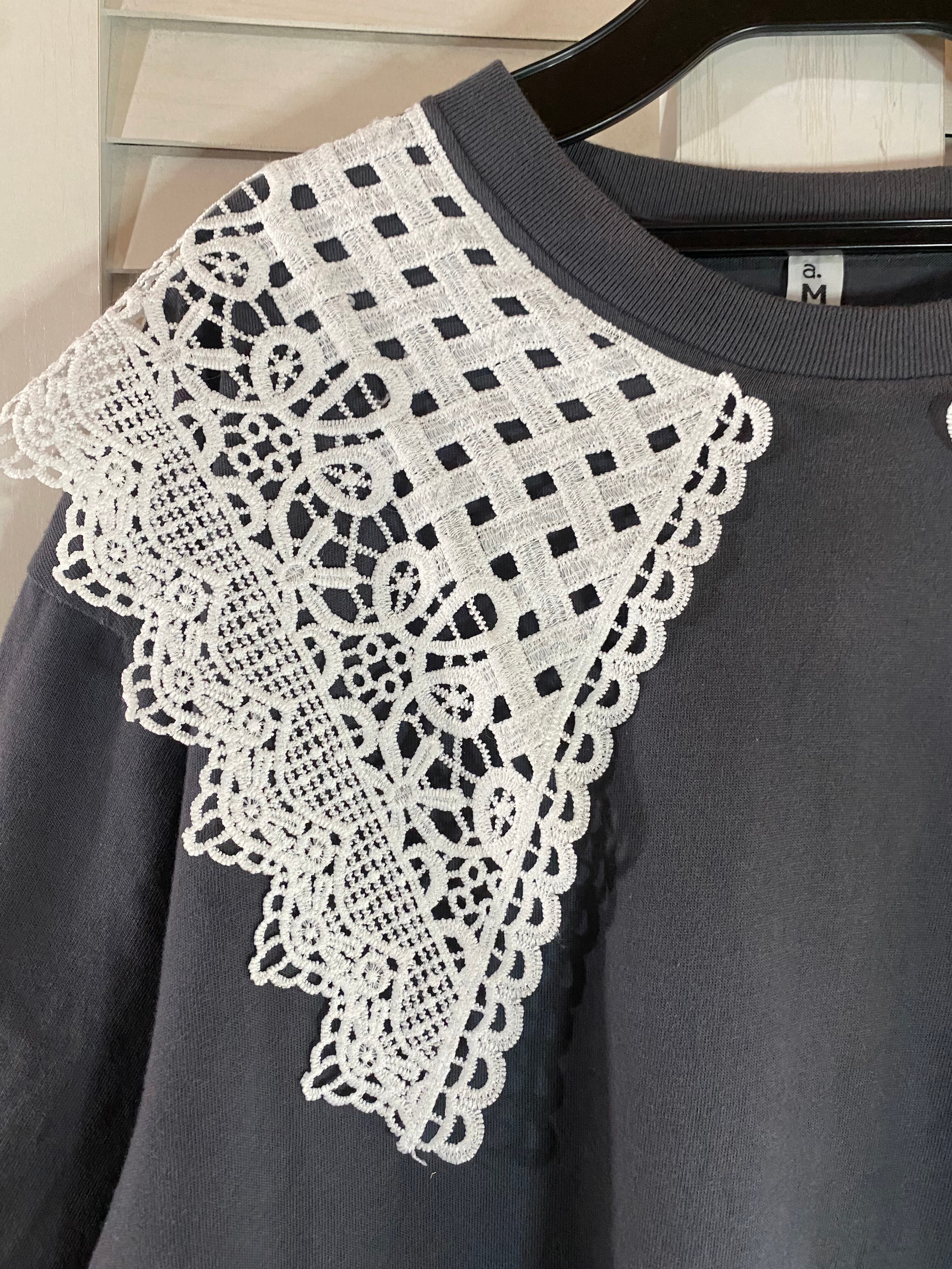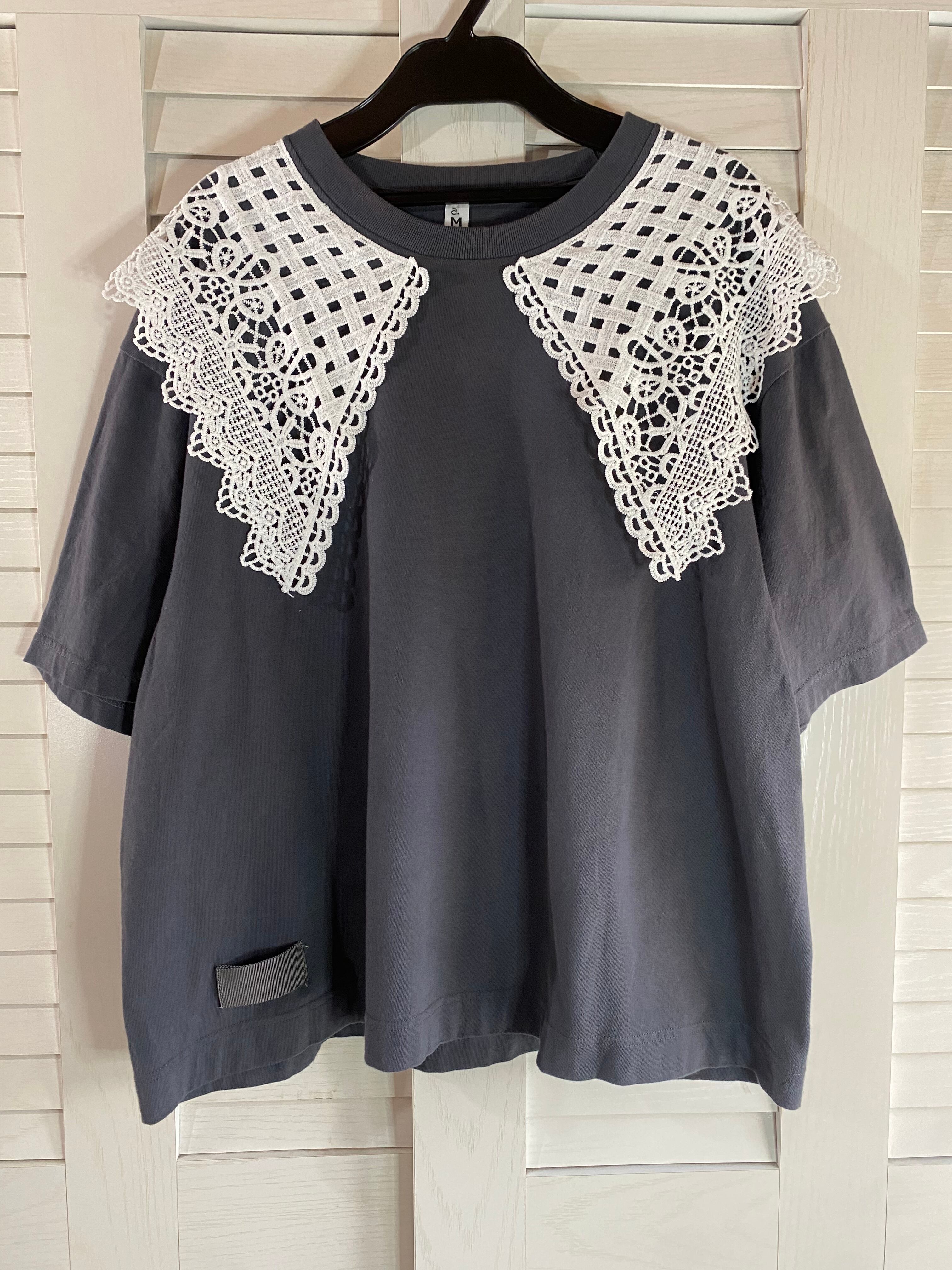 #34 a.M BIGレースカラー オーバーサイズTシャツ チャコールグレー