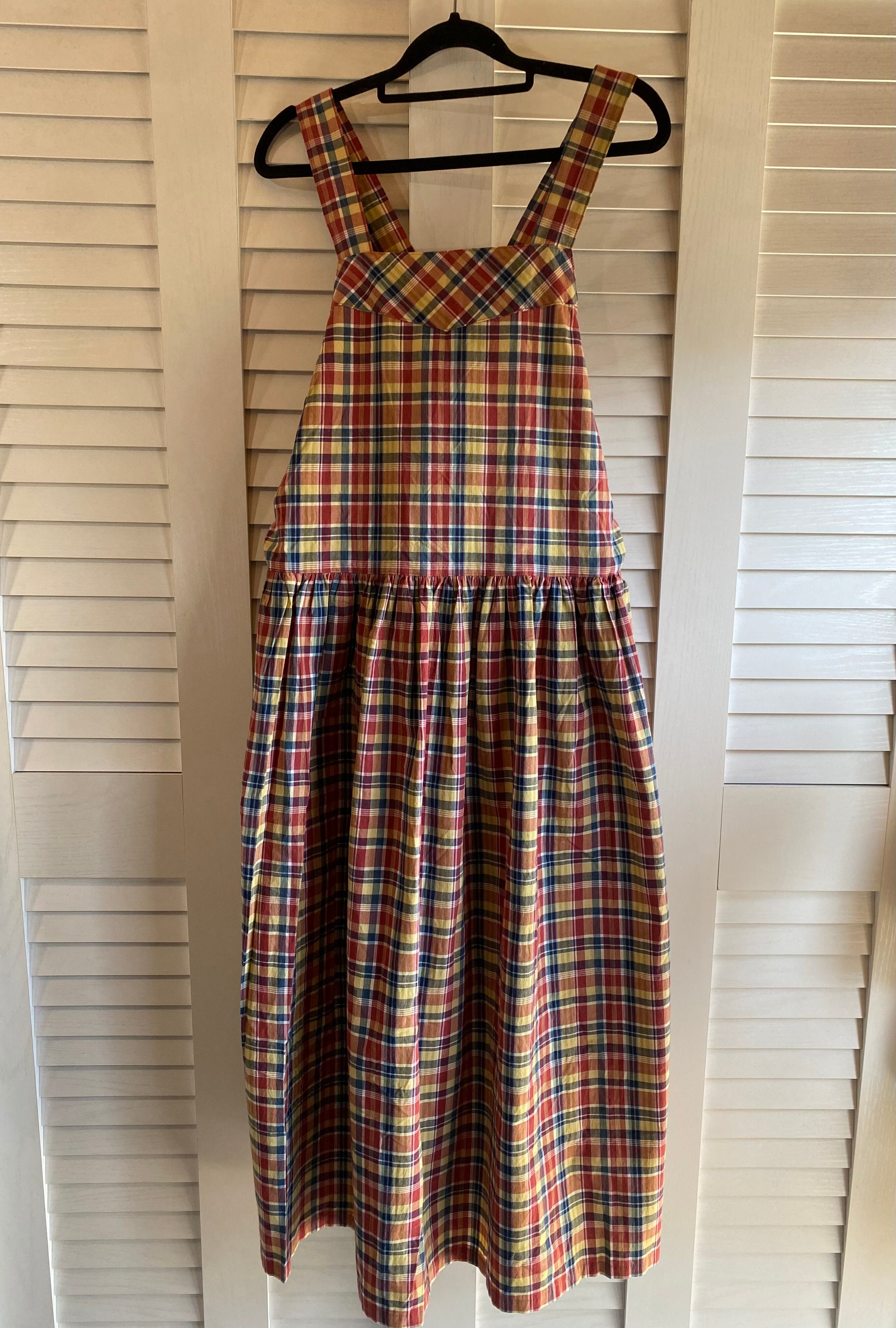 #35 SIM 激レア!80Sデッドストック マドラスチェック エプロンドレス サロペットスカート イエロー