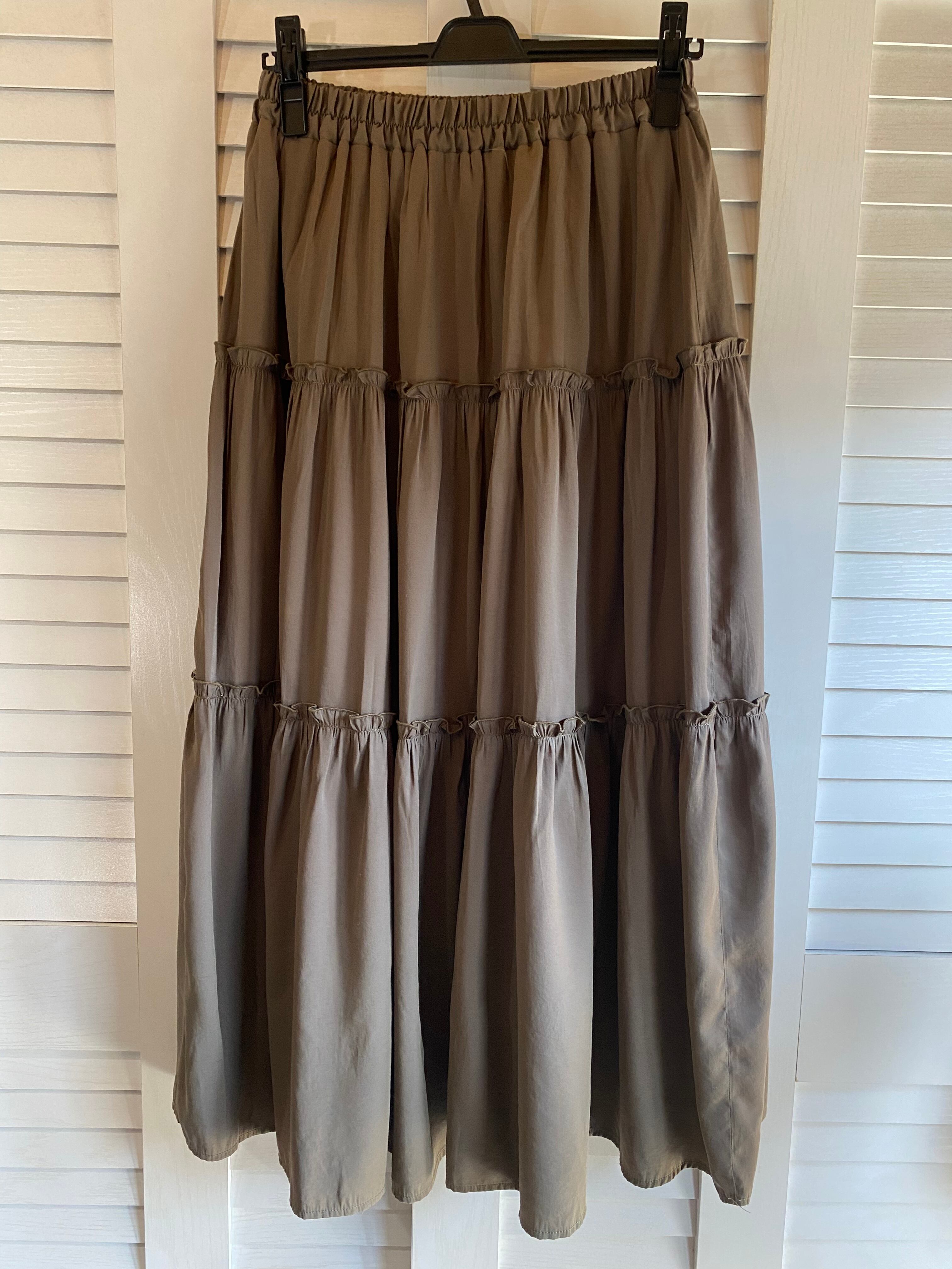 #35 RETORO GIRL バックサテン ボリュームティアードスカート カーキ
