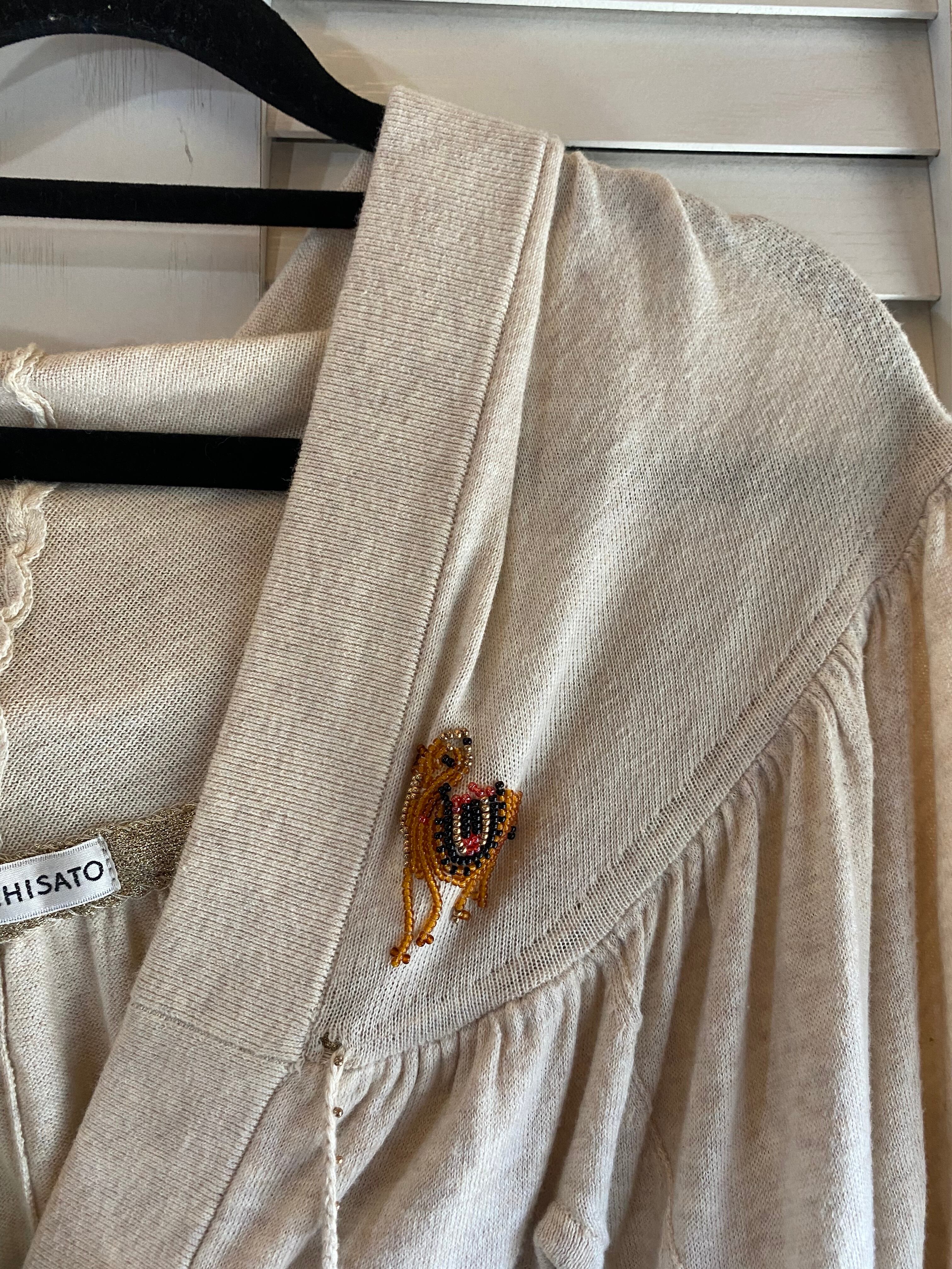 #35 TSUMORI CHISATO ラクダビーズ刺繍 コットンニットソーボレロ ライトベージュ