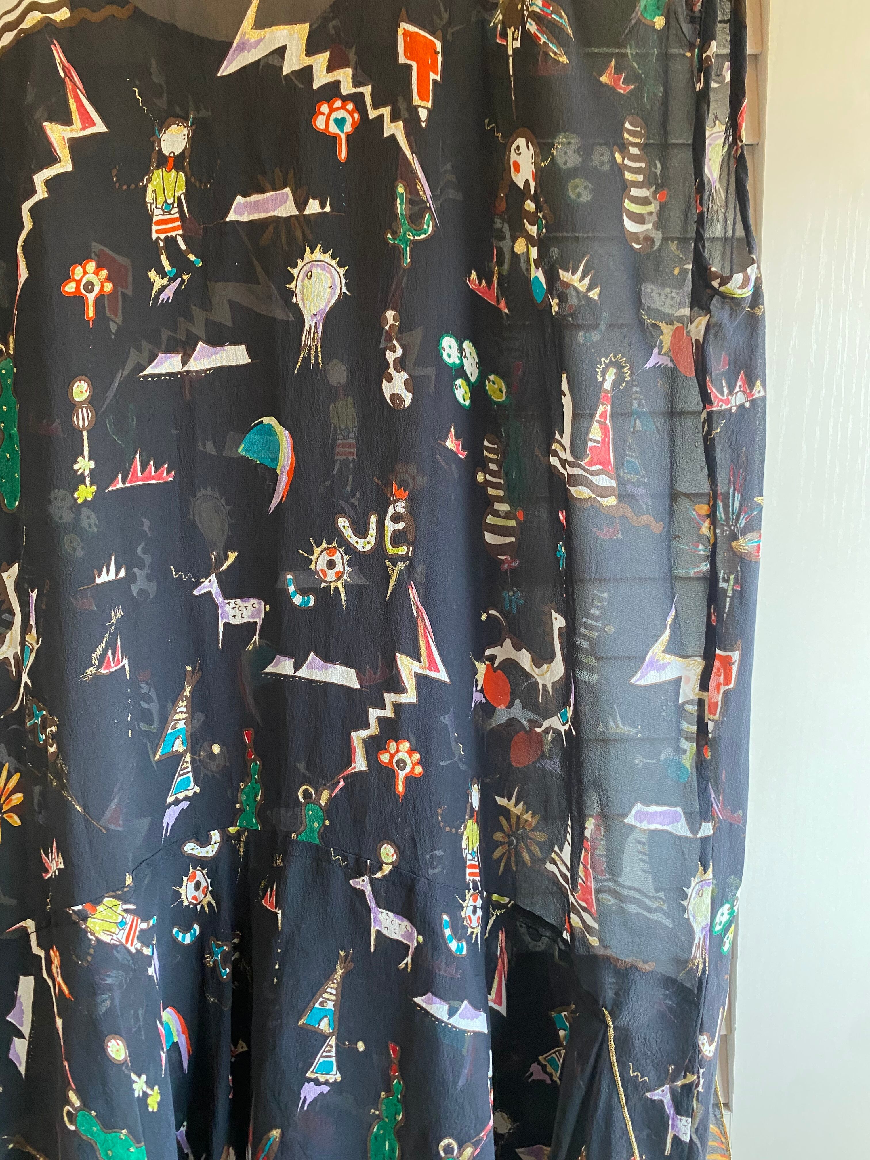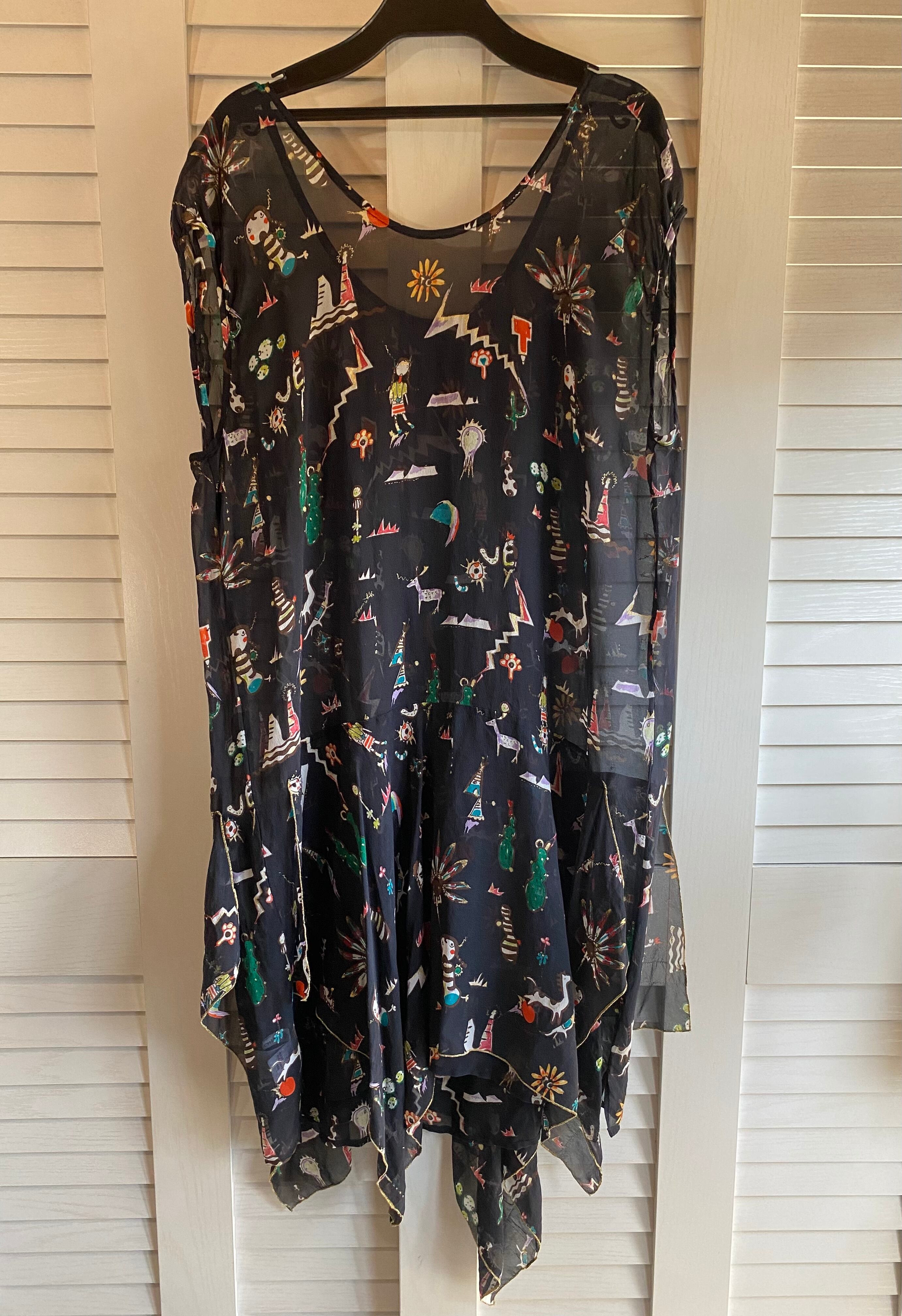 #35TSUMORI CHISATO シルクジョーゼット らくがきプリント チュニックワンピ ブラック