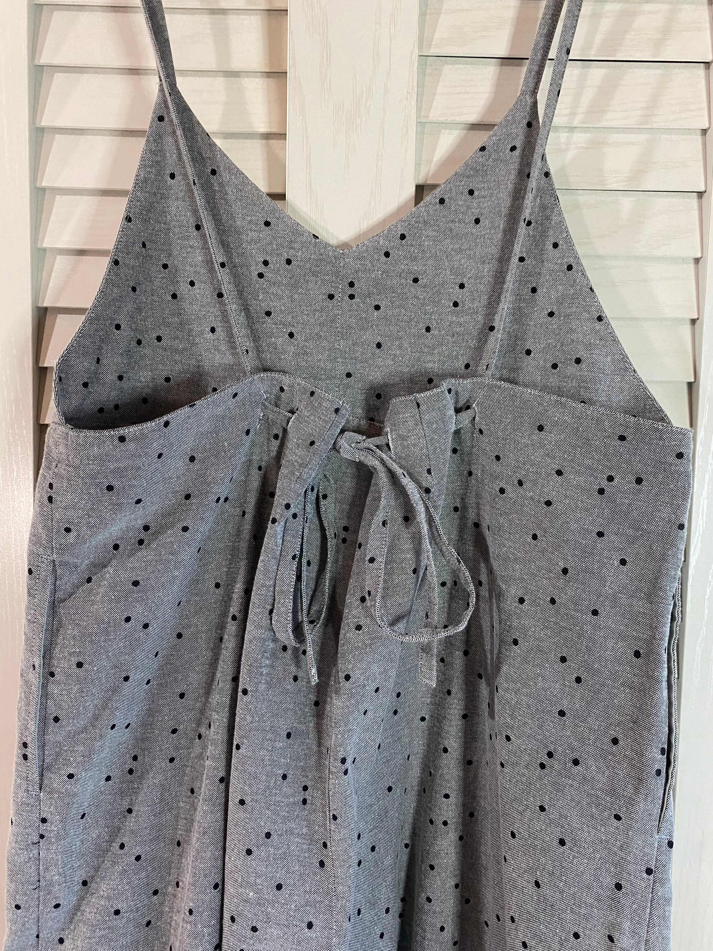 #36 s Samansa mos2 コットンオックスフォード ドットプリント サロペット ツータックワイドパンツ グレー