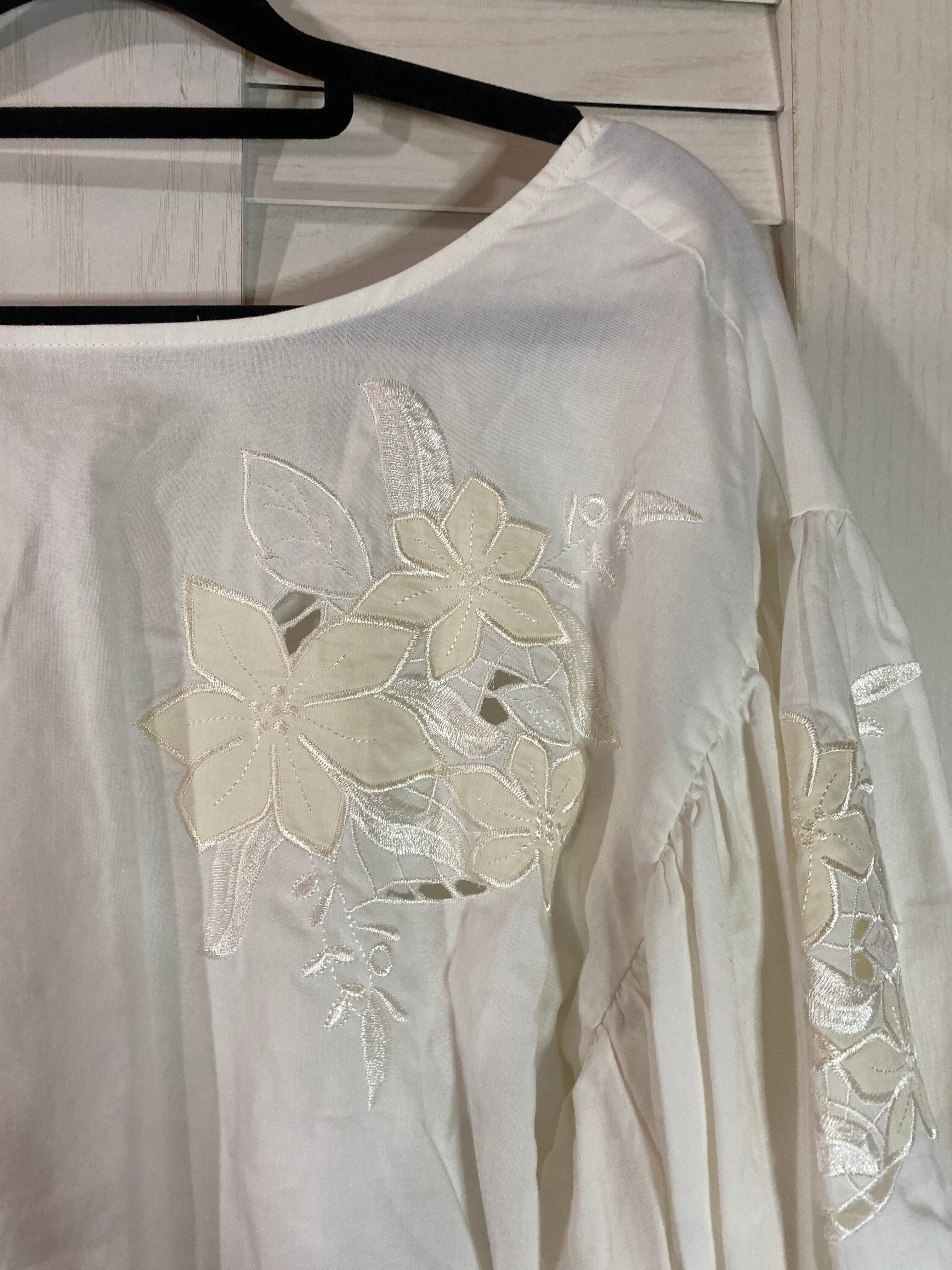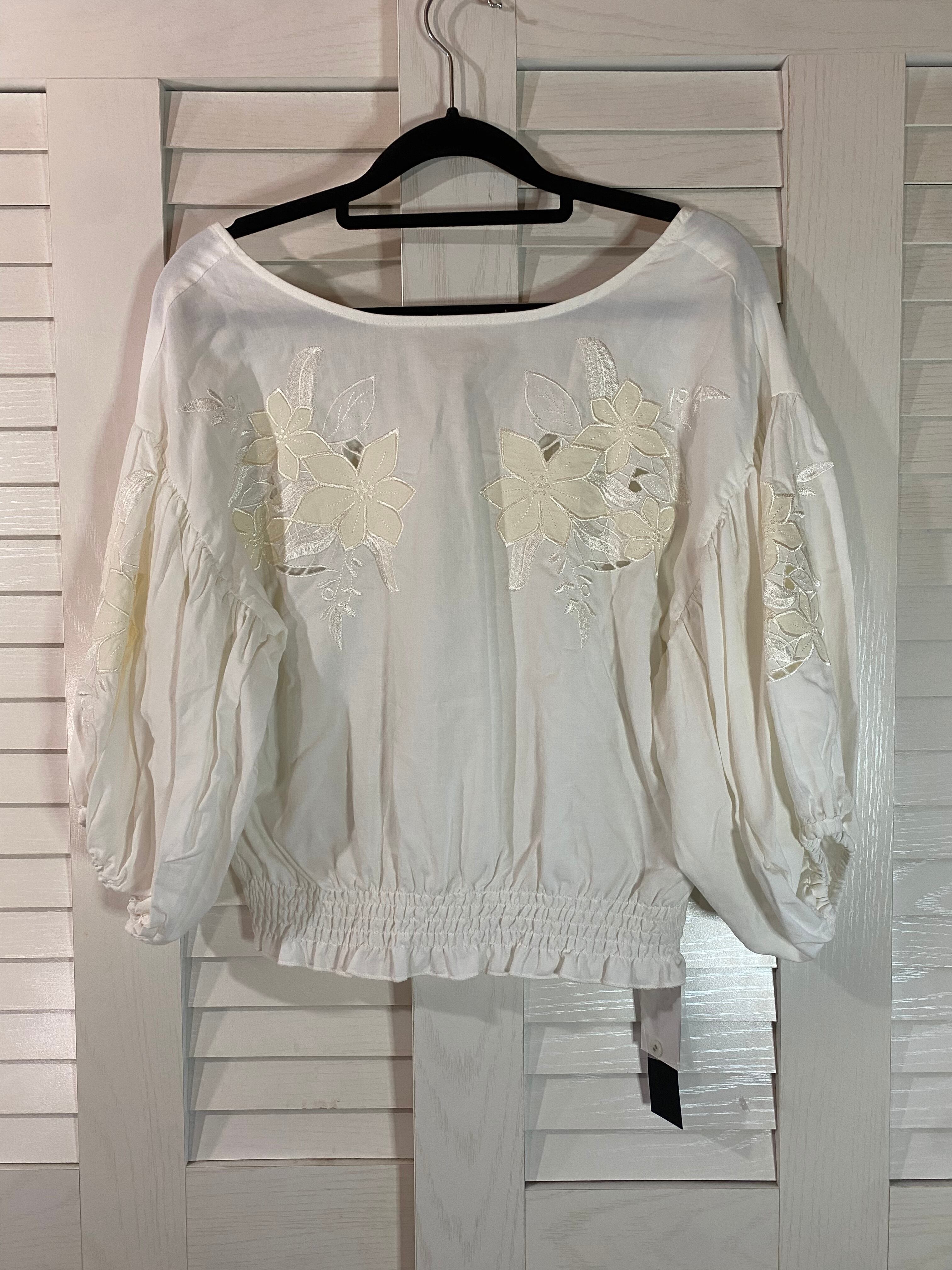 #36 JEANAS カッティング刺繍ボリュームスリーブ オーバーブラウス オフホワイト