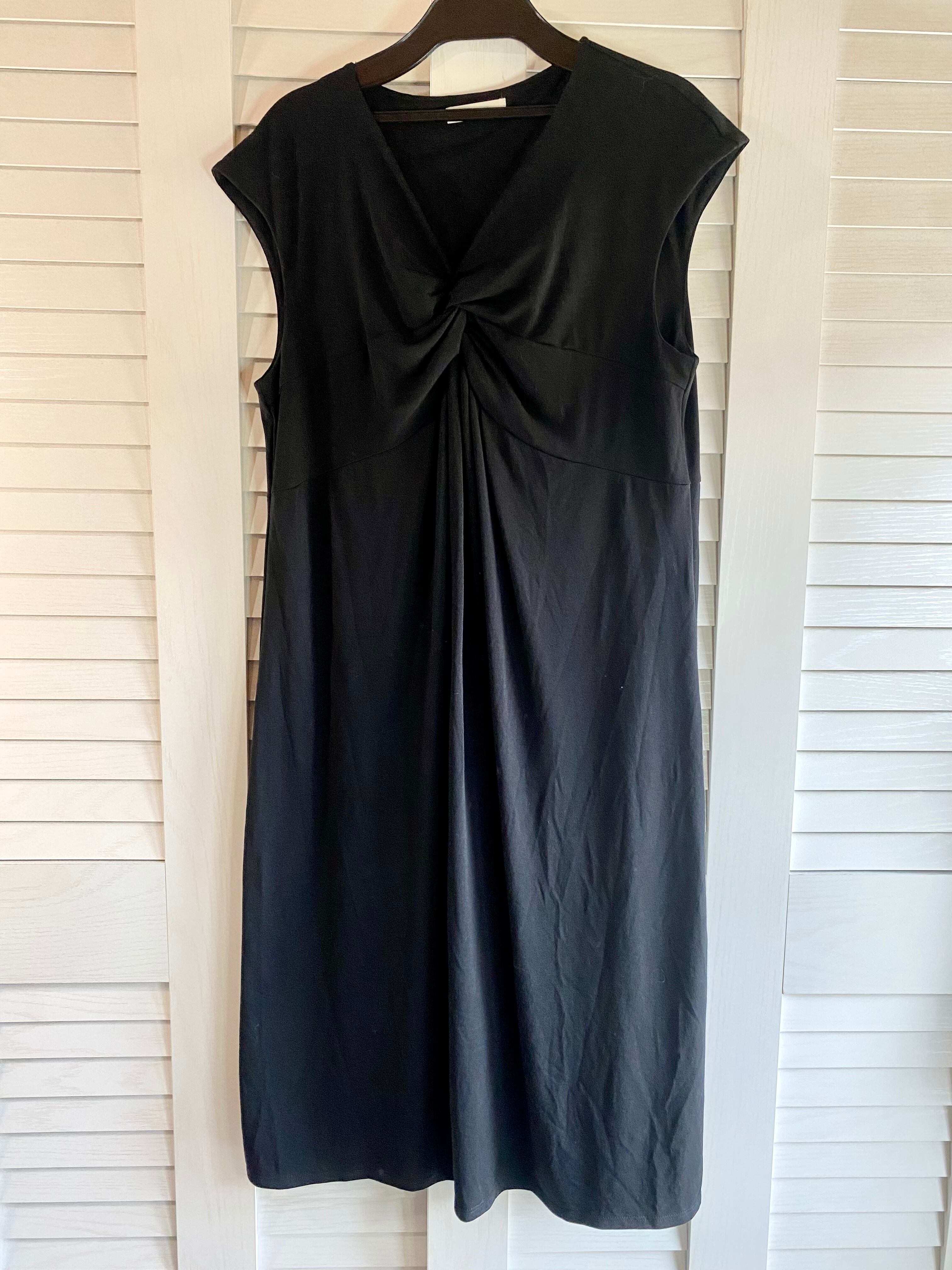 #37 Merdel'or ねじりデザイン フレンチスリーブ レーヨンカットソーワンピ ブラック