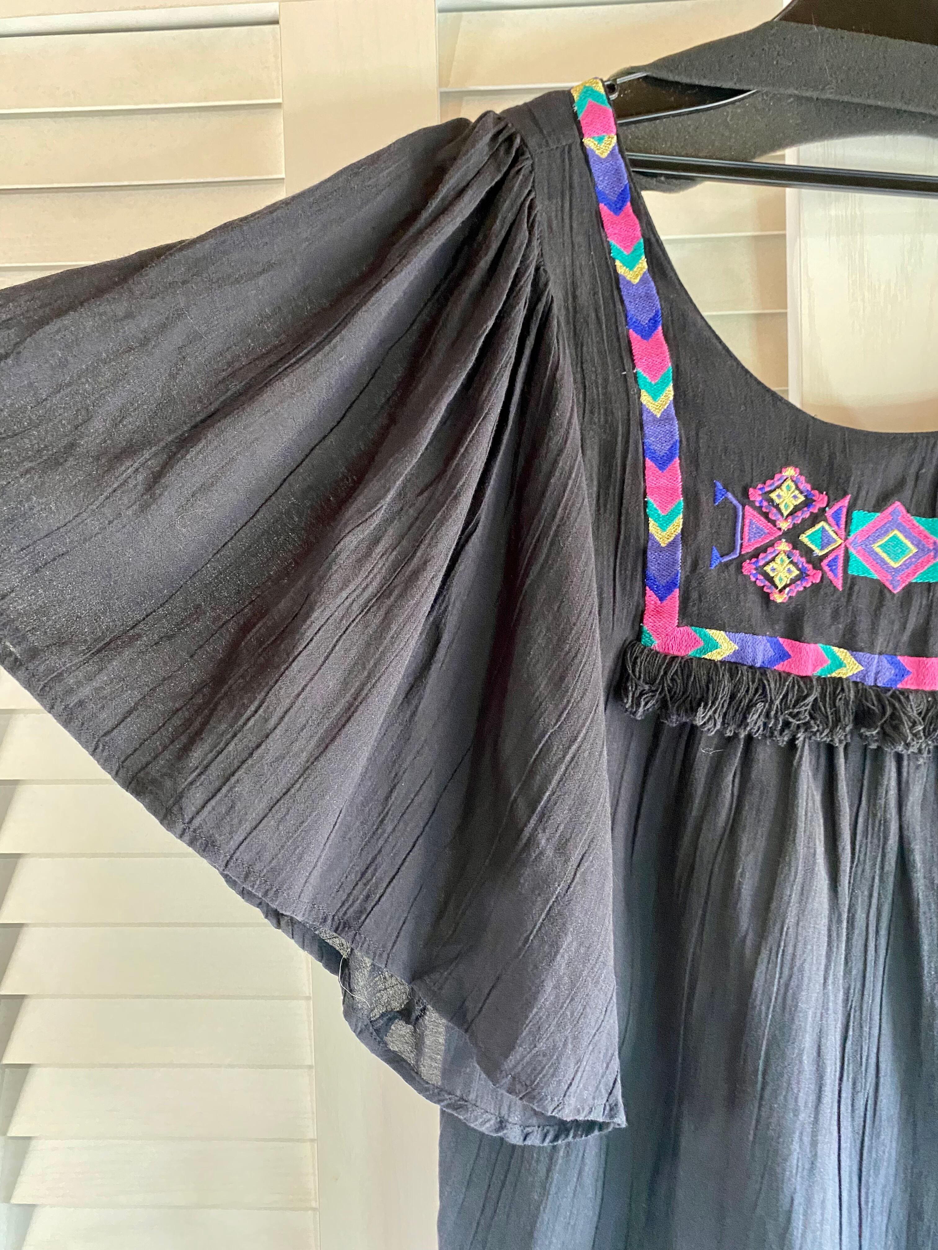 #38 ROSE BUD フレアースリーブ スクエアヨーク刺繍 レーヨン楊柳ブラウス ブラック