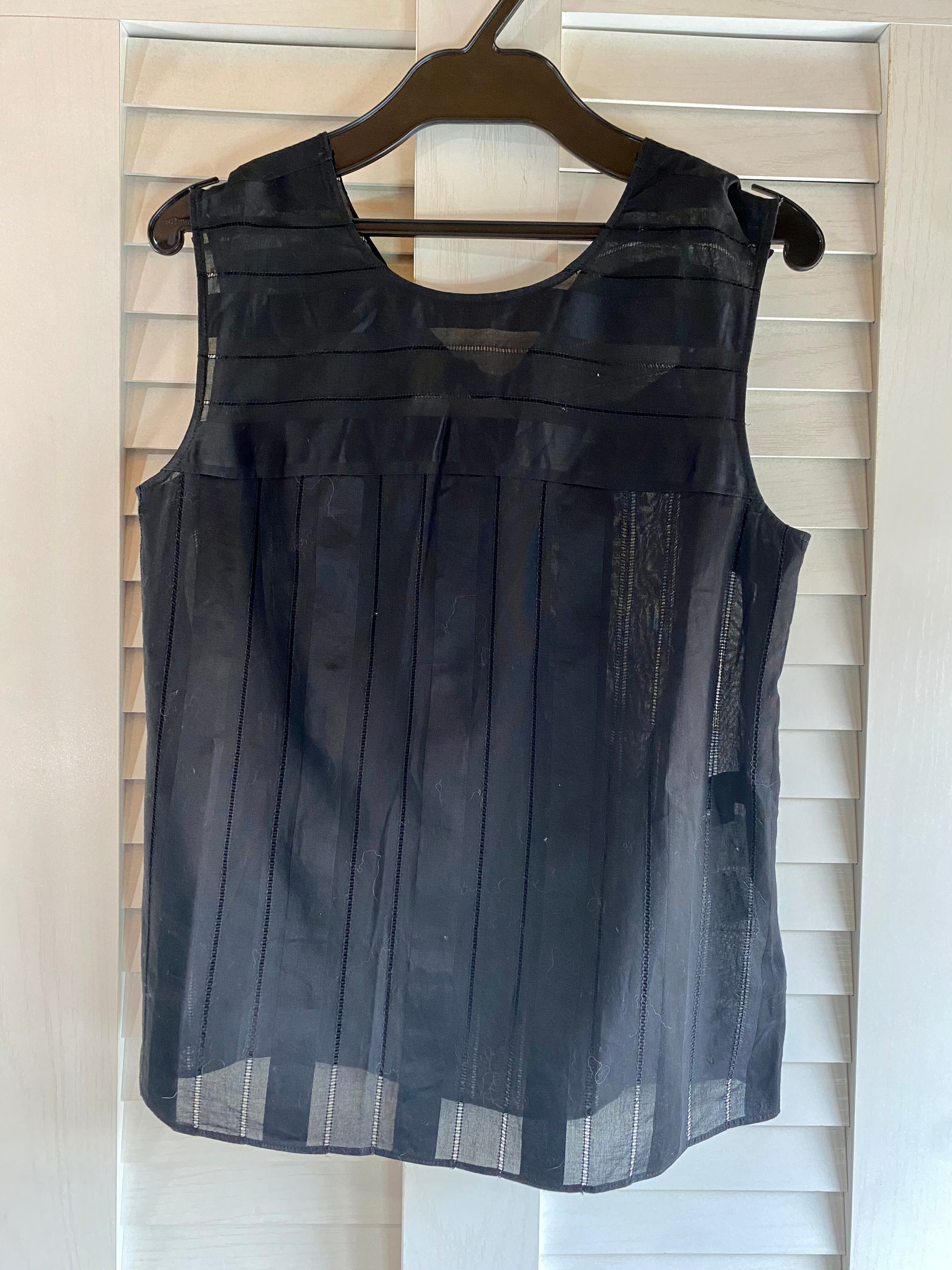 #38 JILL STUART バックリボン ランダムストライプ織 綿ローン ノースリーブブラウス ブラック