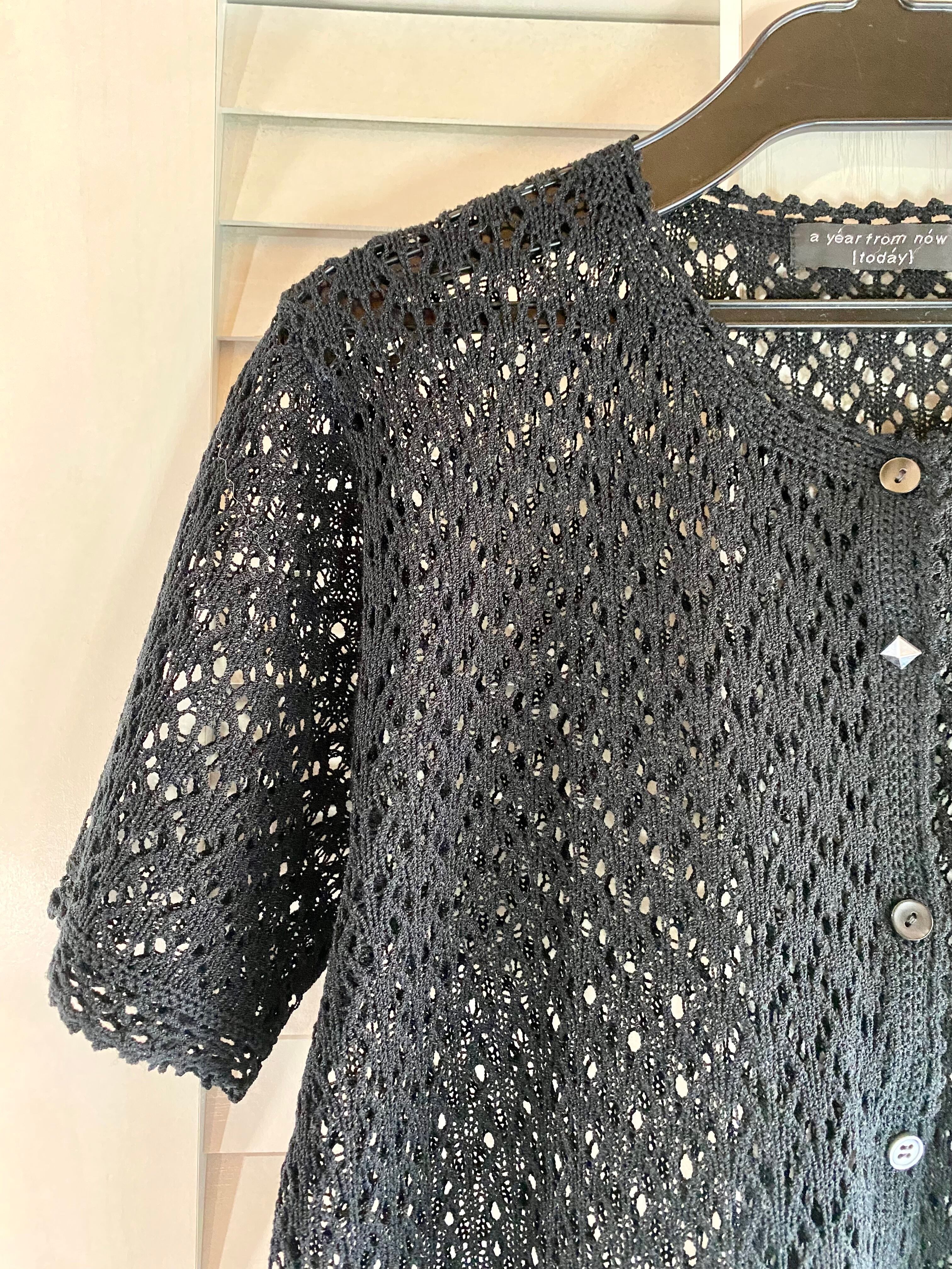#38 a year from now 透かし編みナイロンレースカーデ ブラック