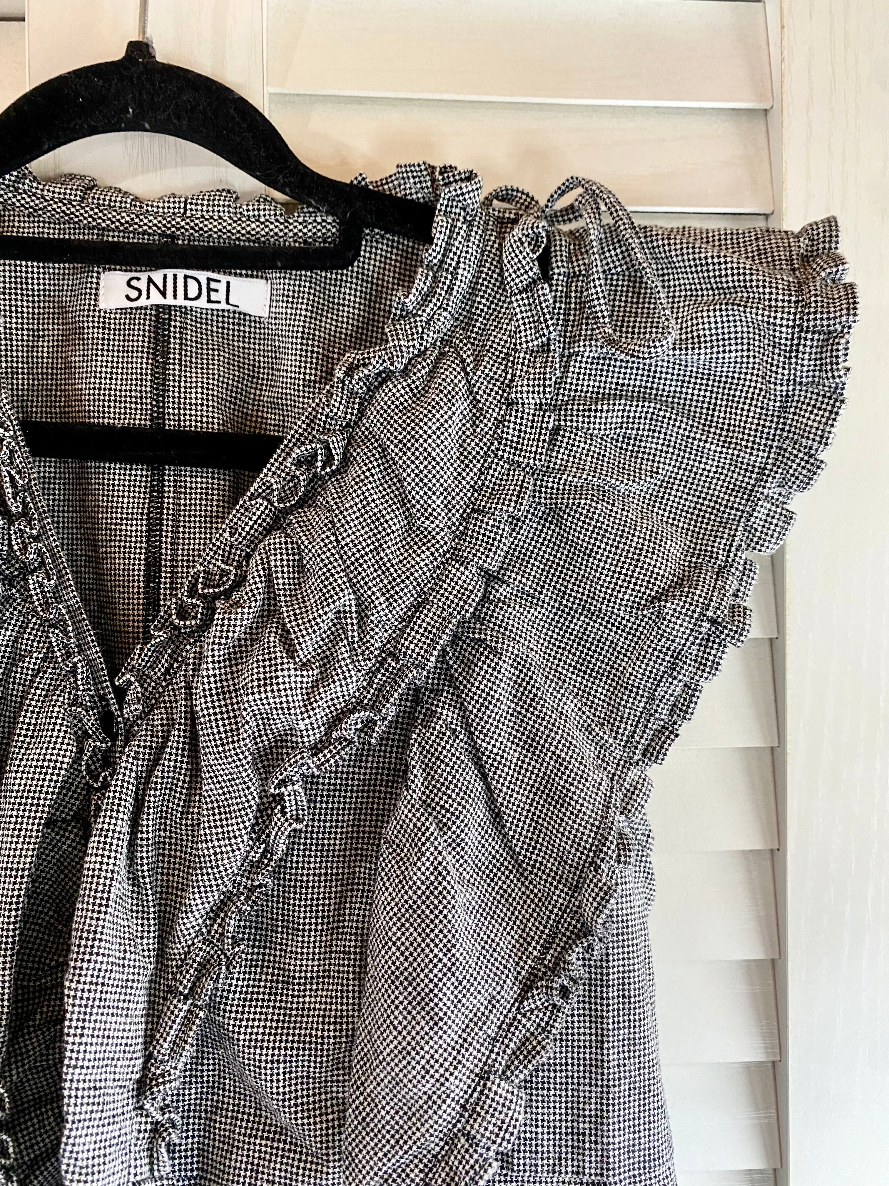 #38 SNIDEL 千鳥格子 オーバーデザイン コットンリネンブラウス ブラック