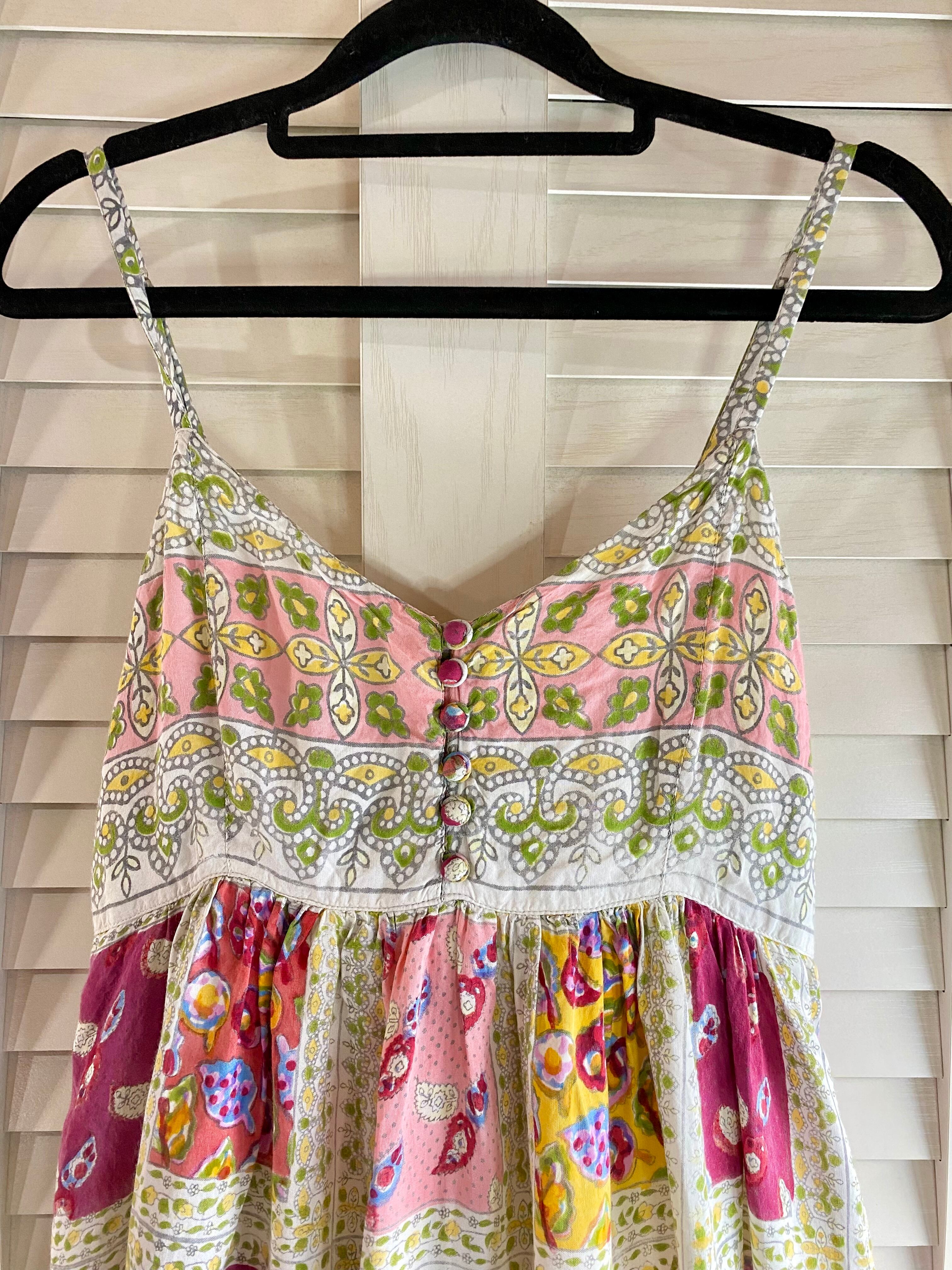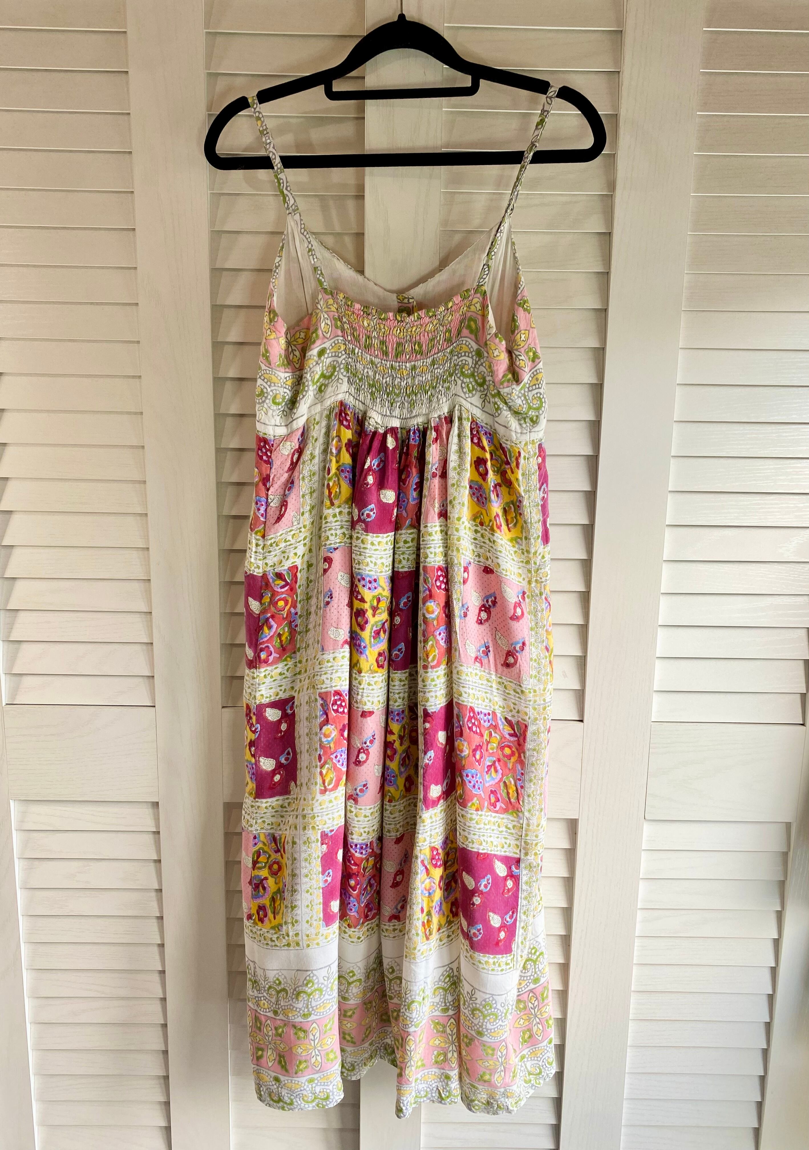 #38 Ray BEAMS キッチュカラー パッチワークプリント レーヨンガーゼ キャミソールワンピ ベイビーピンク