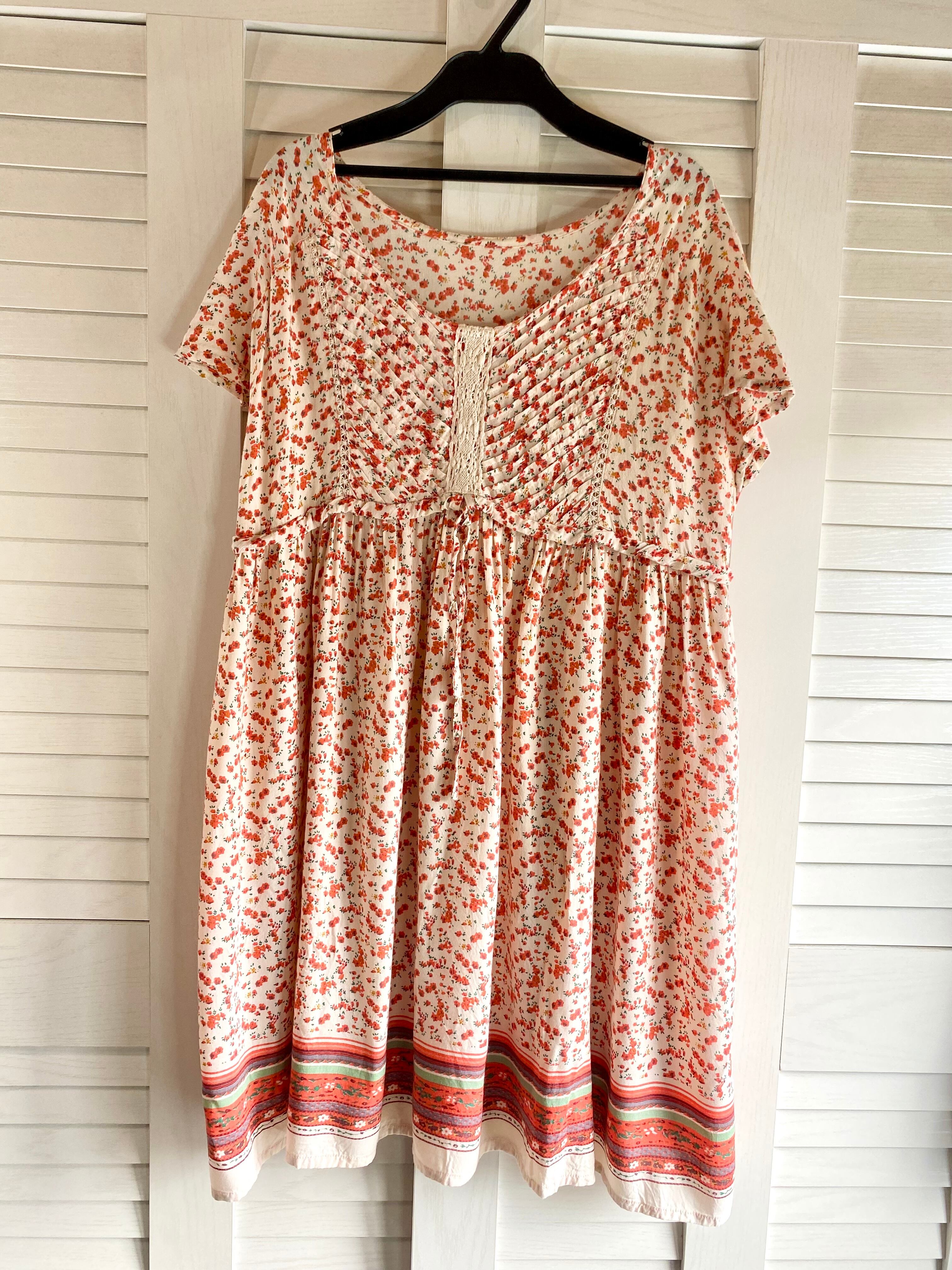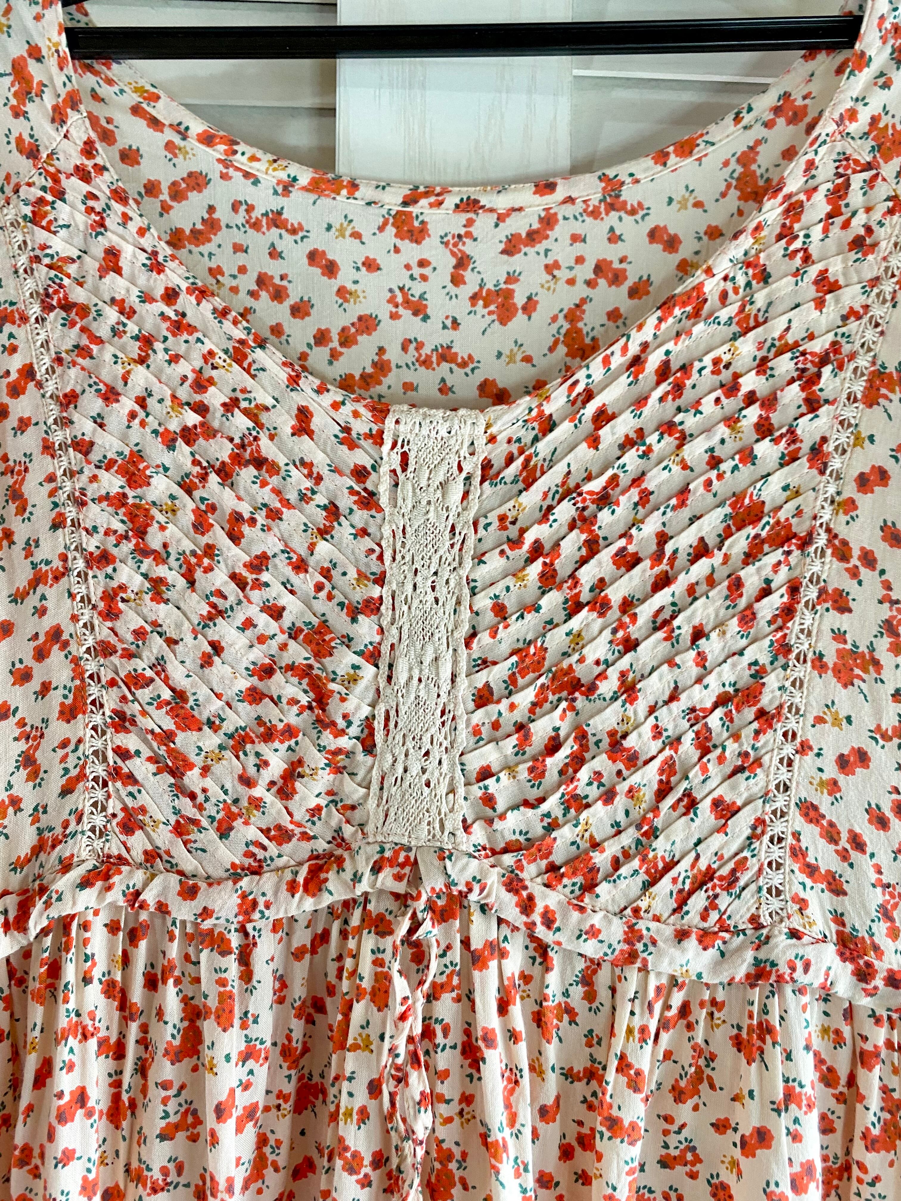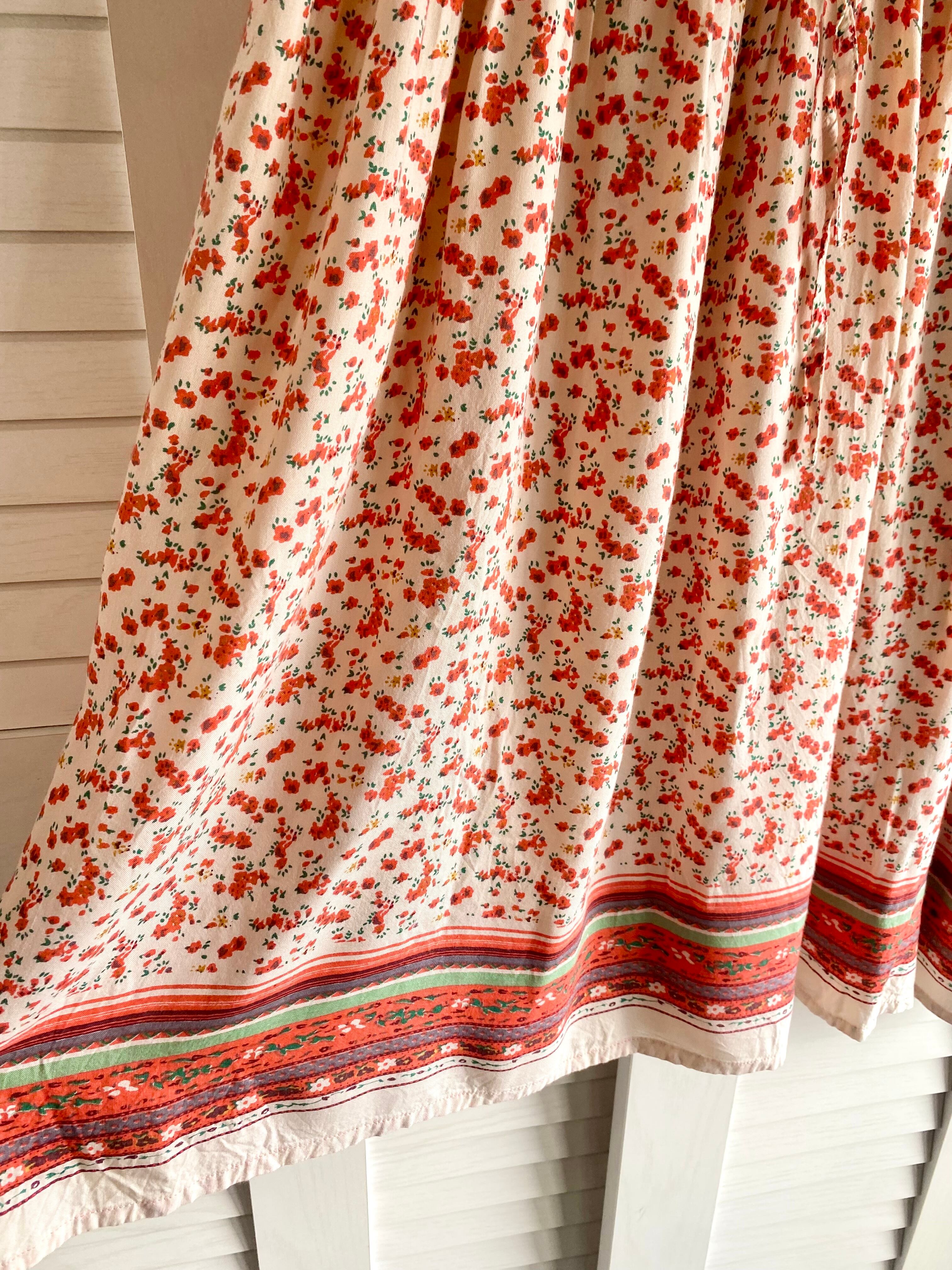 #38【デザインサンプル】小花柄&チロリアンライン コットンレーヨンボリュームワンピ オレンジ