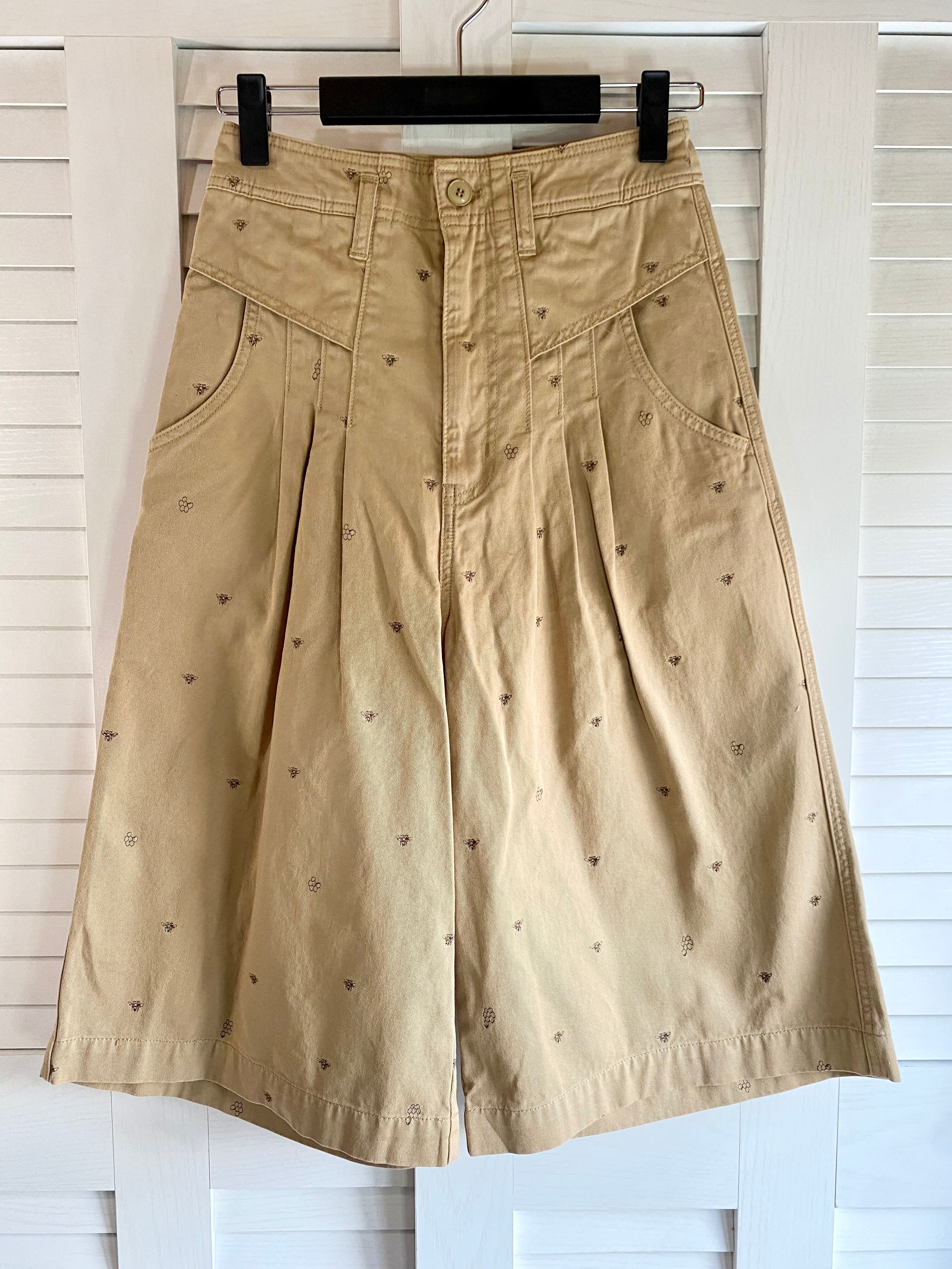 #38 Ne-net みつばちステッチ刺繍 チノクロス クロップド デザインワイドパンツ ベージュ