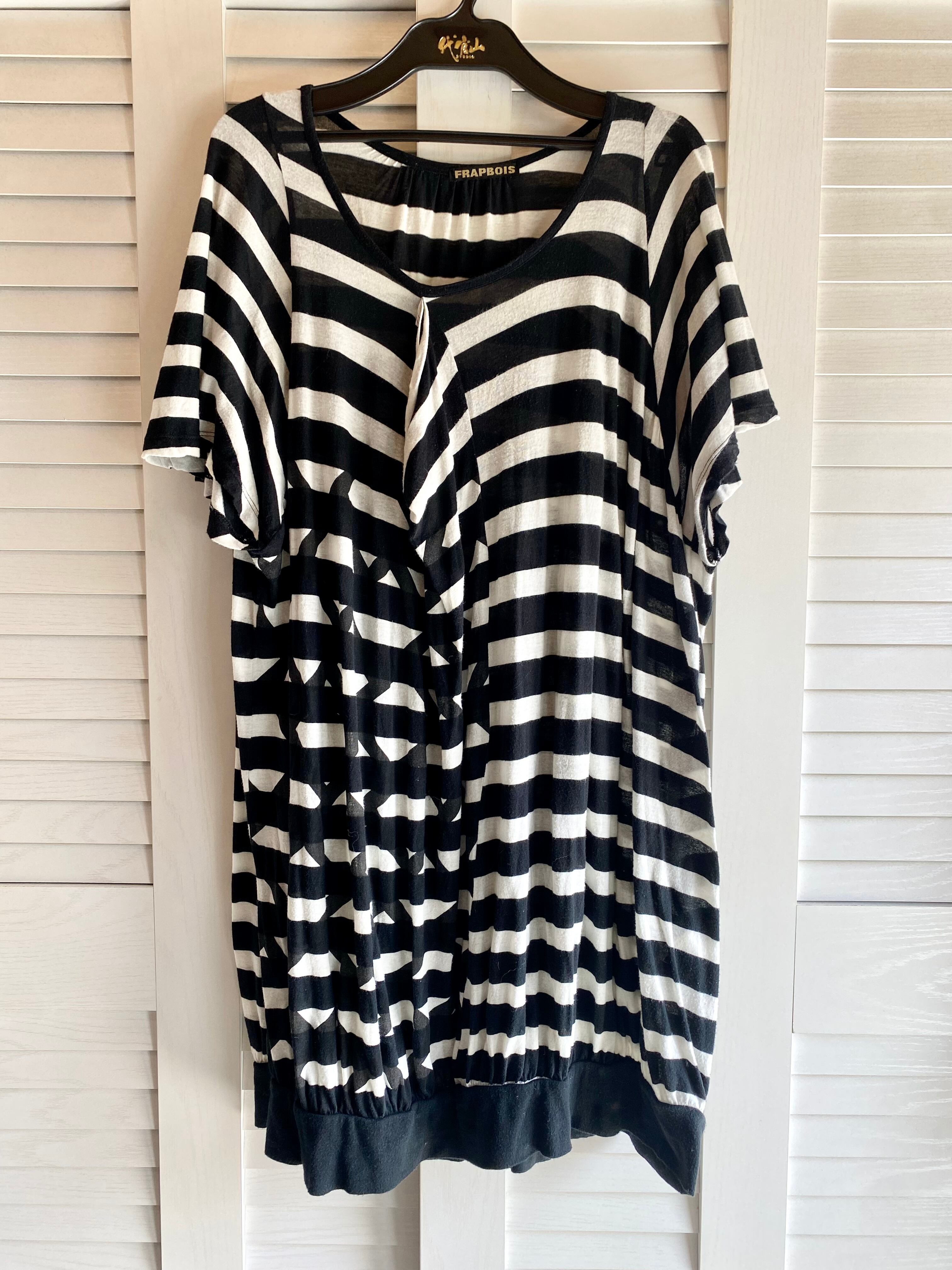 #39 FRAPBOIS コットンニットソー ボーダー&チェックデザインワンピ ブラック