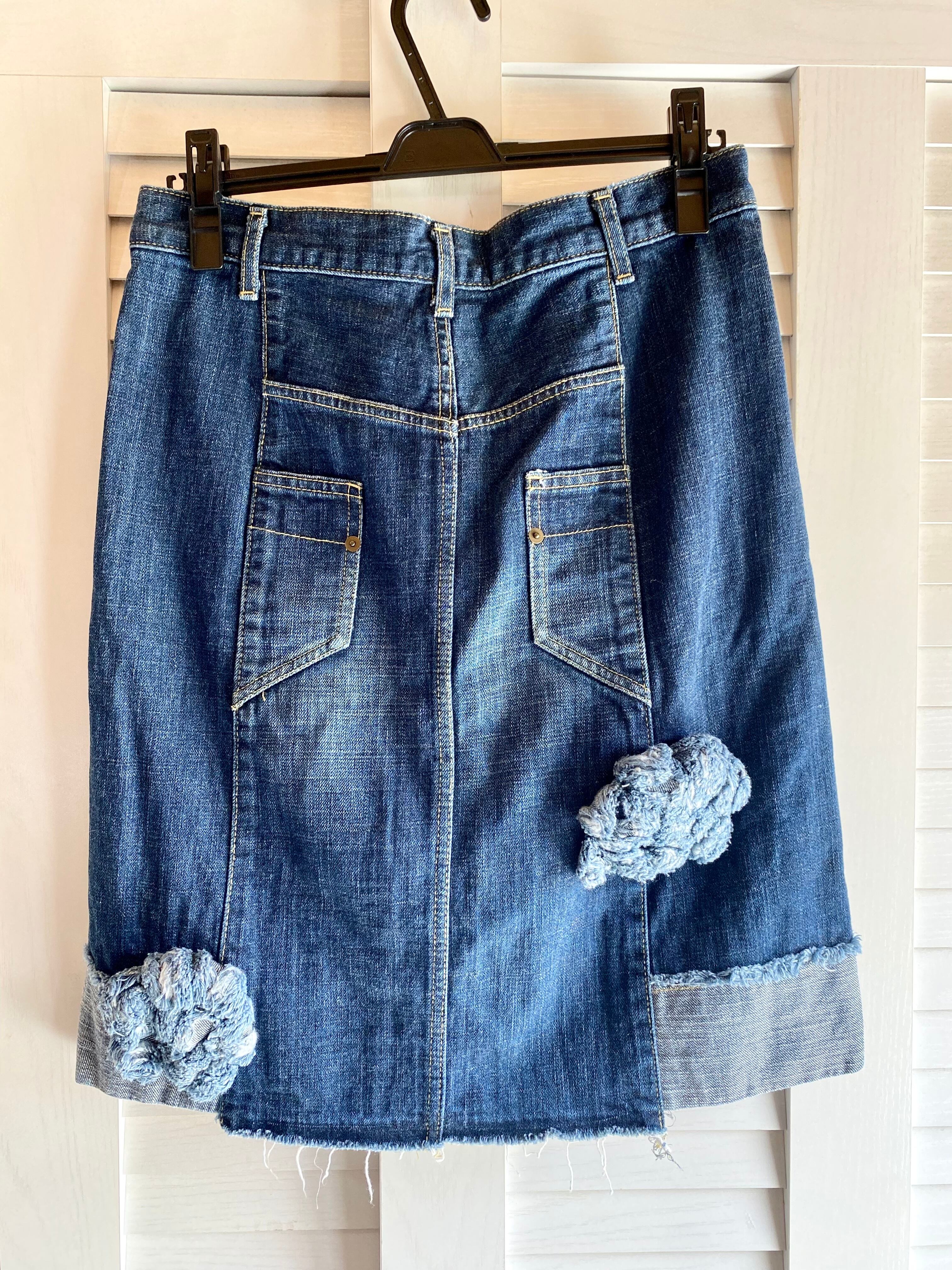 #39 FRAPBOIS デニムぽんぽんストレッチデザインスカート インディゴ
