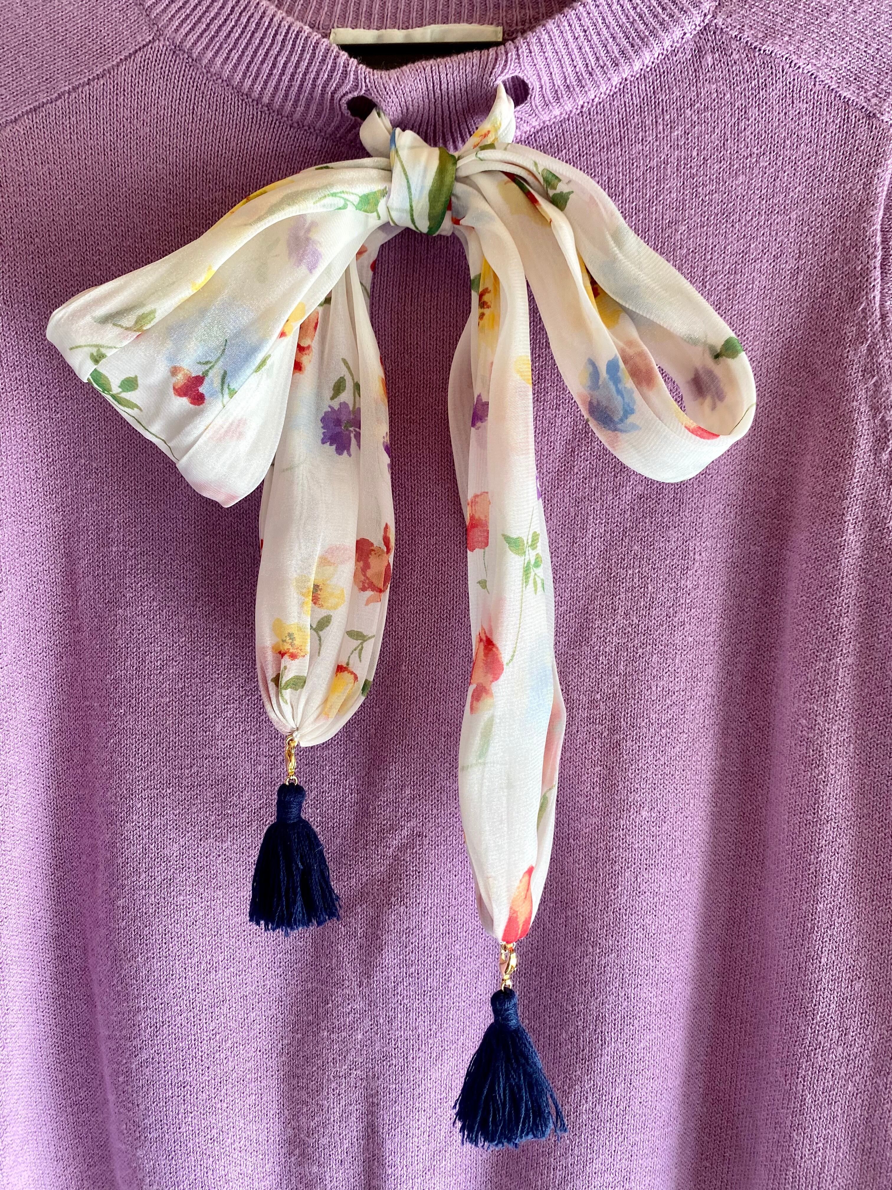 #39 Lily Brown タッセル付きスカーフリボン パフスリーブ コットンニット ラベンダー