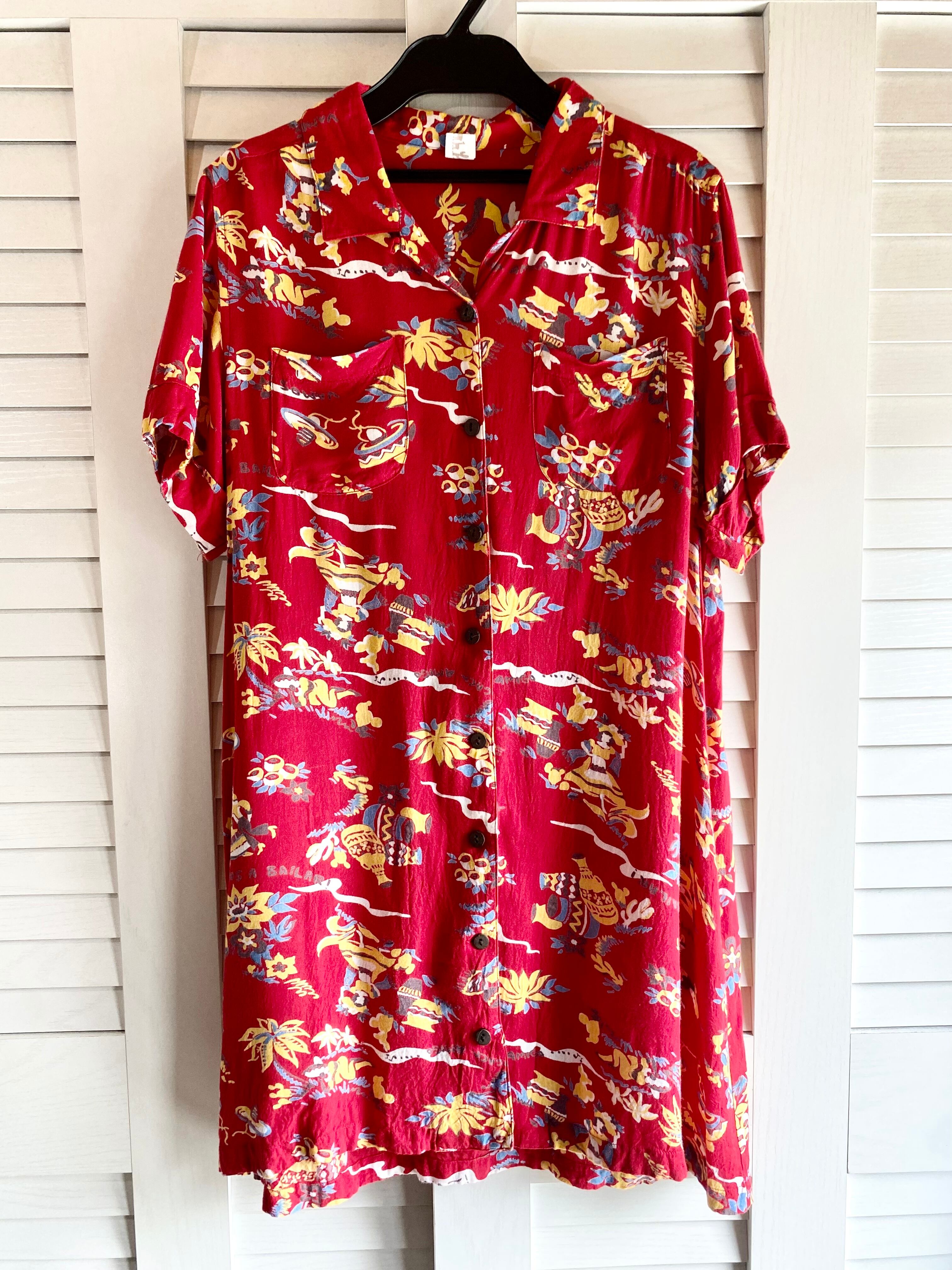 #39 TITICACA メキシコ柄レーヨンシャツワンピ レッド