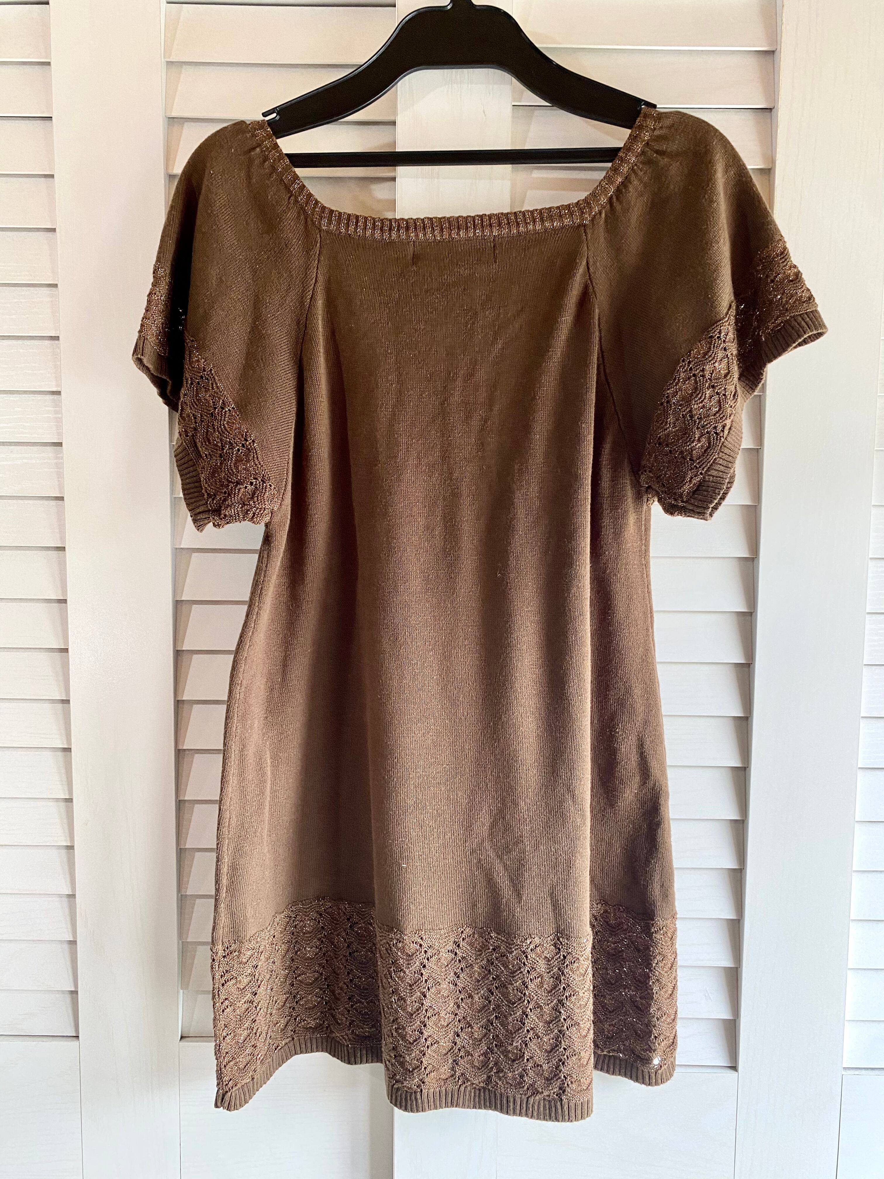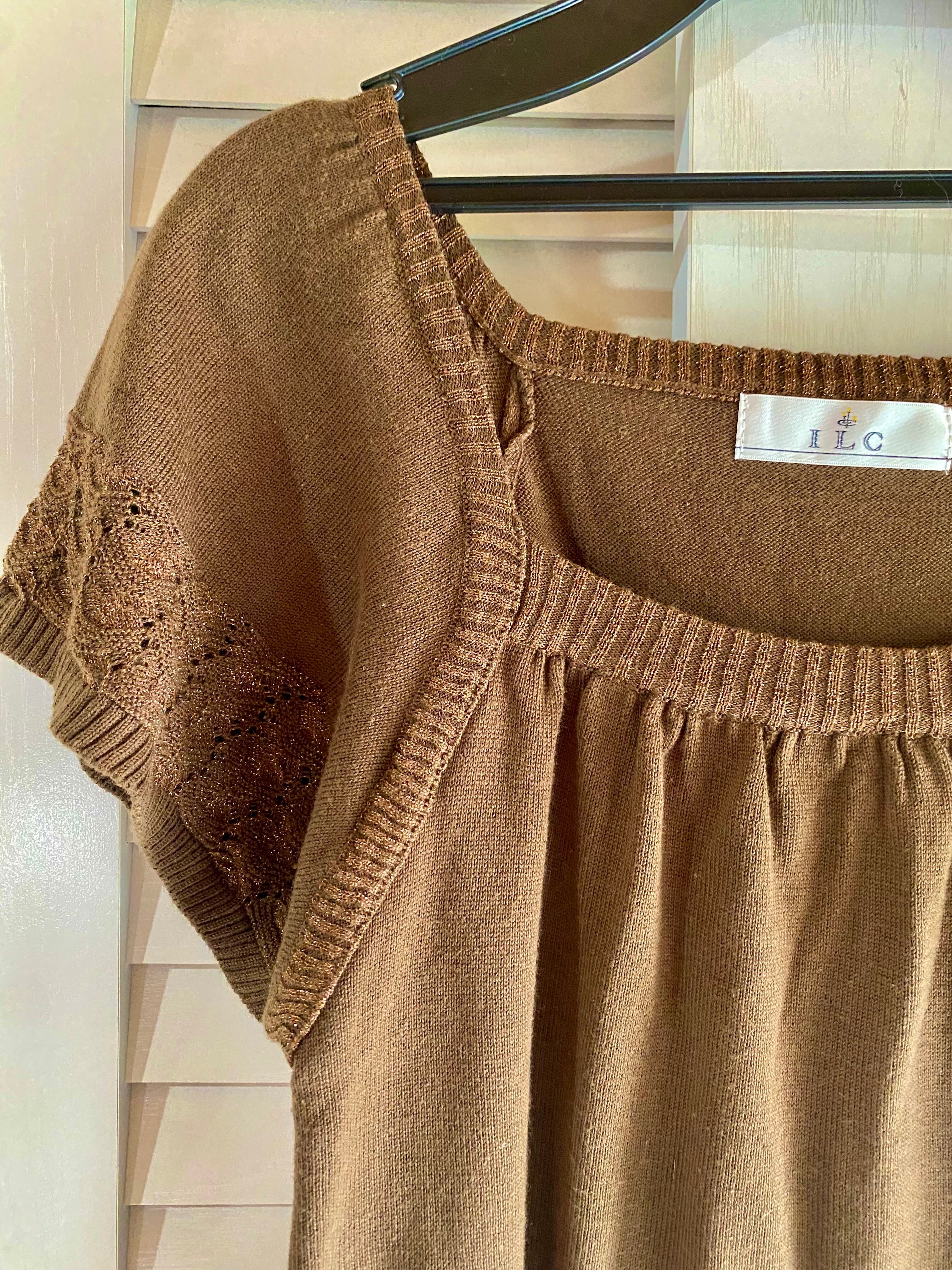 #39 ICL ラメ入りリブ&透かし編み フレアースリーブ コットンニット ブラウン