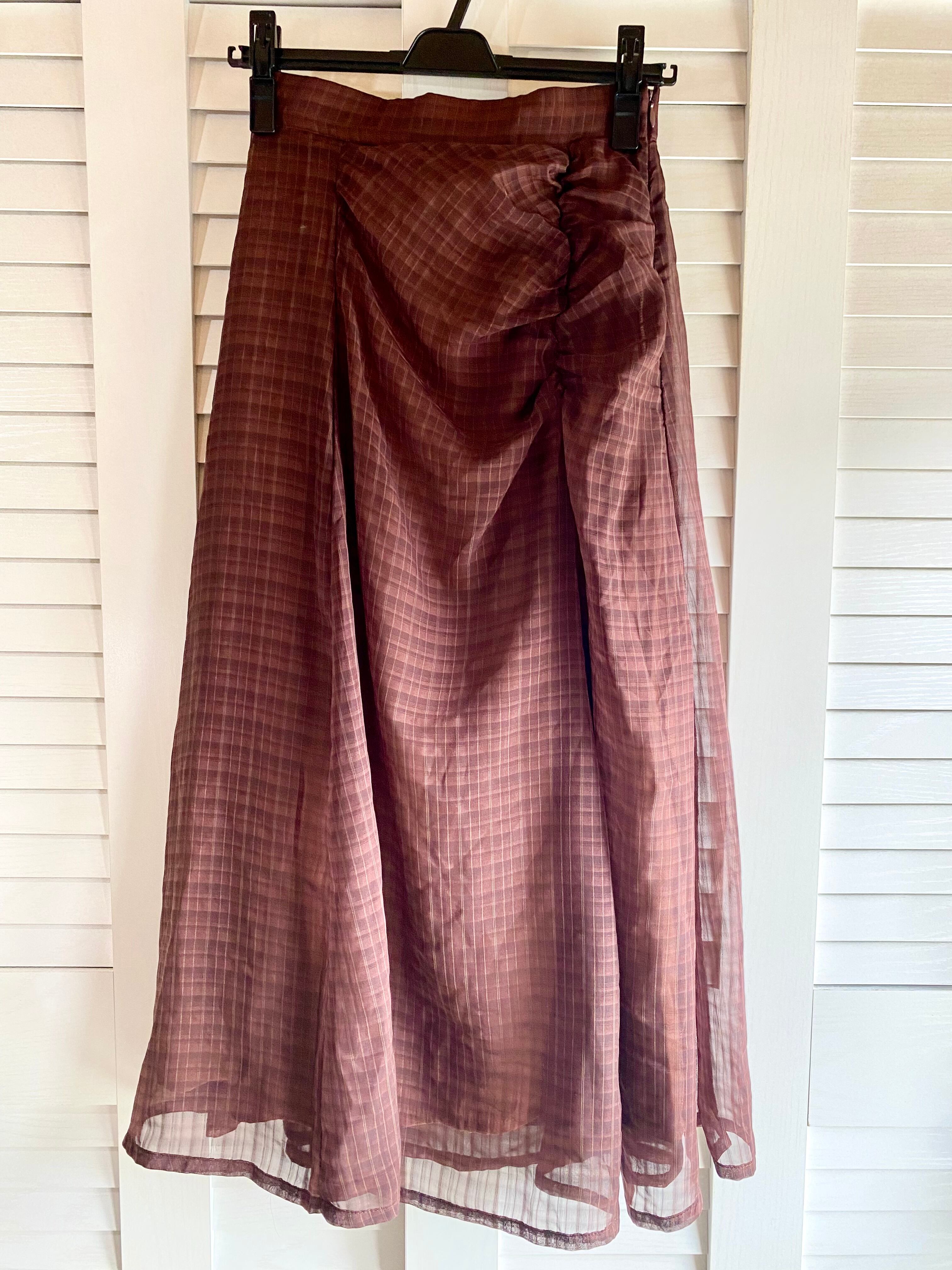 #39 clear チェックオーガンジー シャーリングデザイン フレアースカート ブラウン
