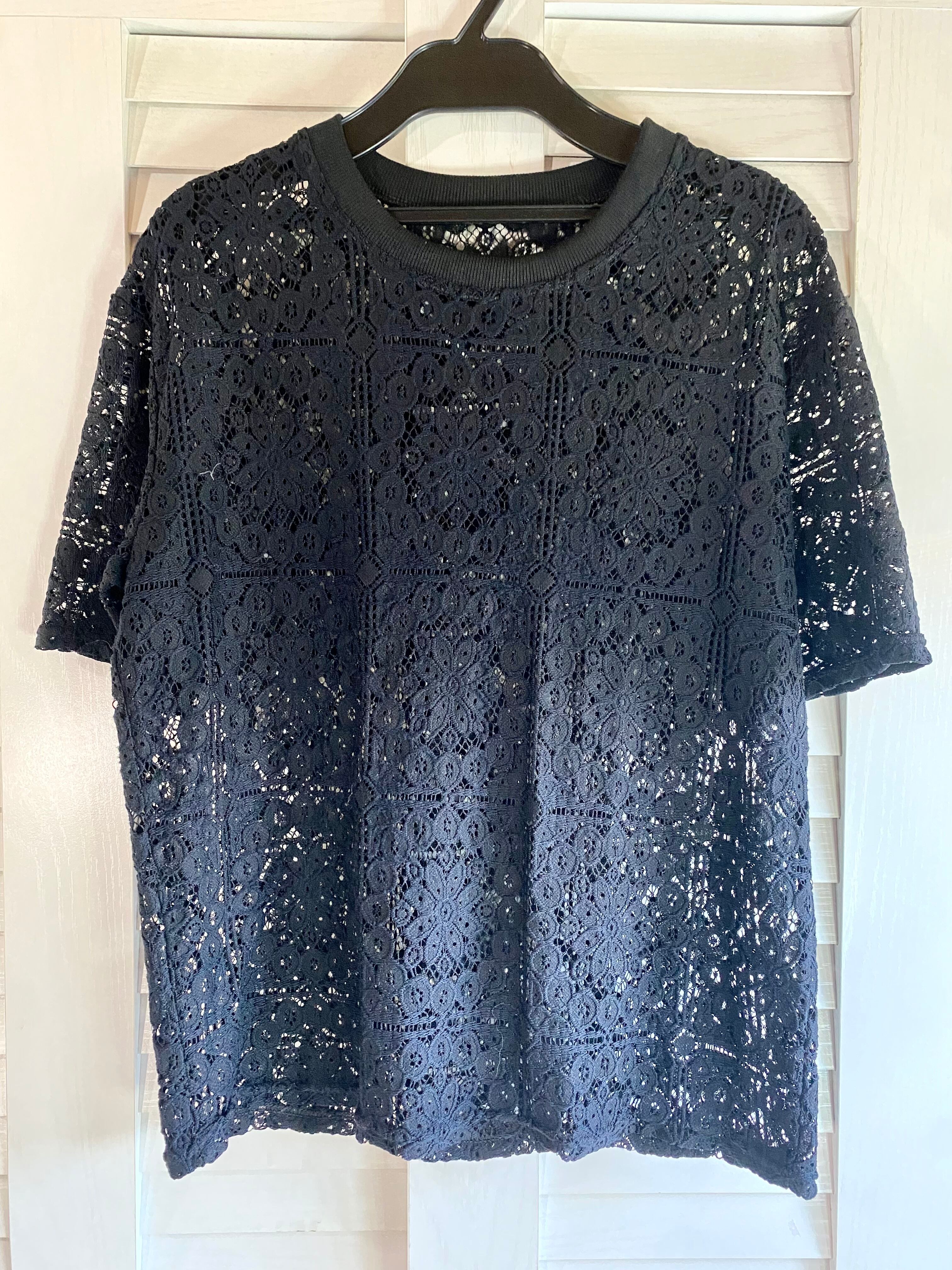 #40【デザインサンプル】スクエアフラワーレース プルオーバーブラウス ブラック