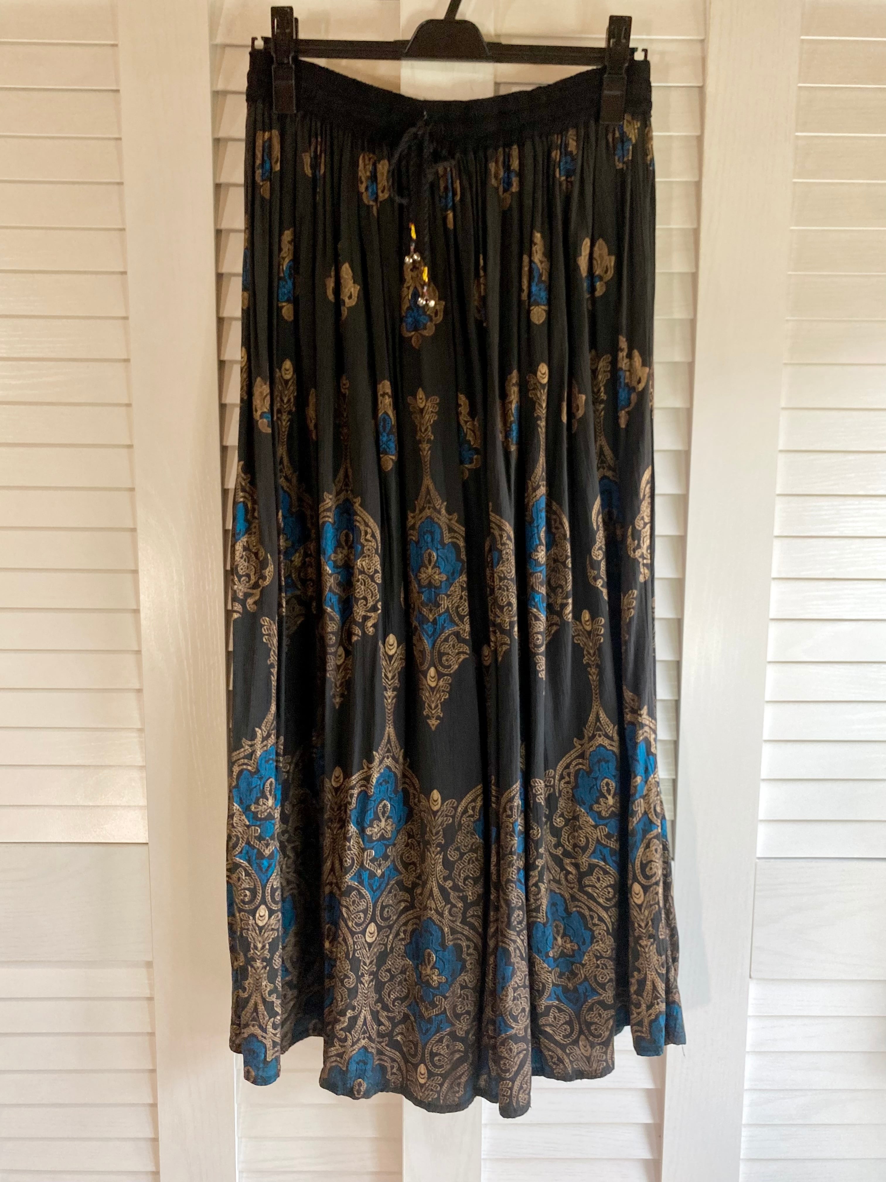 #40【LA古着屋購入】インポート 楊柳コットンガーゼ アラベスク柄スカート ブラック