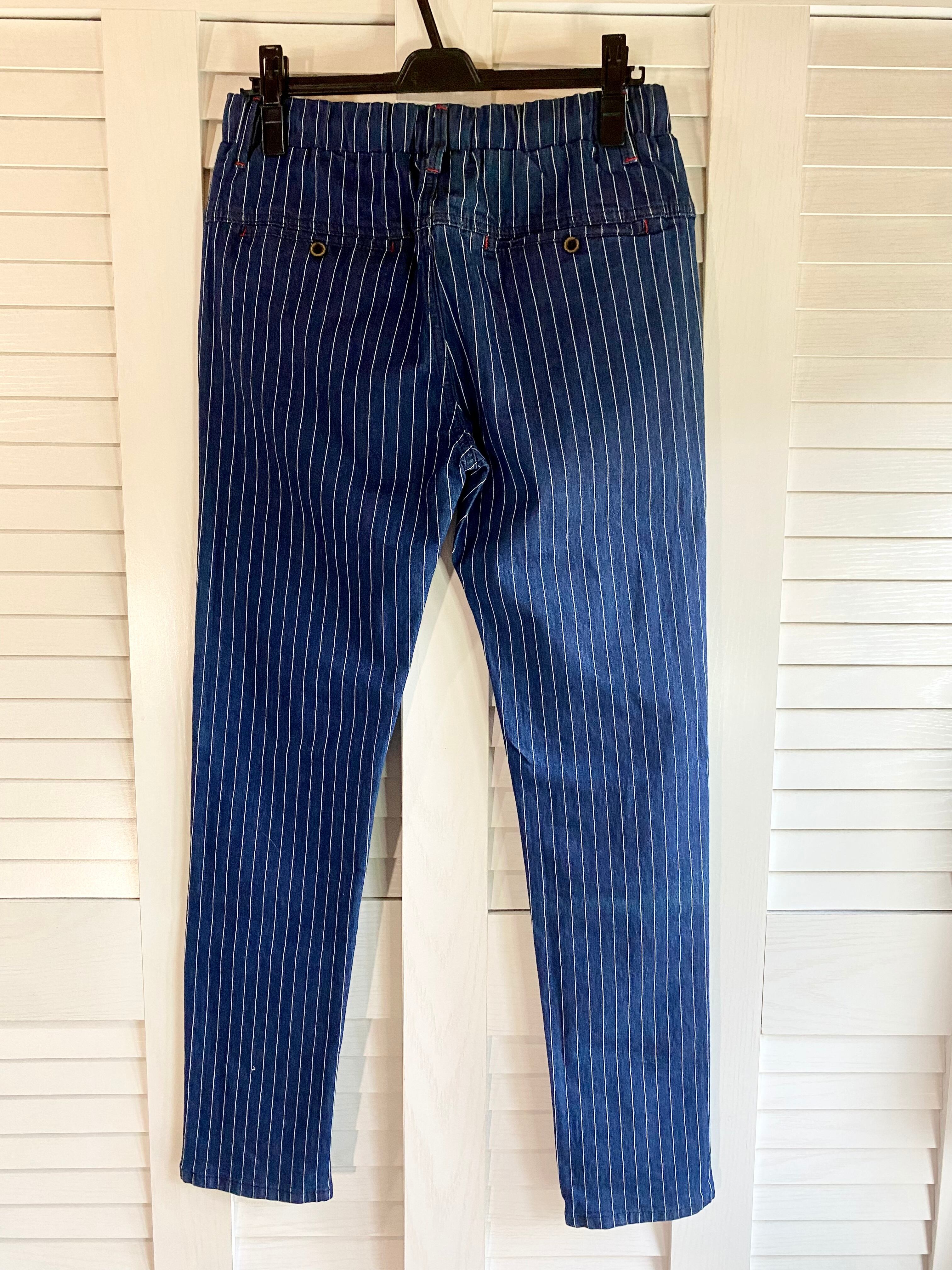 #40【デザインサンプル】ストライプデニム ストレッチルーズテーパードパンツ ブルー
