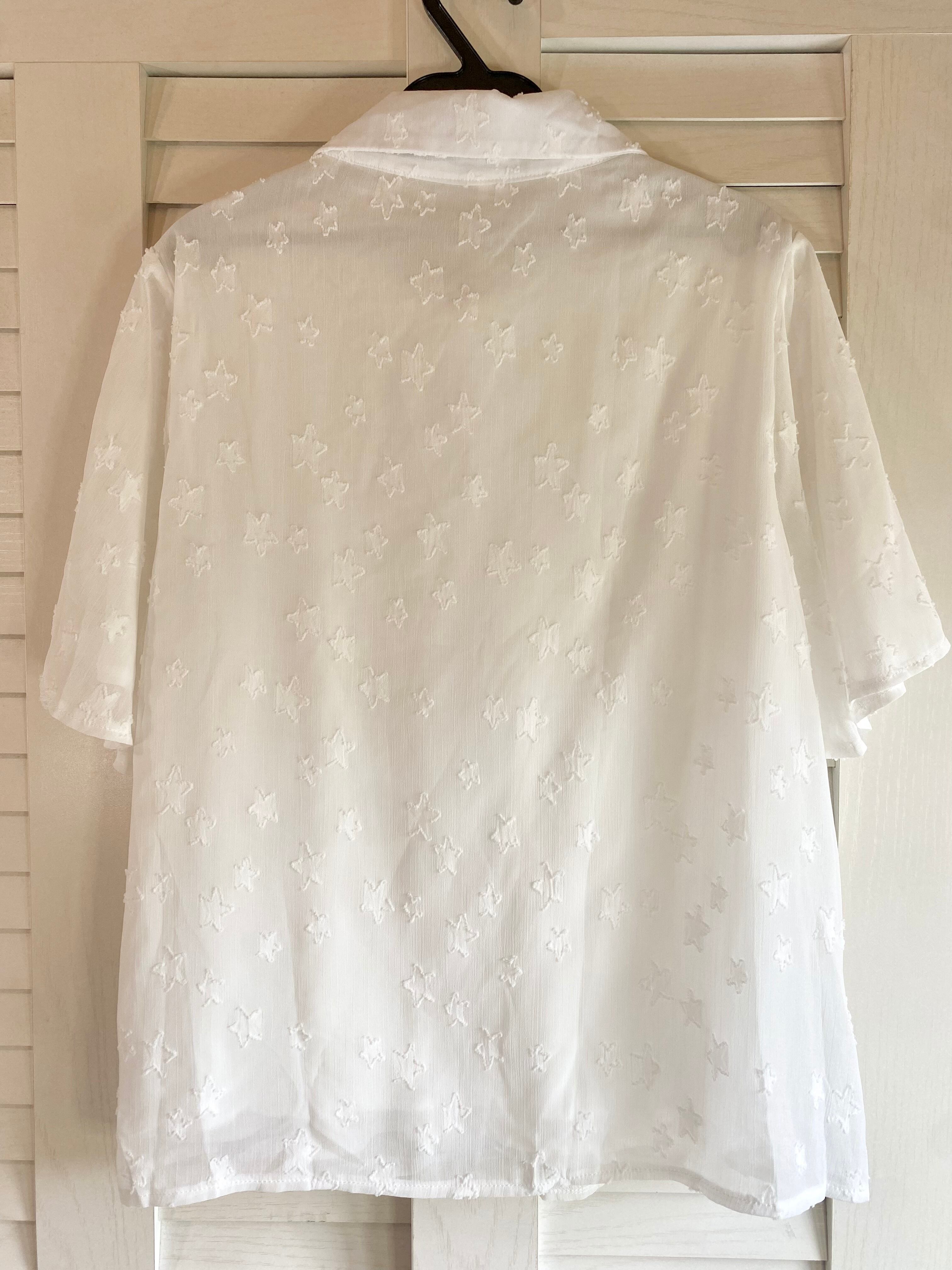 #42 Shang pin もへもへスター柄 シャーリングデザイン フレアースリーブ シフォンジョーゼットブラウス オフホワイト