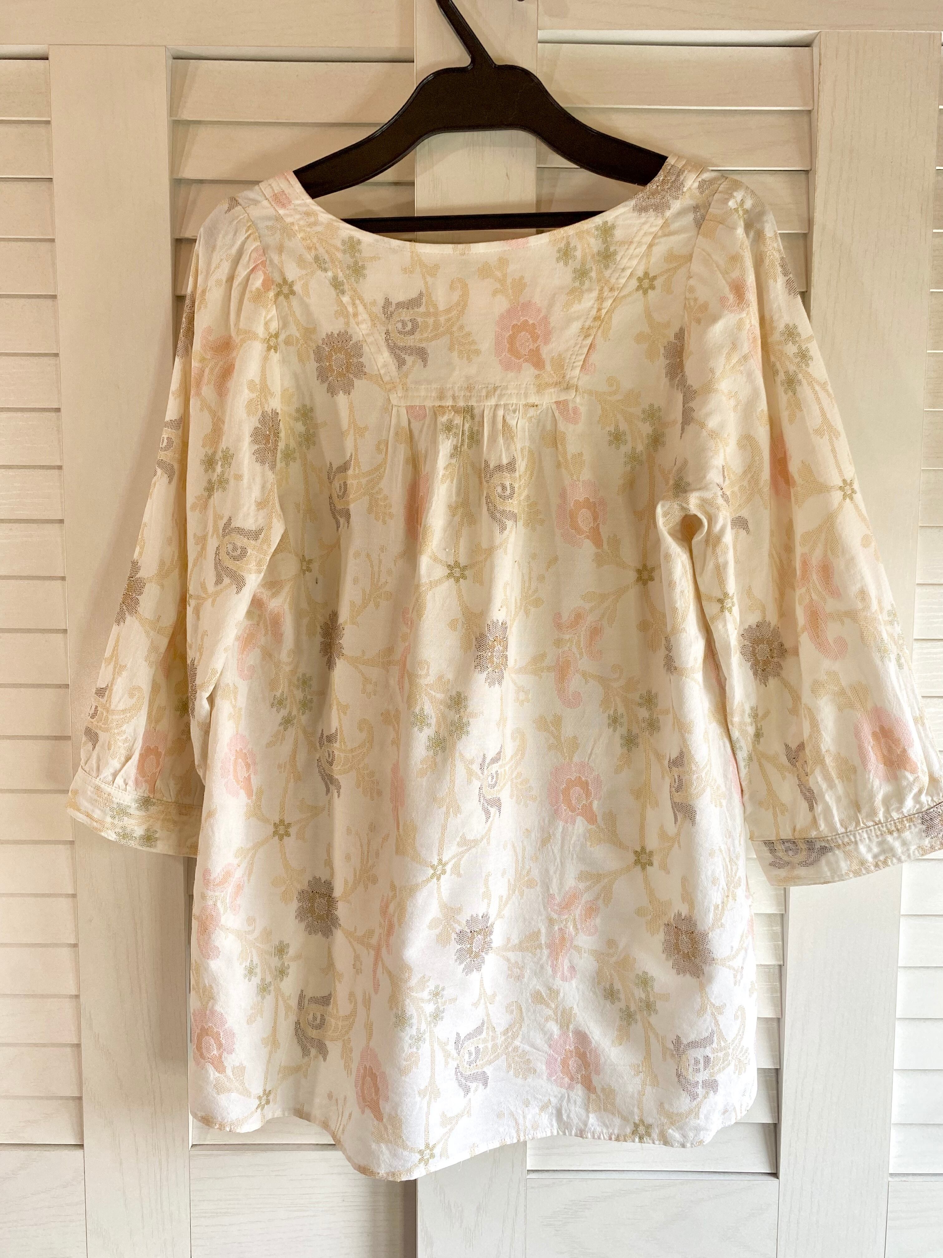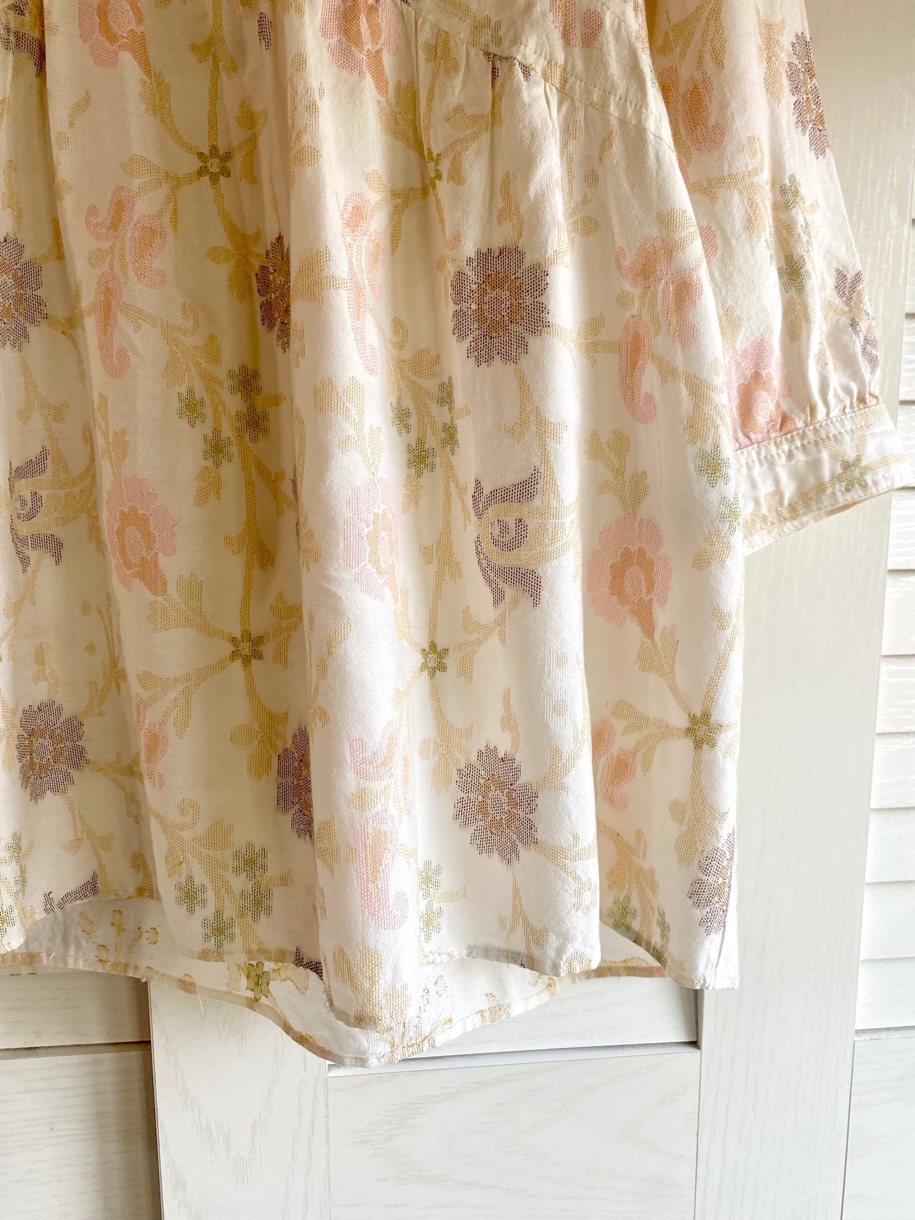 #42 Ray BEAMS ペールトーン コットン風ゴブラン織フラワー柄ブラウス アイボリー