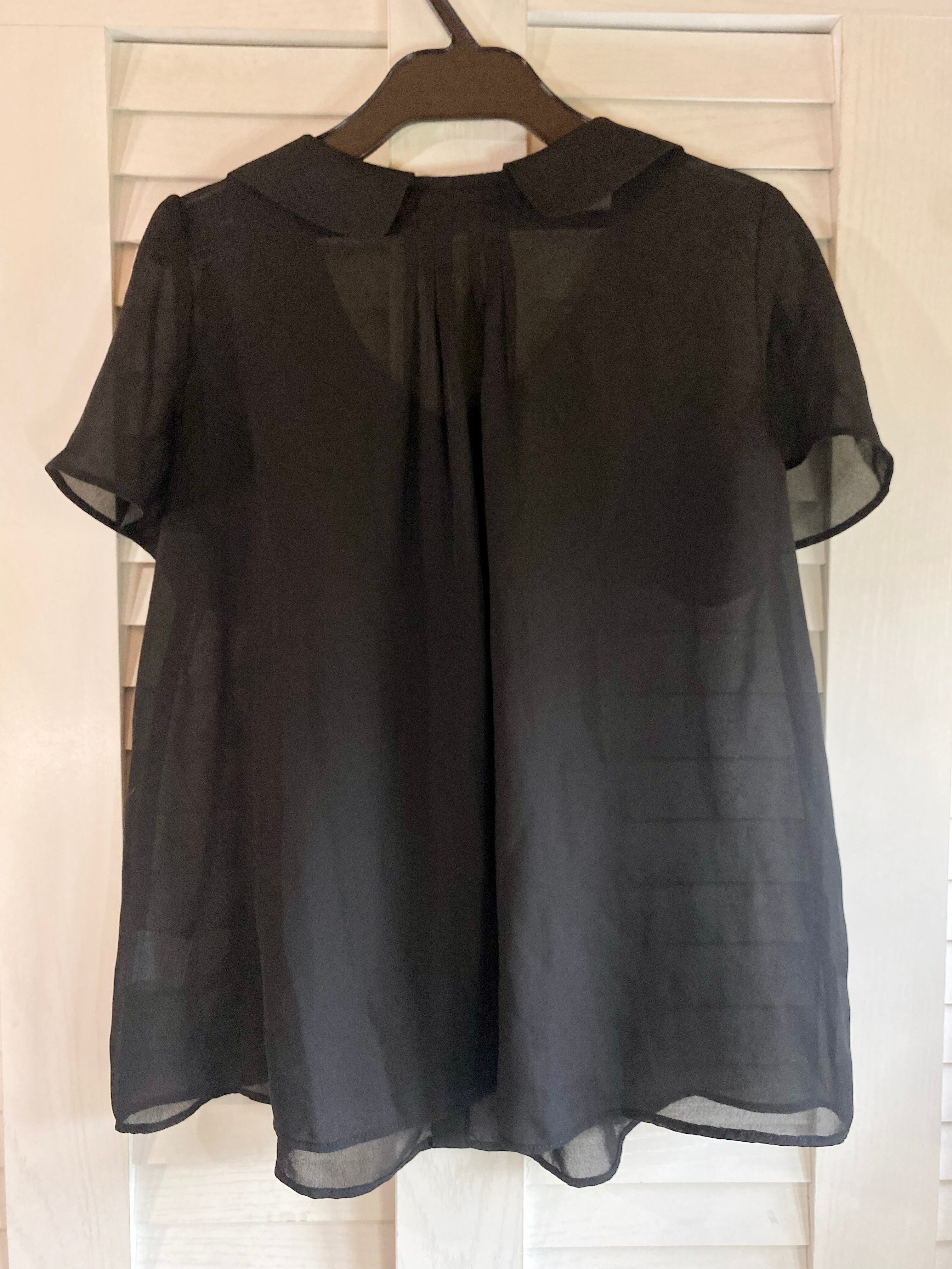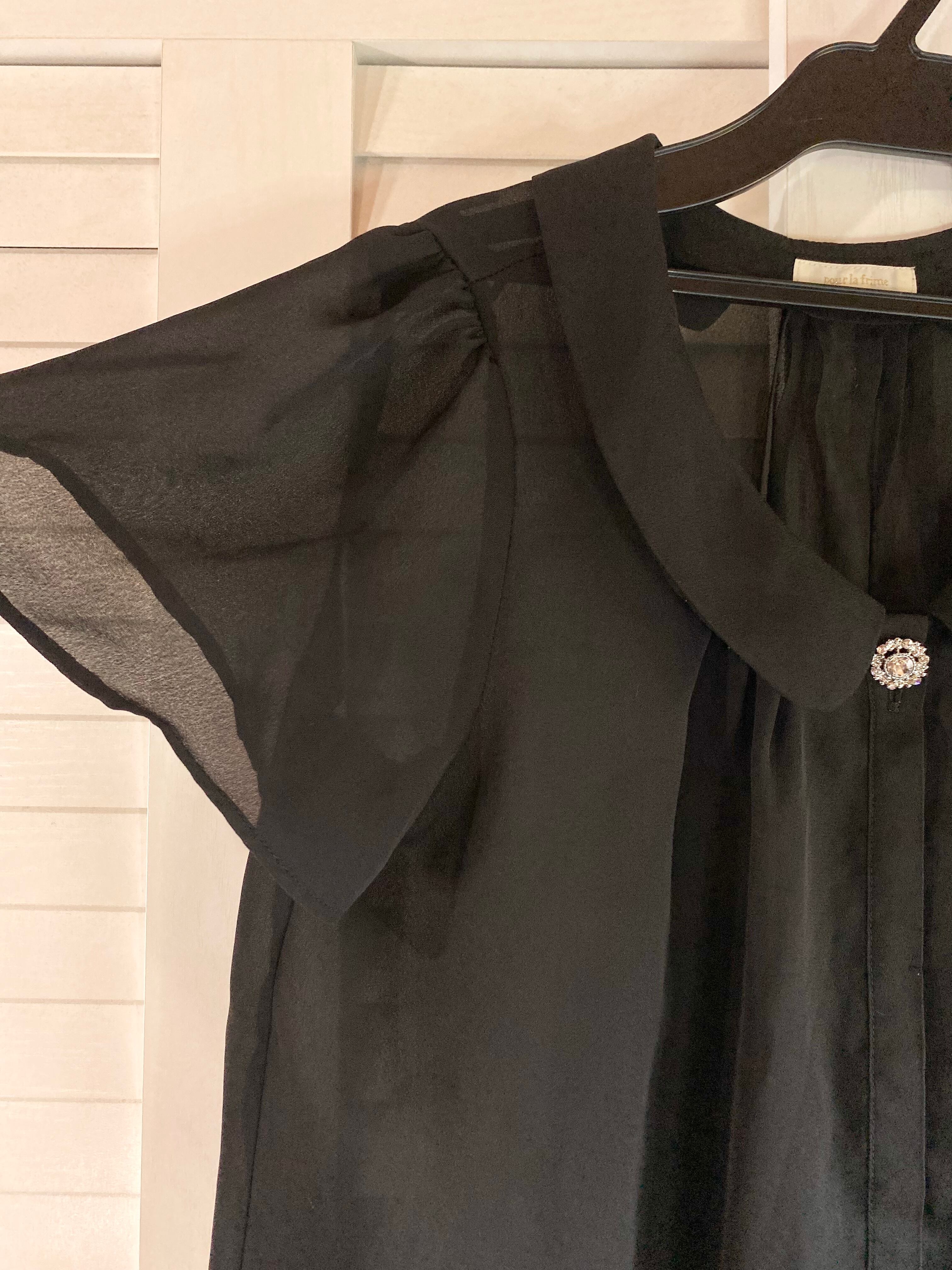 #42 pour la frime BIGビジューボタン フレアースリーブ シフォンブラウス ブラック