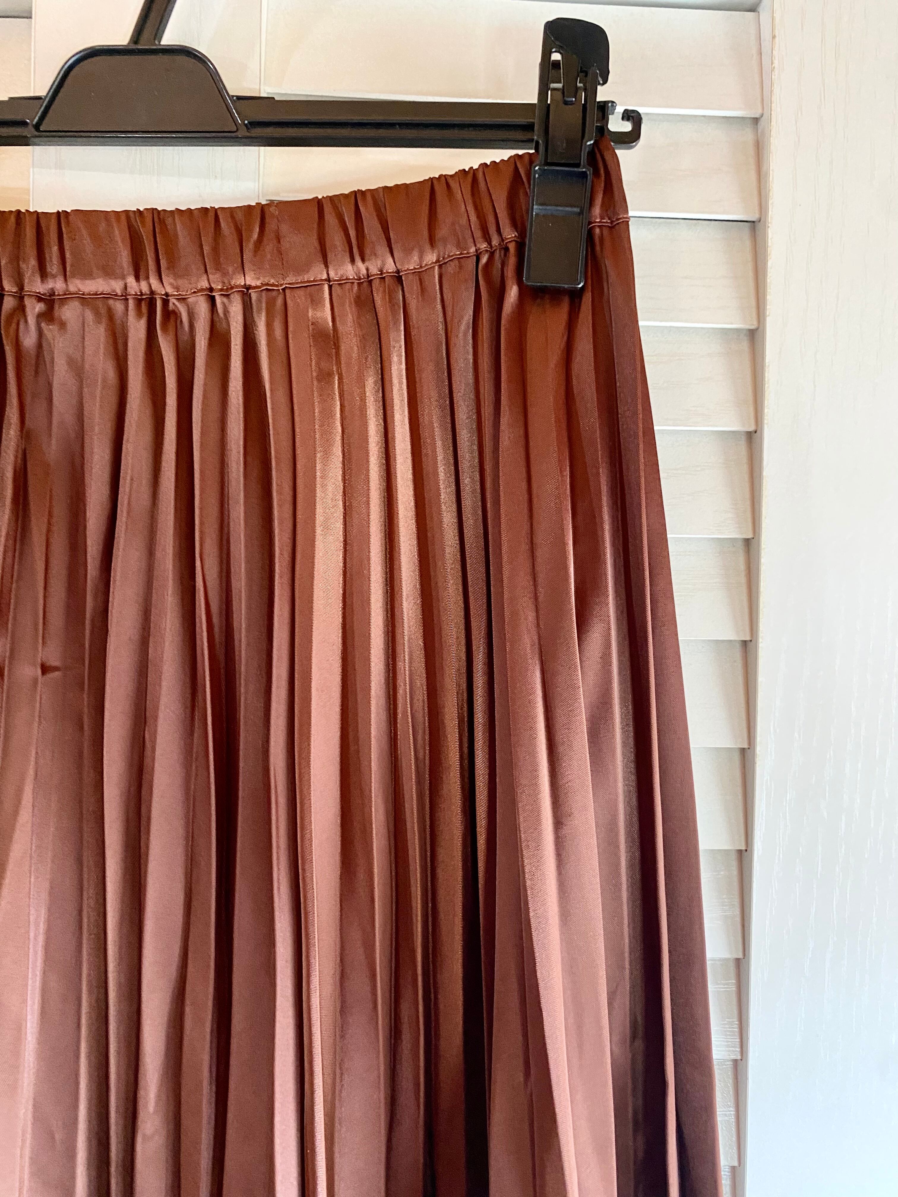 ぽんぽんさん専用◎#43 Syrup. シャンブレーサテン アコーディオンプリーツスカート ブラウン