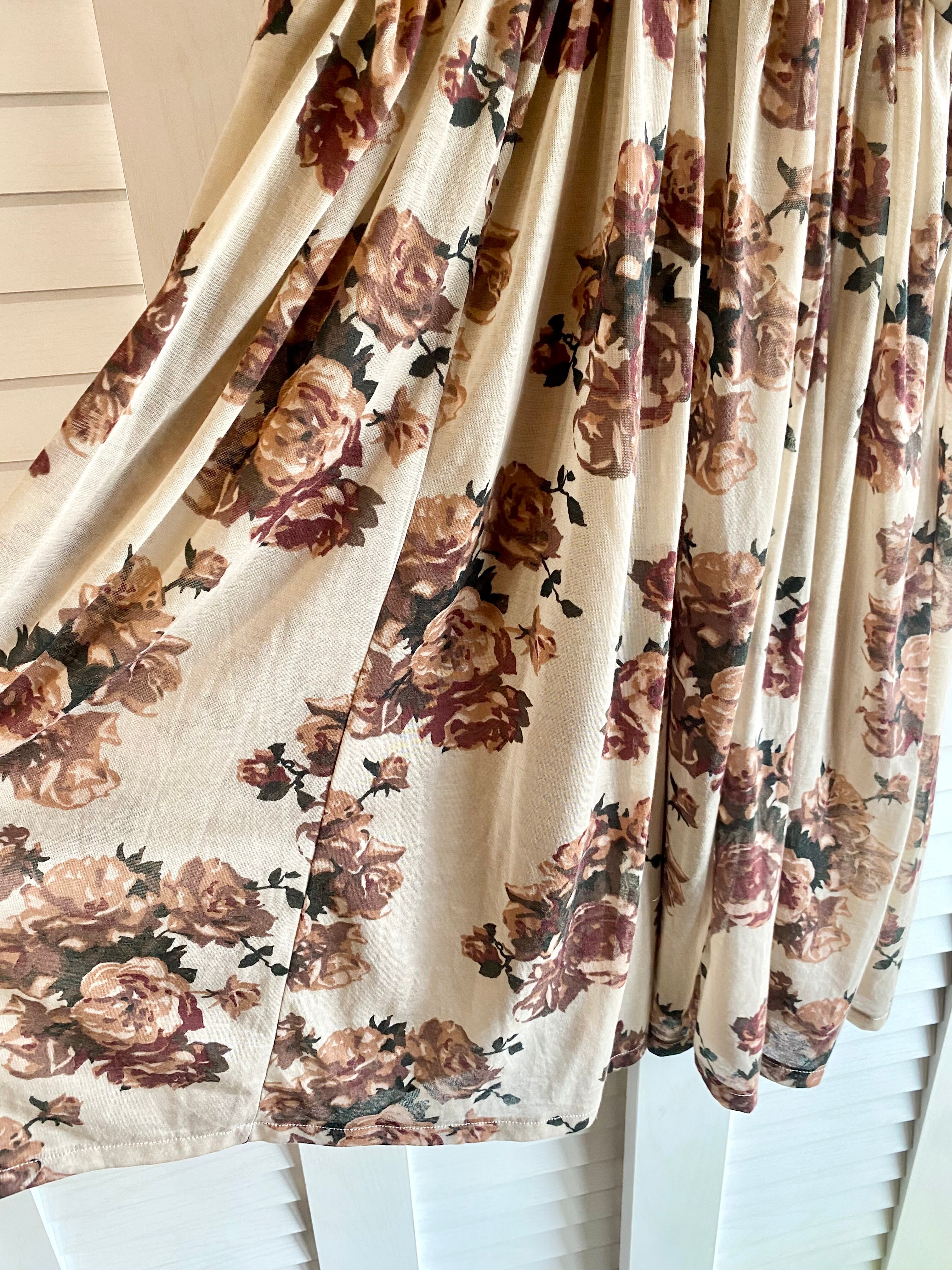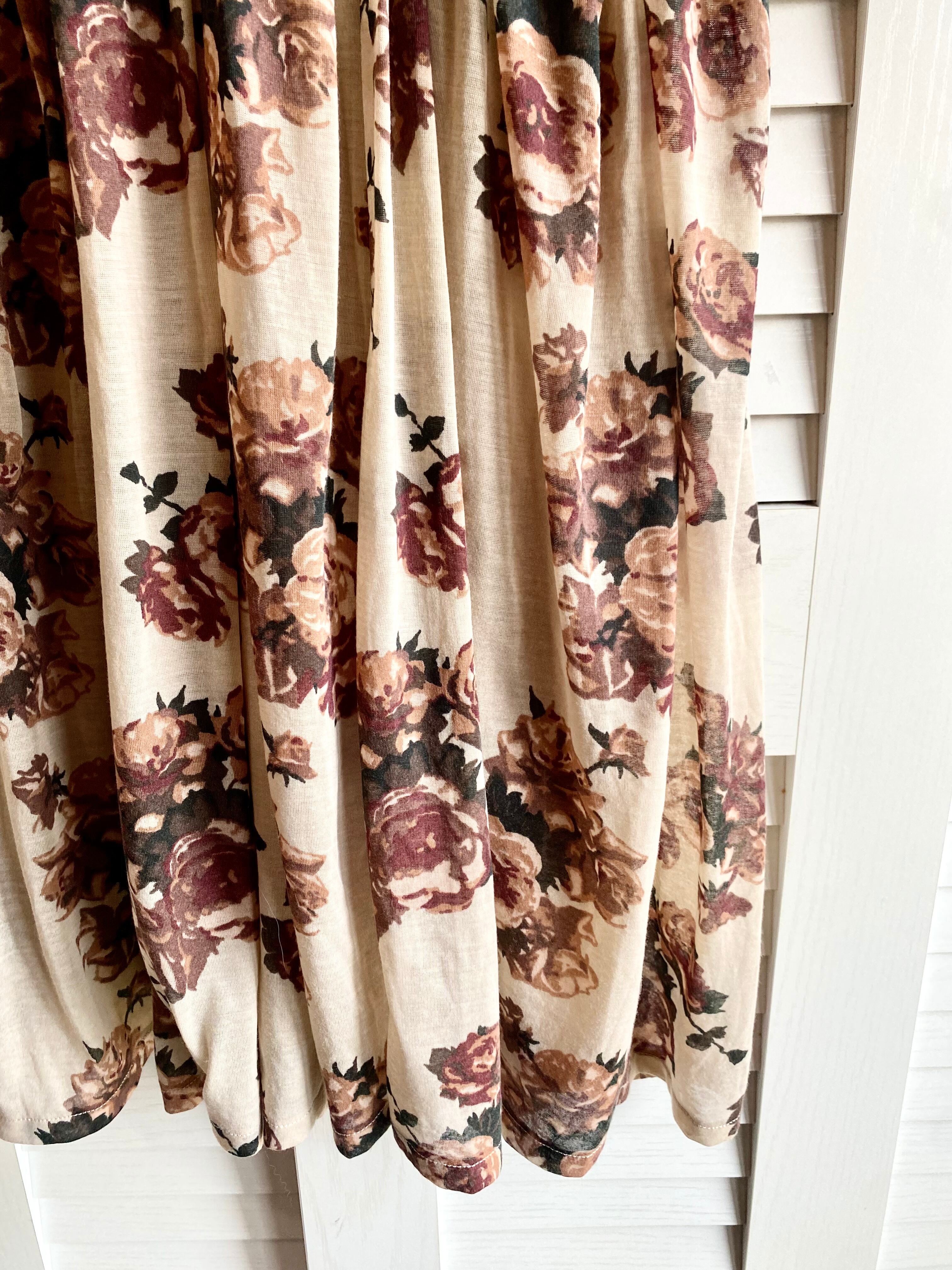 #43 MANGO アンティークローズプリント カットソーワンピ ベージュ