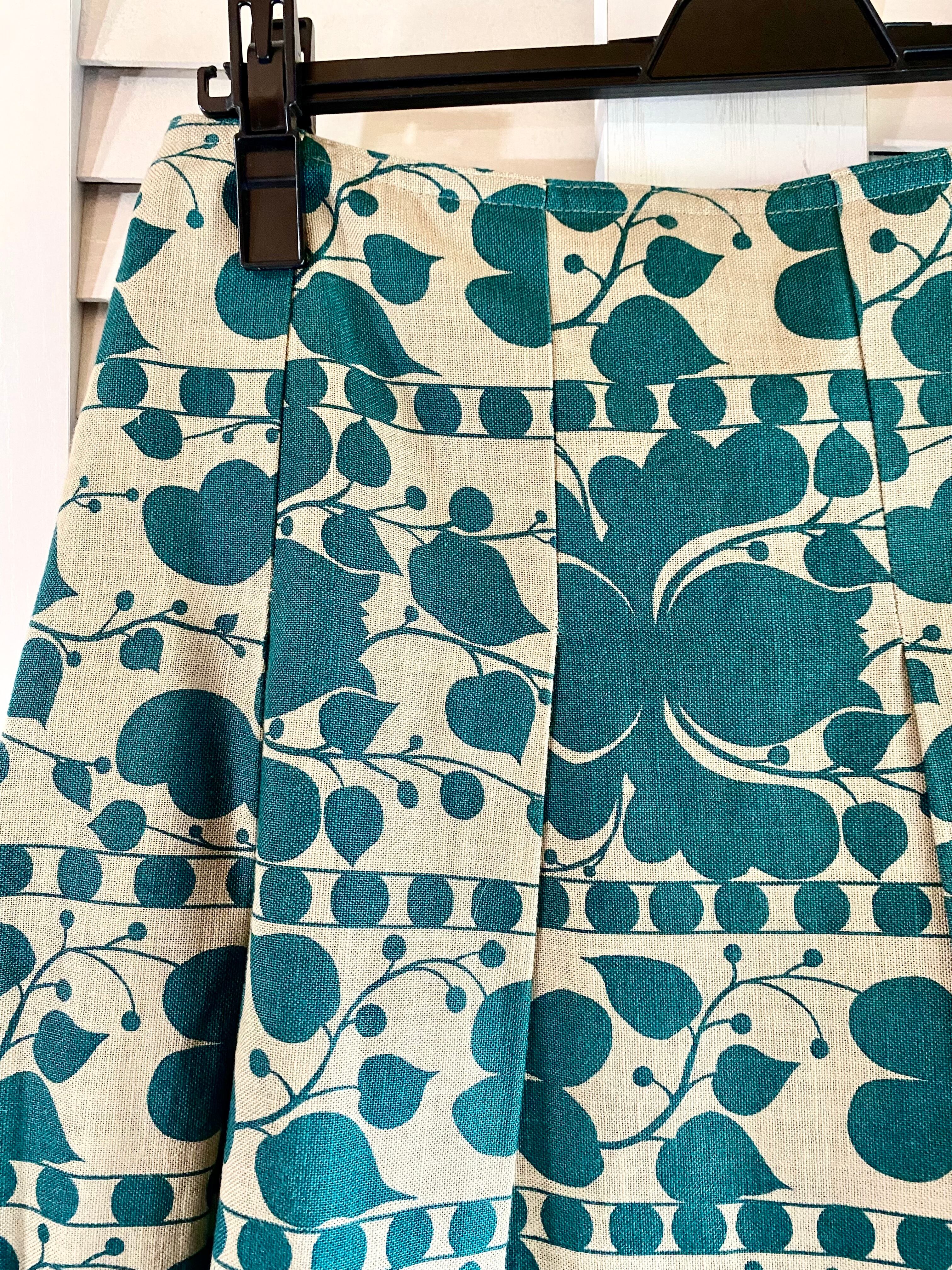 #43 LUKA ポップレトロフラワー コットンタックプリーツフレアースカート ターコイズブルー×ライトベージュ