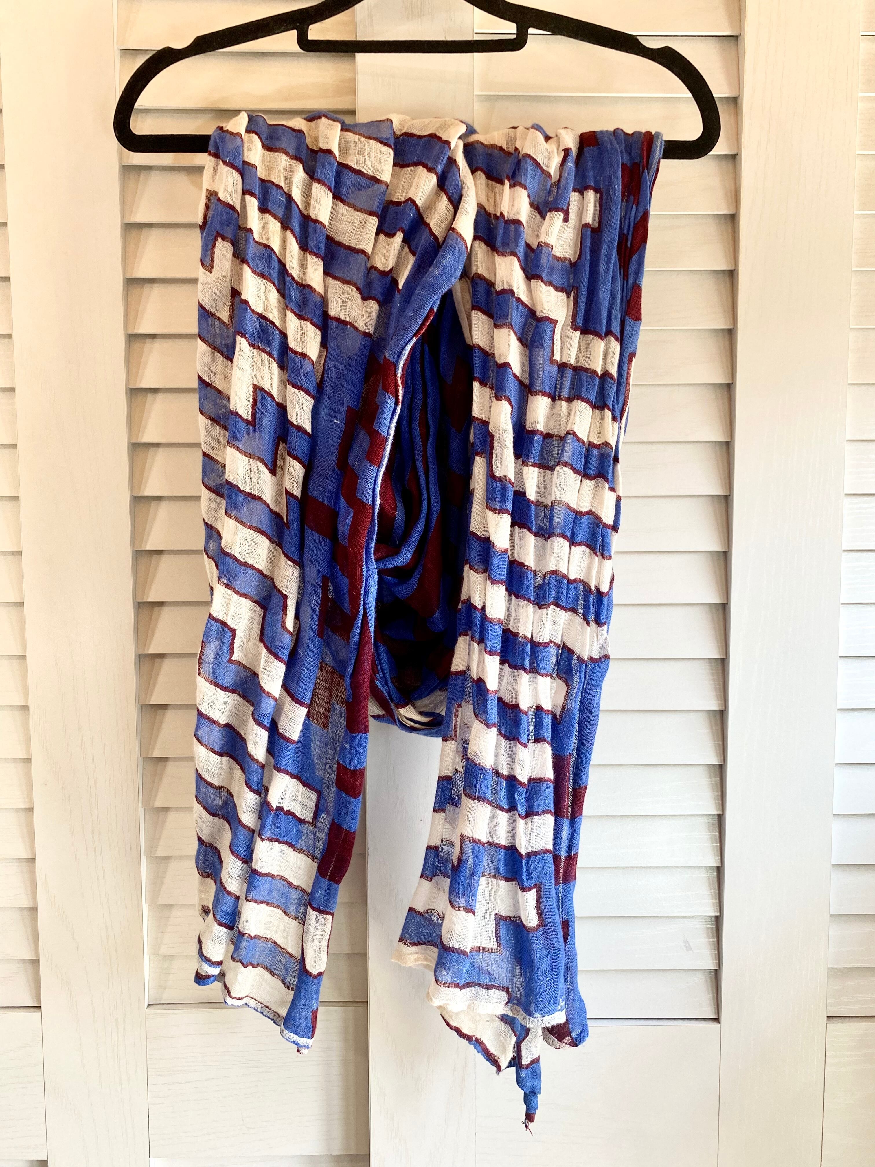 #44 ZUCCa シワ加工 リネンジオメトリック柄ストール ブルー×エンジ