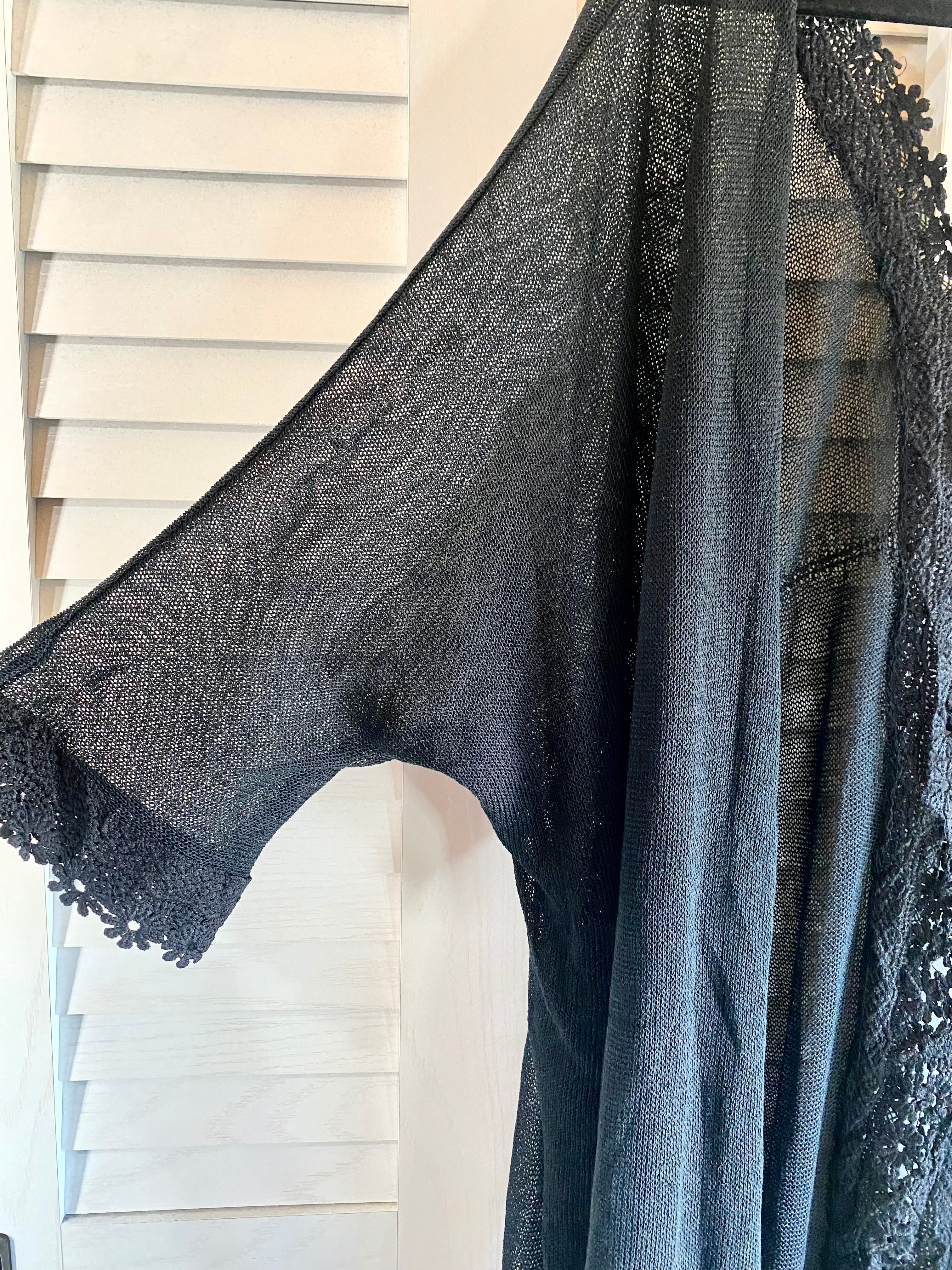 ぽんぽんさん専用◎#44 Q❤︎ レース使いのドルマンスリーブニットカーデ ブラック