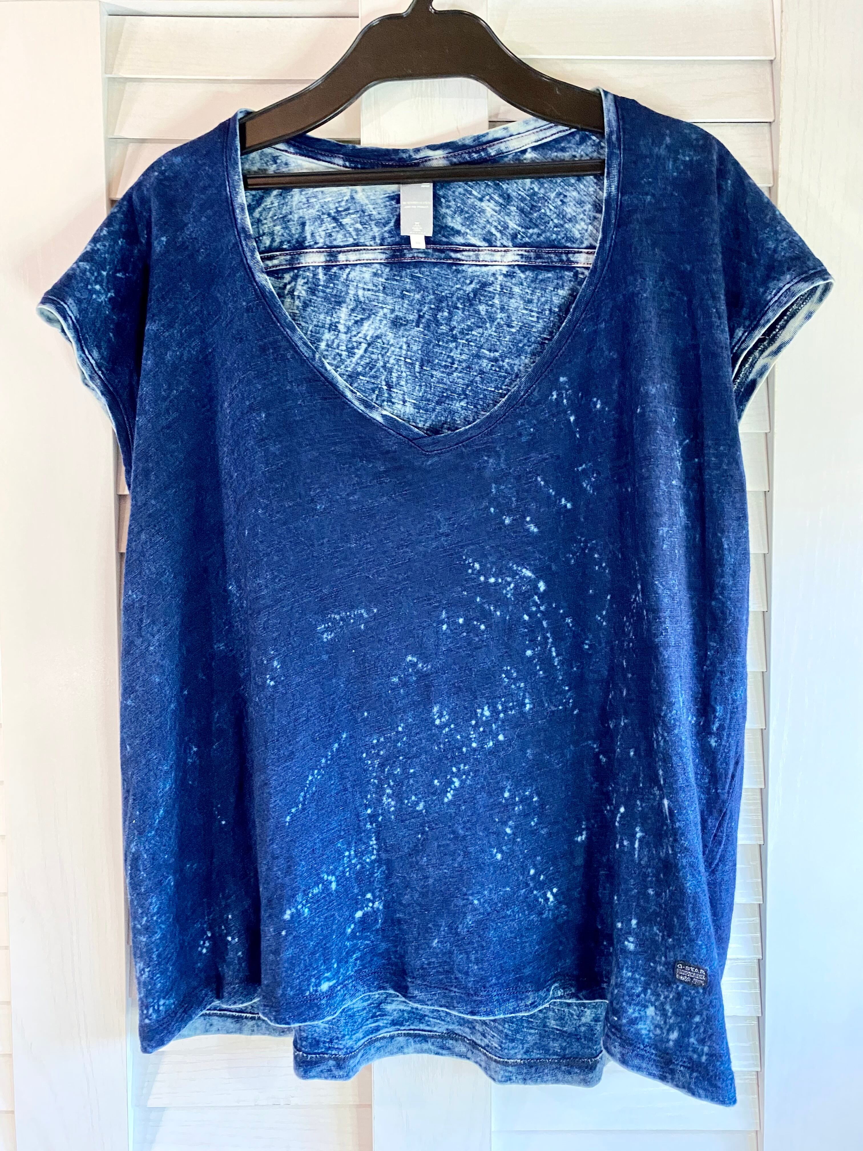 #45 G-STARWOMEN インディゴ染めヴィンテージ加工 デザインカットソー ネイビー