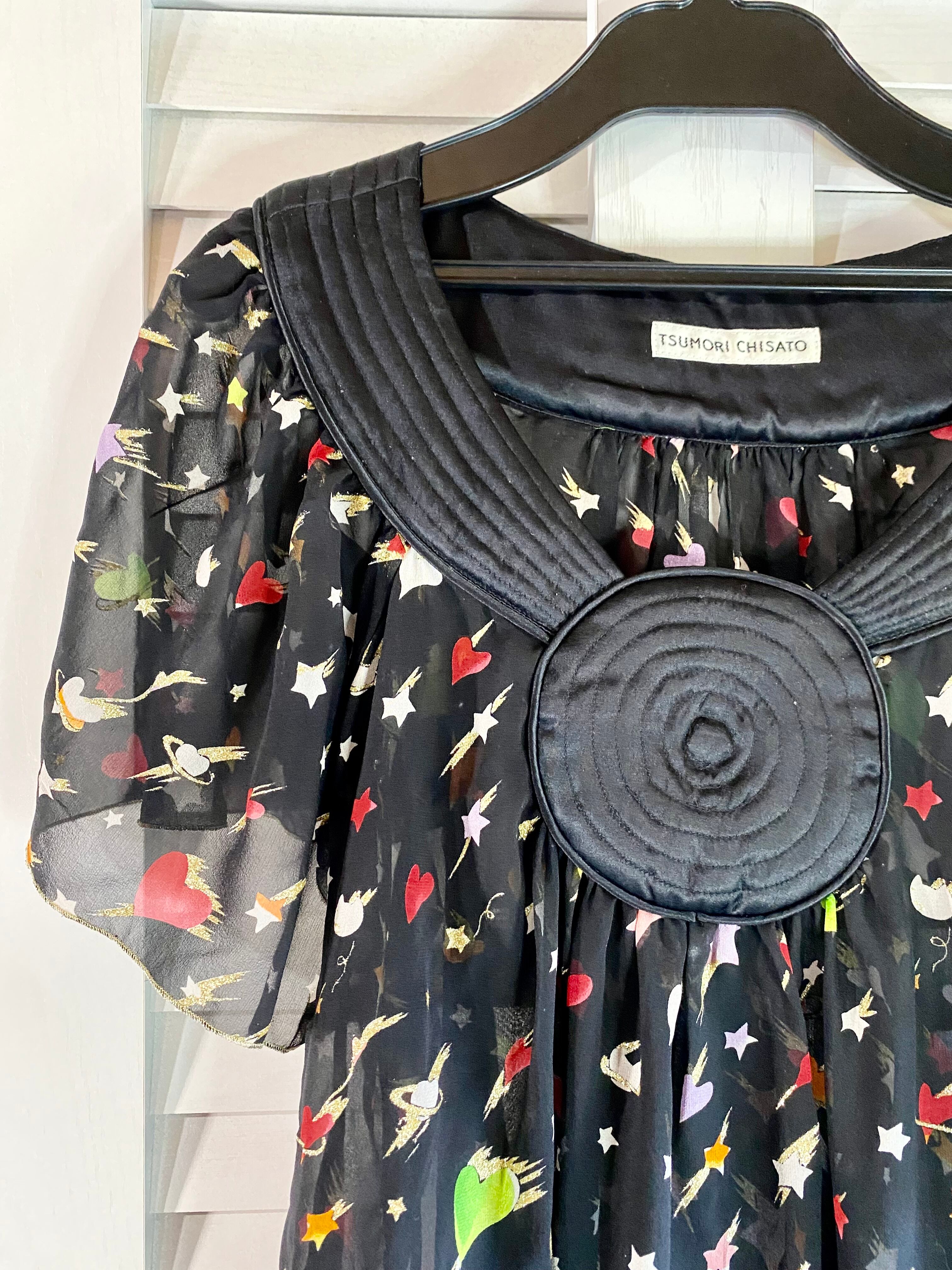 #45 TSUMORI CHISATO ドミットサテンカラー シューティングハート シフォンブラウス ブラック