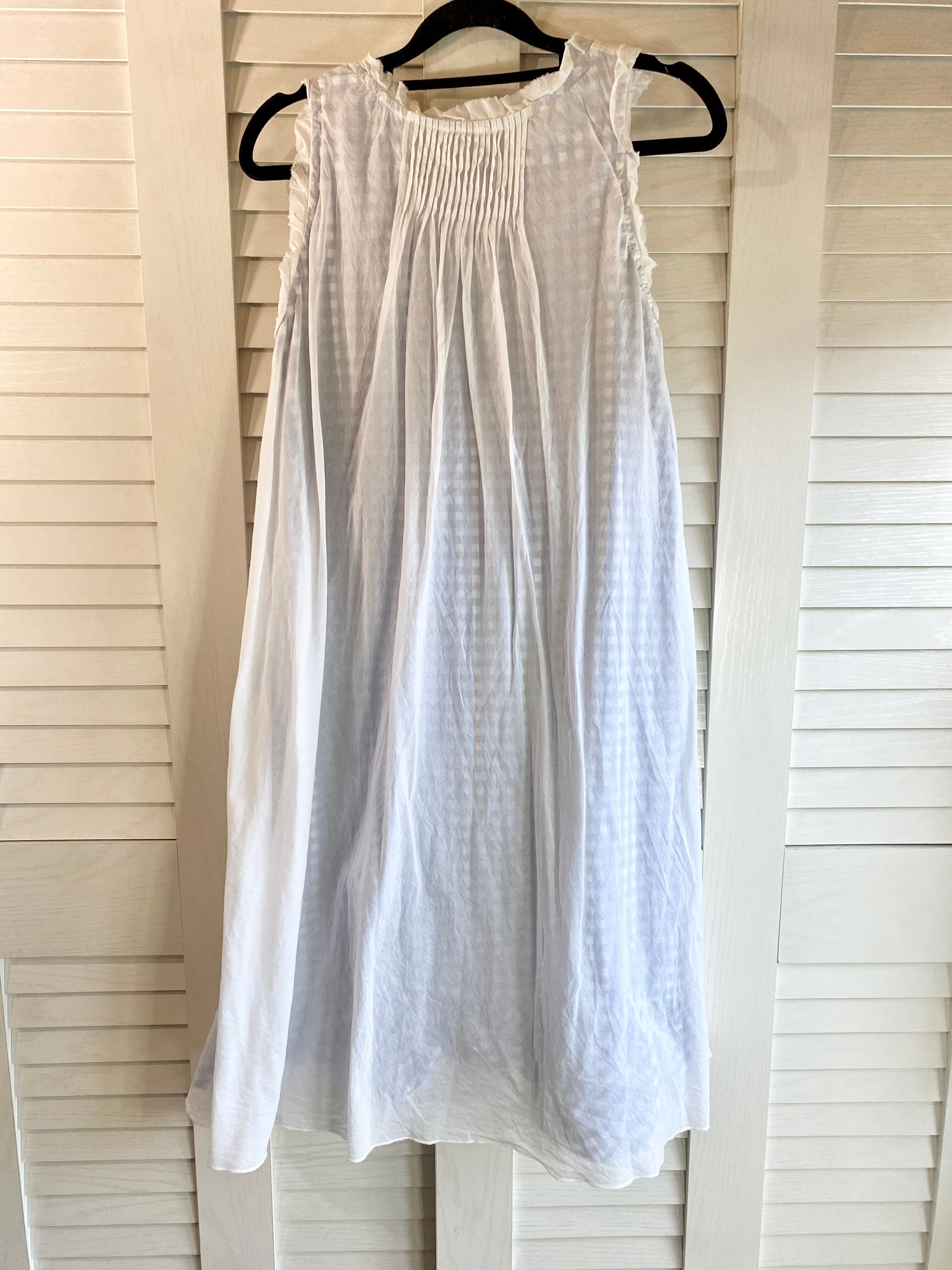 #47【デザインサンプル】ギンガムチェック×綿ローン ノースリーブレイヤードワンピ ホワイト×ブルー