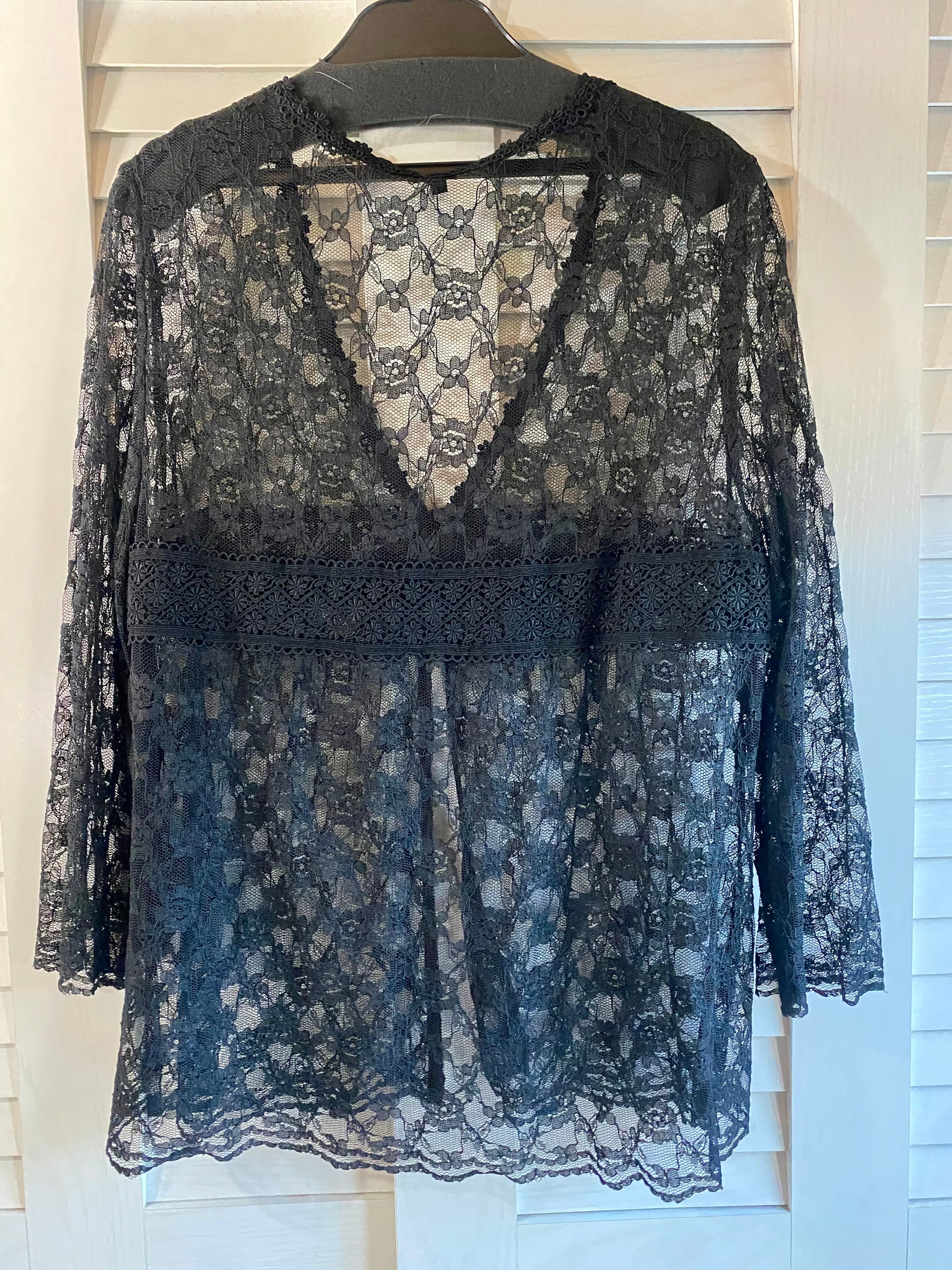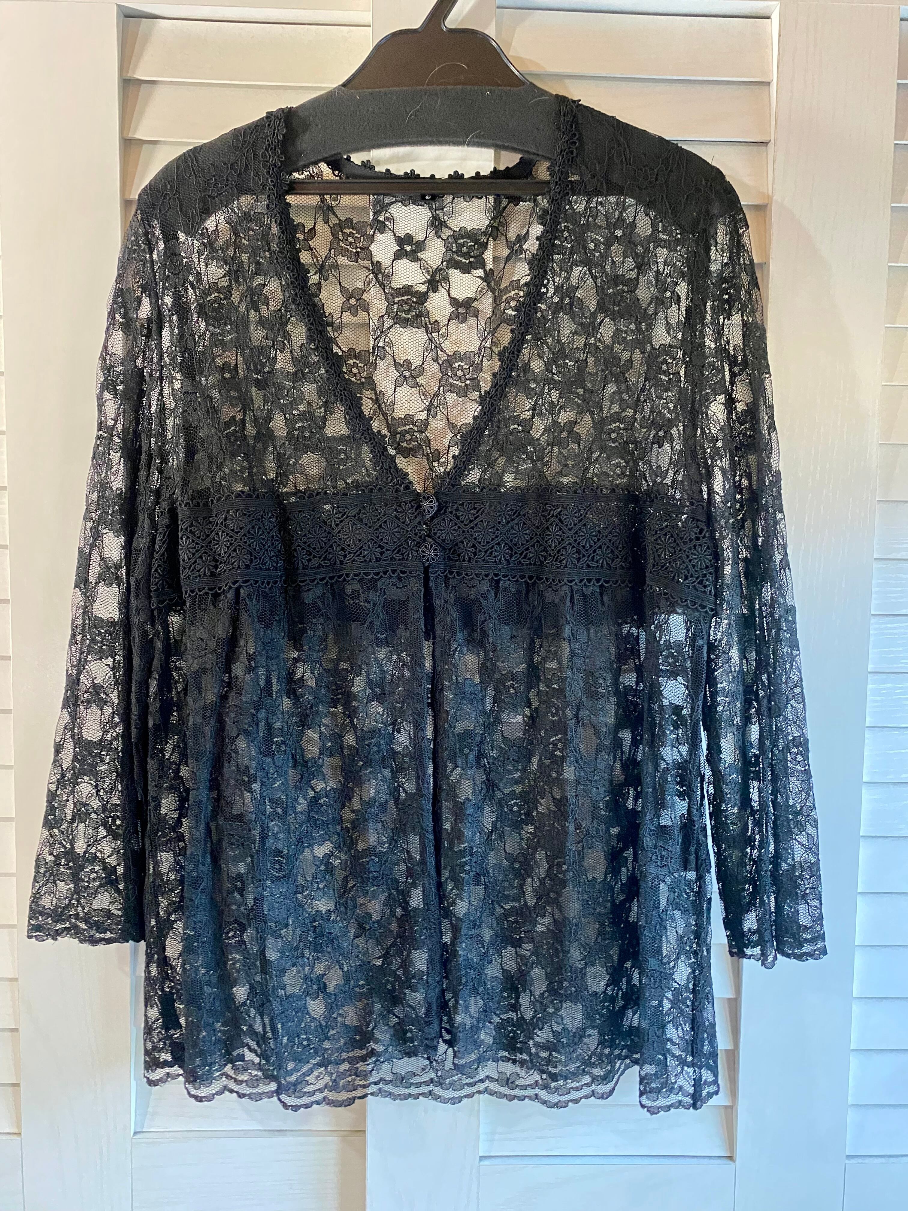 #47【デザインサンプル】 総レース 7分袖カーデ ブラック