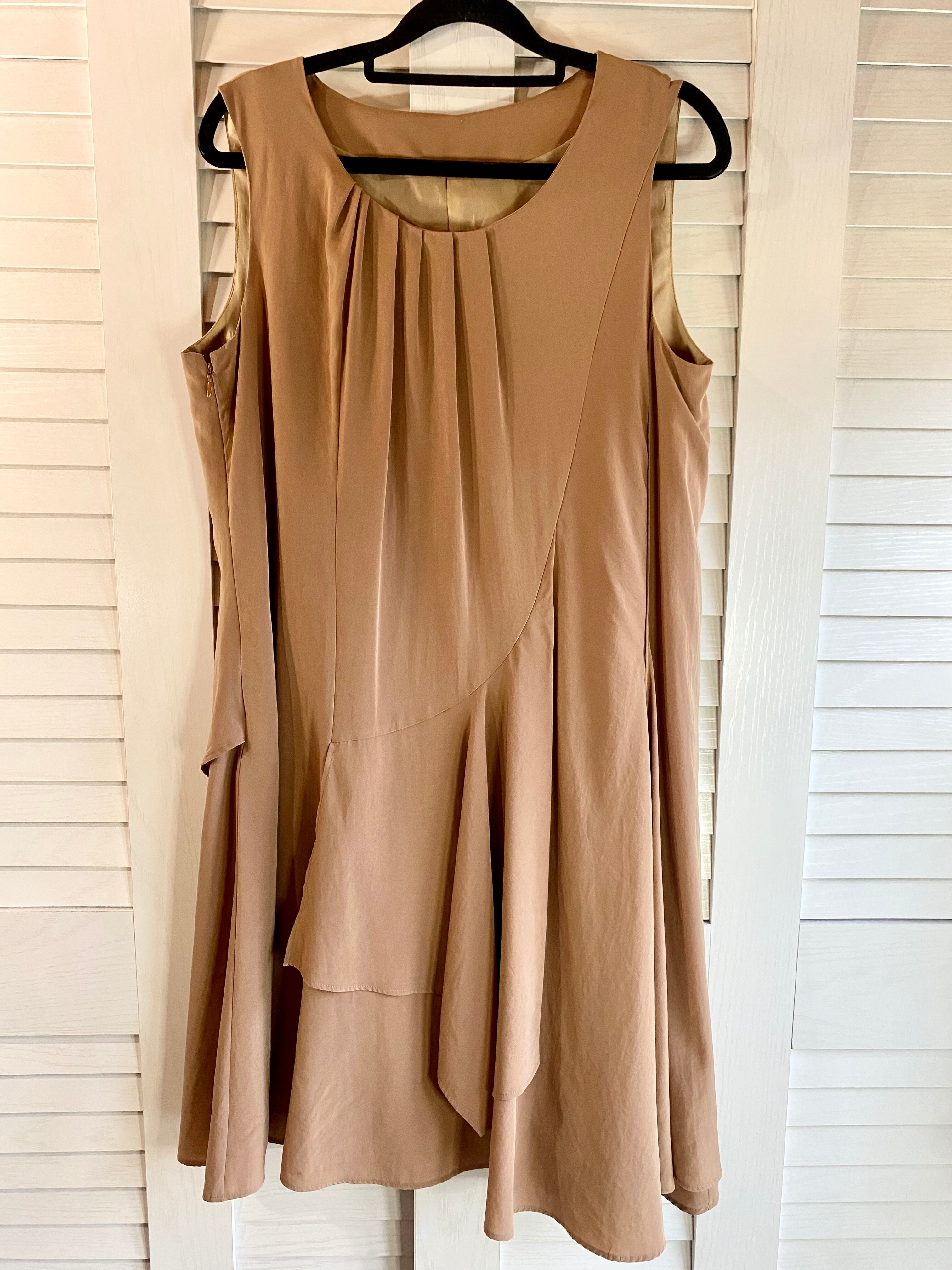 #48【デザインサンプル】バックサテン タック&イレギュラーフレアーワンピ ベージュ