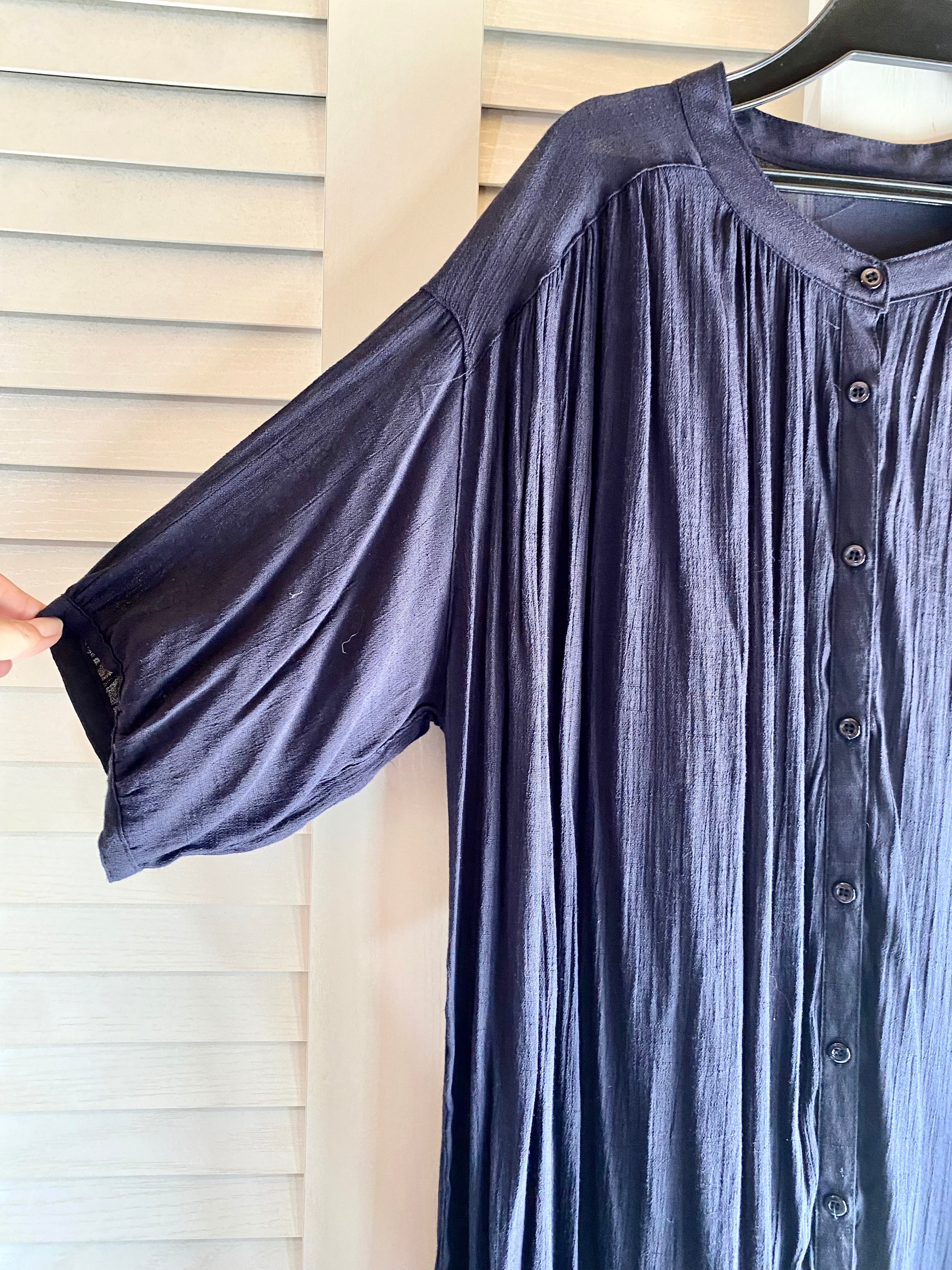 #48 MEICONNE 楊柳レーヨン ボリュームシャツワンピ ネイビー
