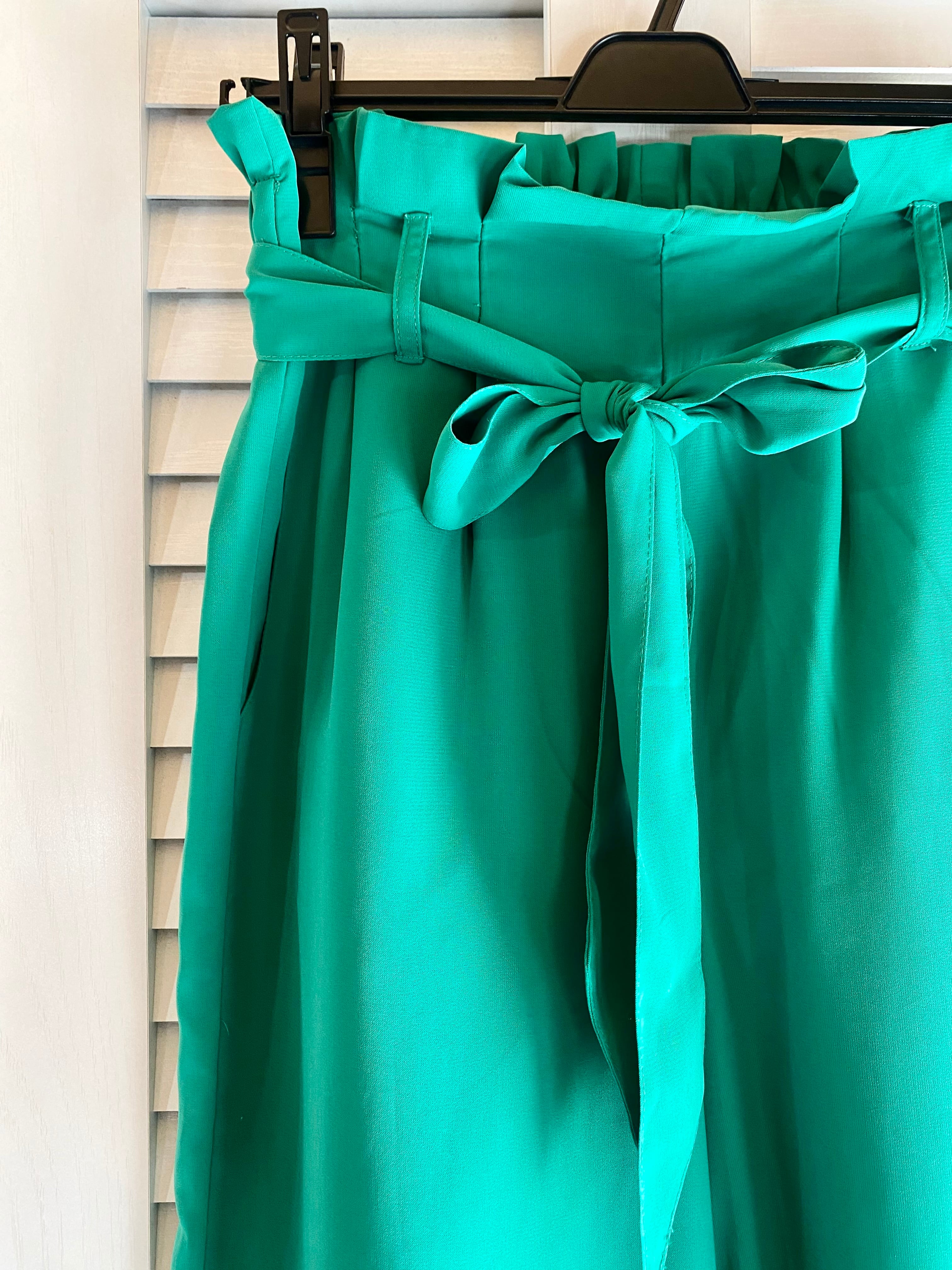 #48 MAJESTIC LEGON 共布リボンベルト ハイウエスト ジョーゼットワイドパンツ グリーン